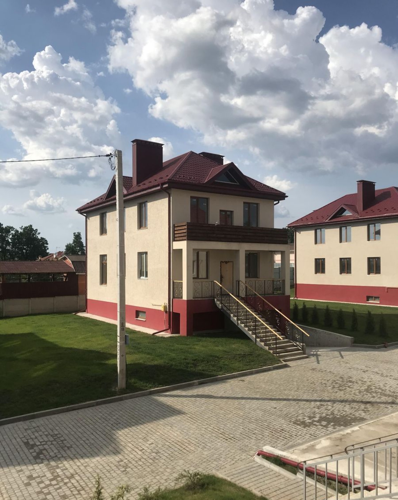 территория городка огорожена забором с въездными электрическими воротами, вымощена плиткой и освещена