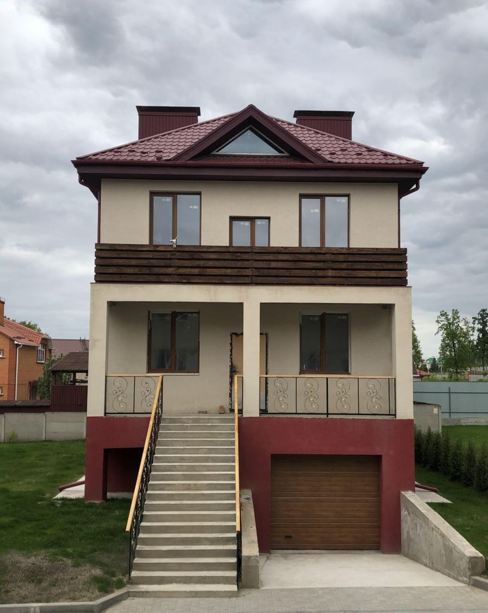 В цокольном этаже дома размещены котельная, кладовая, бытовая комната и гараж, оборудованный роллетными воротами с электрическим приводом. На верхнем этаже — открытая терраса для семейных ужинов на свежем воздухе. Также удобную лаунж-зону с бассейном и барбекю можно устроить во дворе дома.