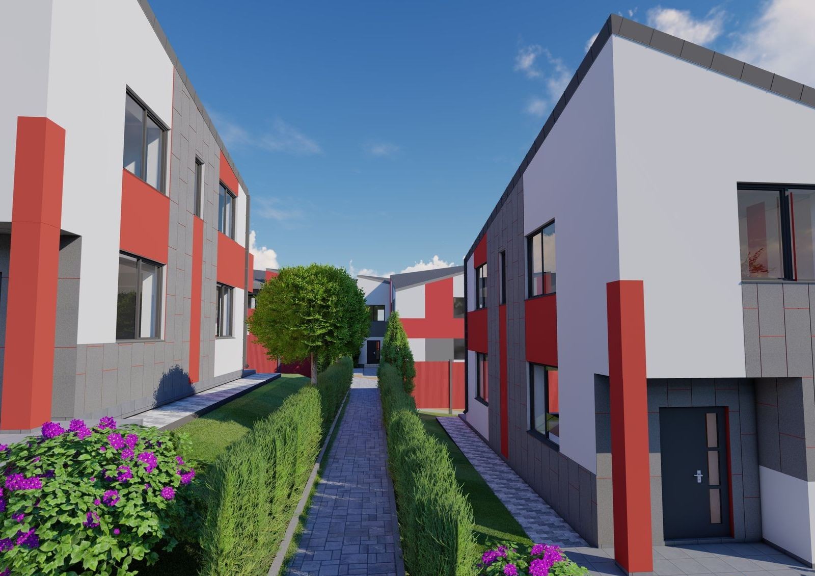 Таунхаусы «На Радужной» — это новый жилой комплекс из четырех двухэтажных таунхаусов смарт-премиум класса в 5 минутах езды от центра Ужгорода. Выдержанные в едином архитектурном стиле здания гармонично вписались в район малоэтажной застройки. Окружают таунхаусы частные дома, поэтому будущим жильцам не грозит шум трасс или промышленных предприятий. Еще один плюс комплекса — закрытая территория, на которой будет уютно и безопасно взрослым и детям.