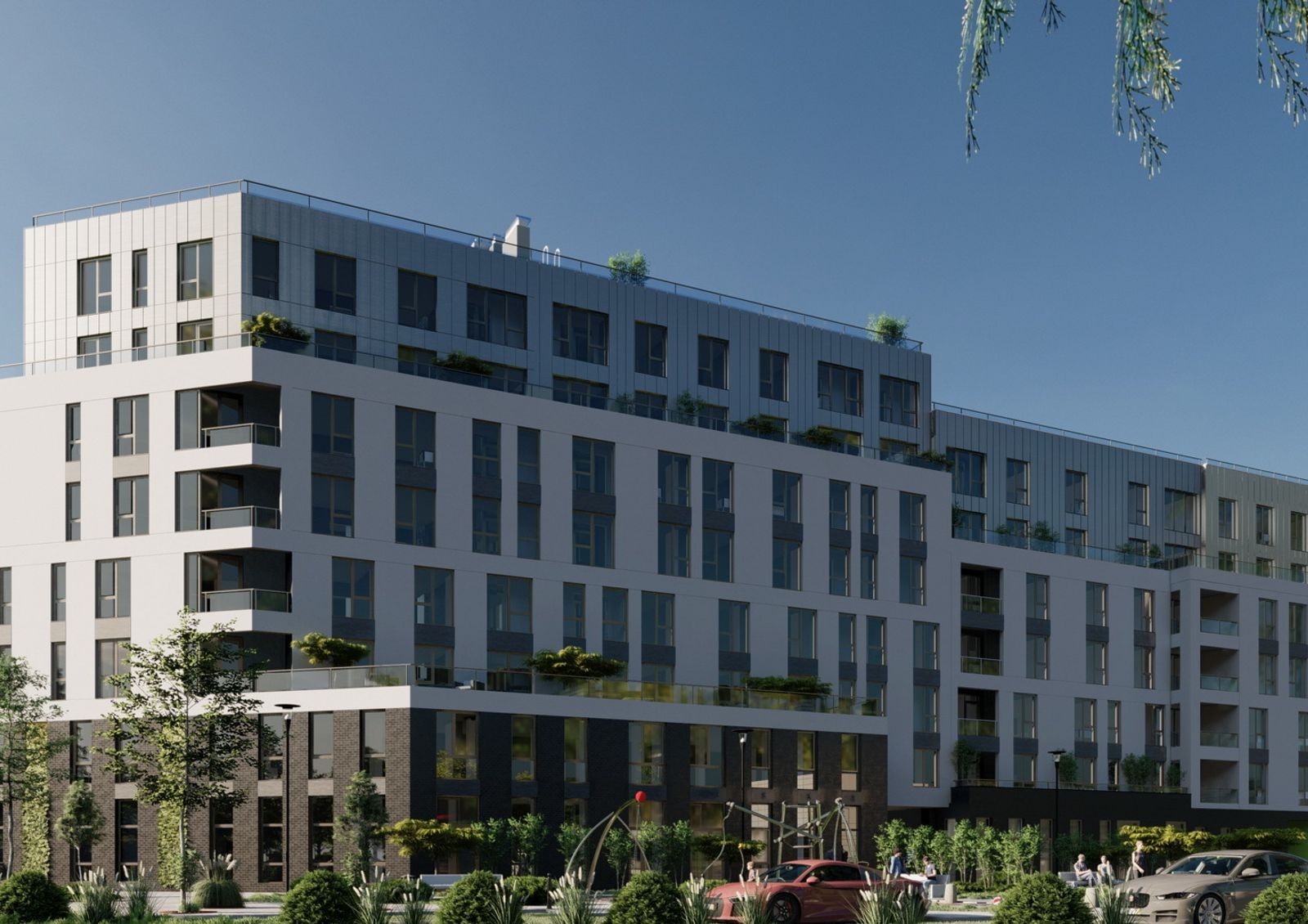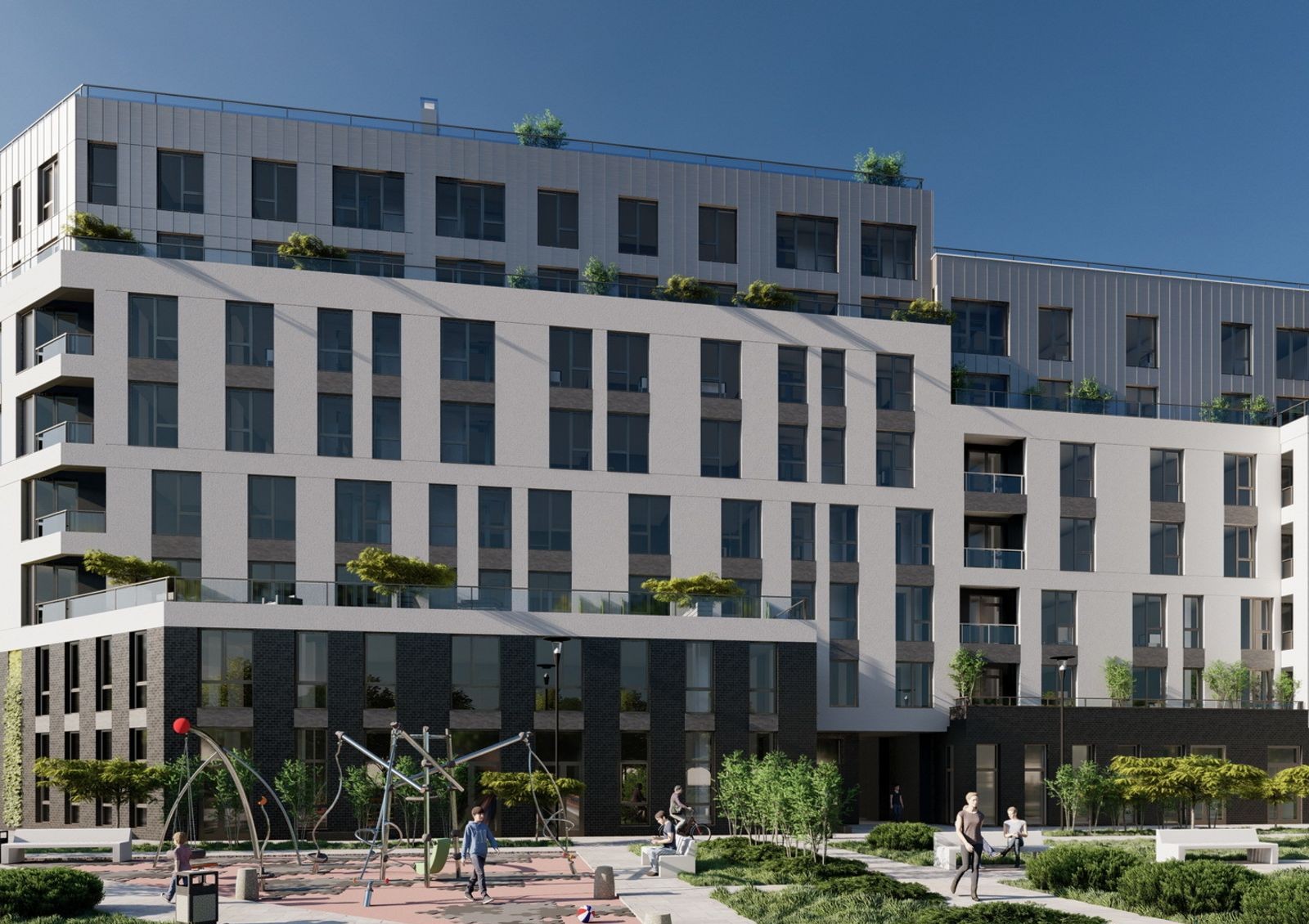 Комплекс выделяется использованием разной этажности и открытыми озелененными террасами на крыше и выступах нижних этажей. Также в каждой квартире предусмотрена просторная лоджия или балкон. На придомовой территории обустроят спортивные и игровые площадки, подземный паркинг и открытую наземную стоянку для автомобилей жильцов и гостей комплекса.