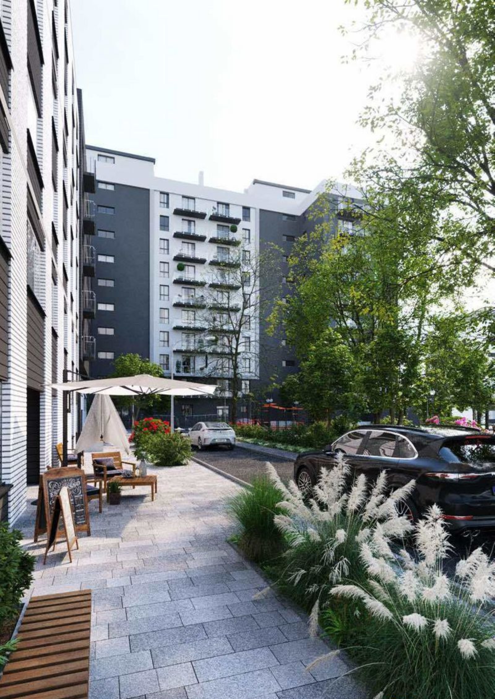для жильцов с автомобилями предусмотрены подземные паркинги и наземные стоянки