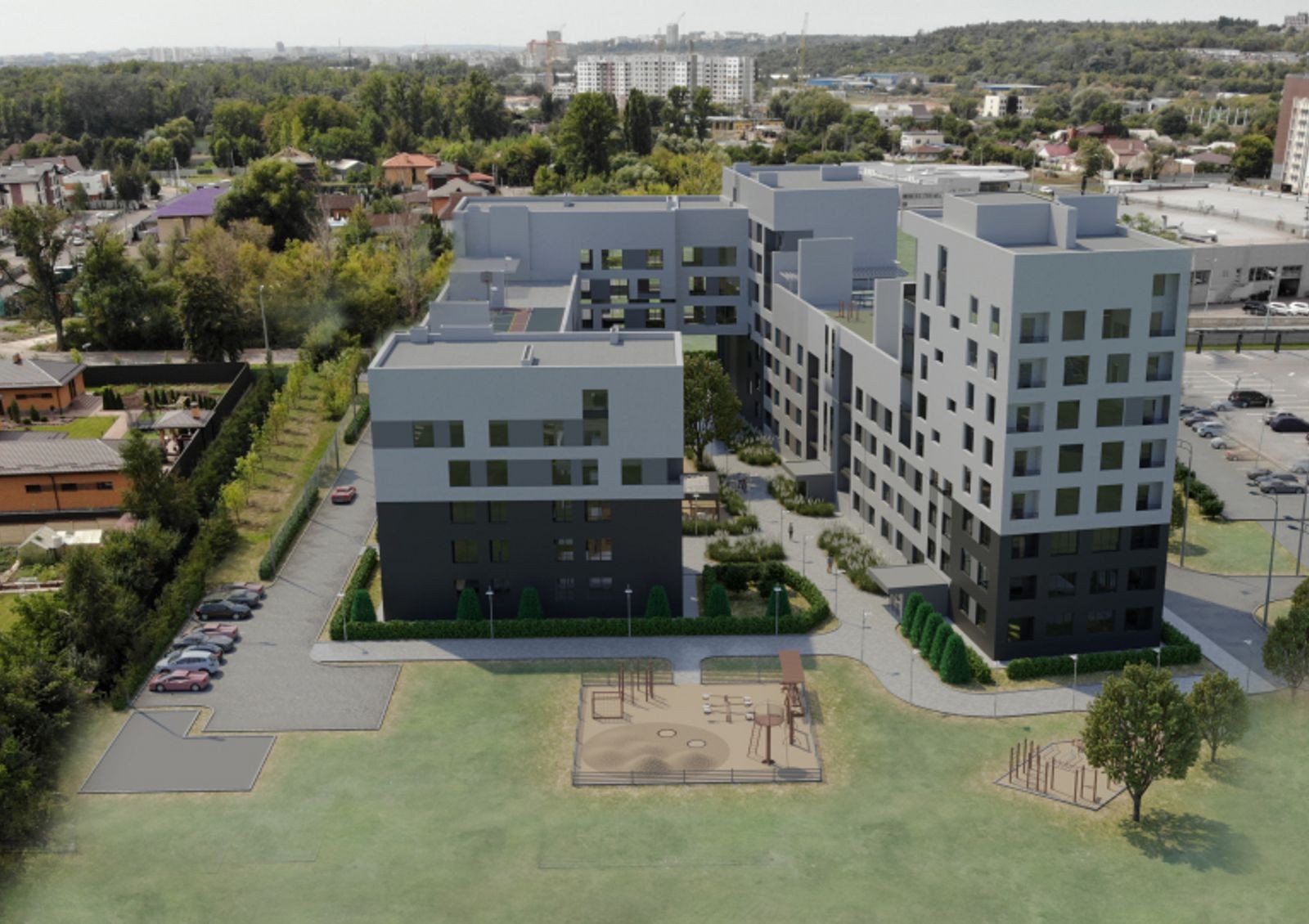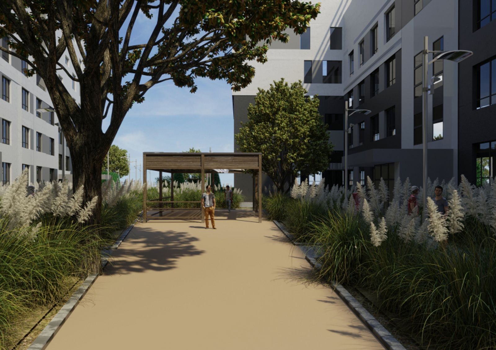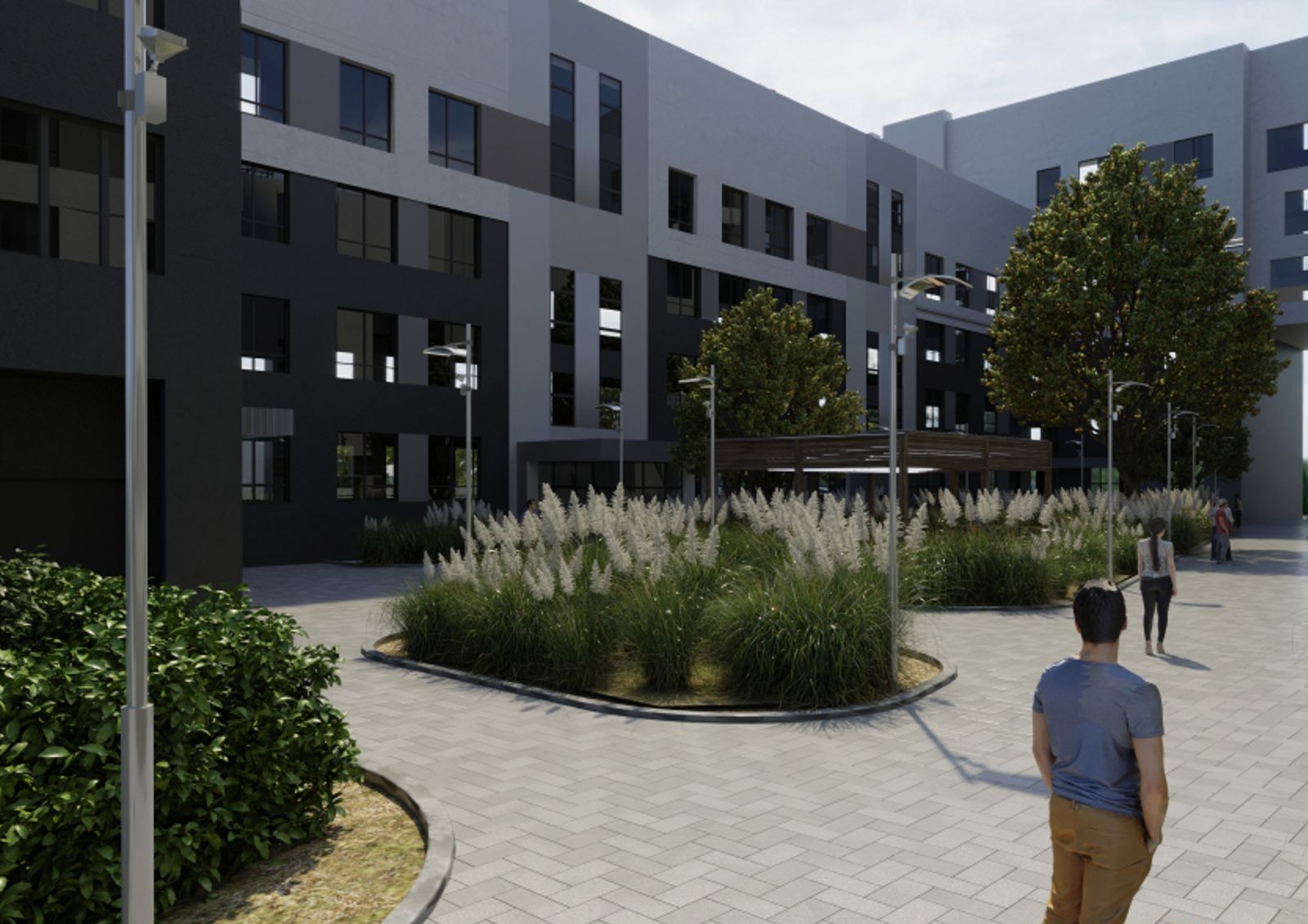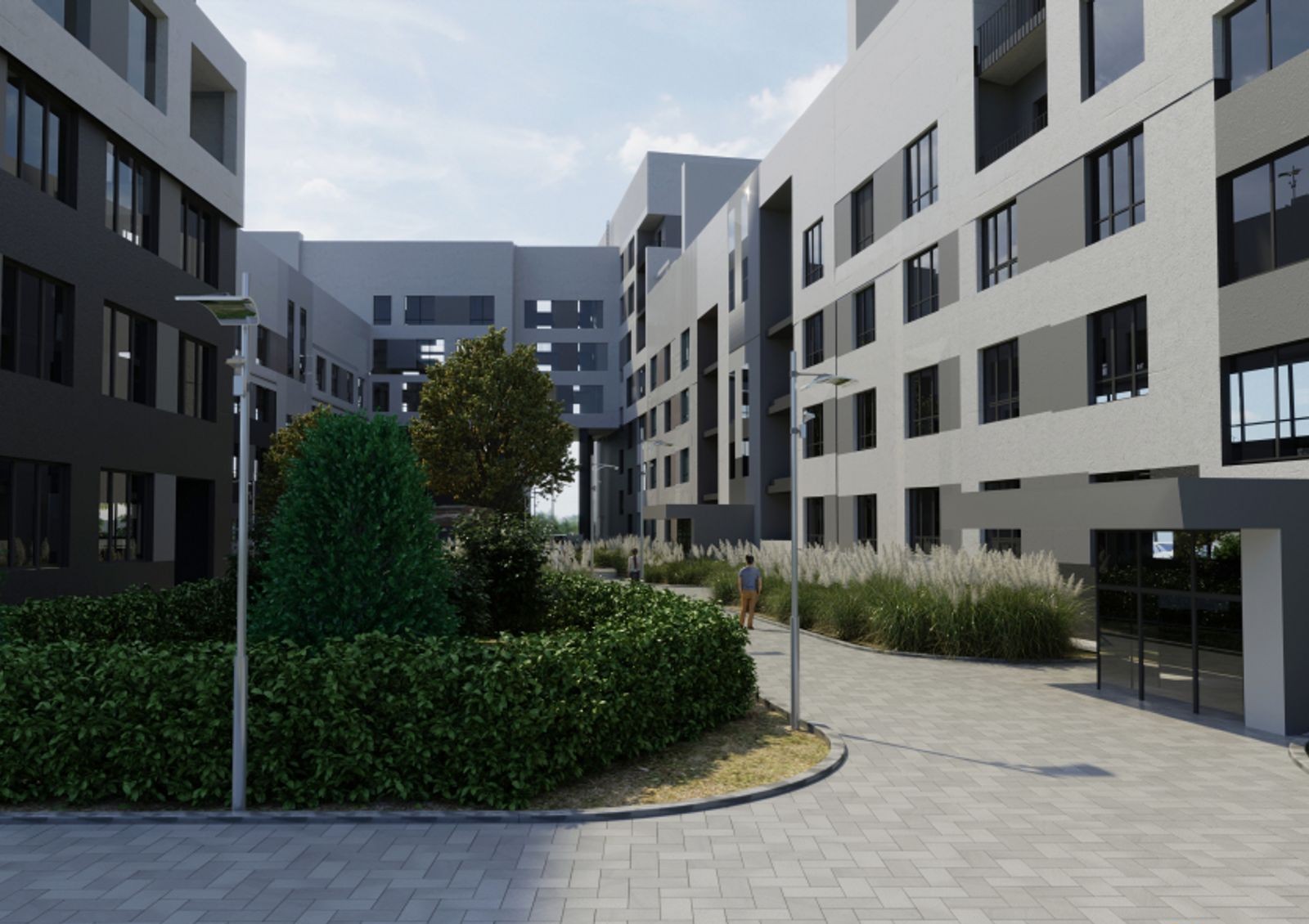 ЖК «Кофе с молоком» — это семисекционный дом с каскадной этажностью и минималистичной архитектурой. Внешний вид комплекса отличается сдержанными тонами отделки, четкими и лаконичными линиями и отсутствием лишнего декора. Секции дома спроектированы таким образом, что внутренний двор будет огражден от городского шума и суеты — здесь предусмотрена прогулочная зона с ландшафтным дизайном. Детская и спортивная площадки расположены рядом с новостройкой, а благодаря отдаленной стоянке вы будете спокойны за безопасность своих детей. Также стоит отметить наличие в комплексе коммерческих помещений, предназначенных для частного детского сада, мини-маркета или коворкинга.
