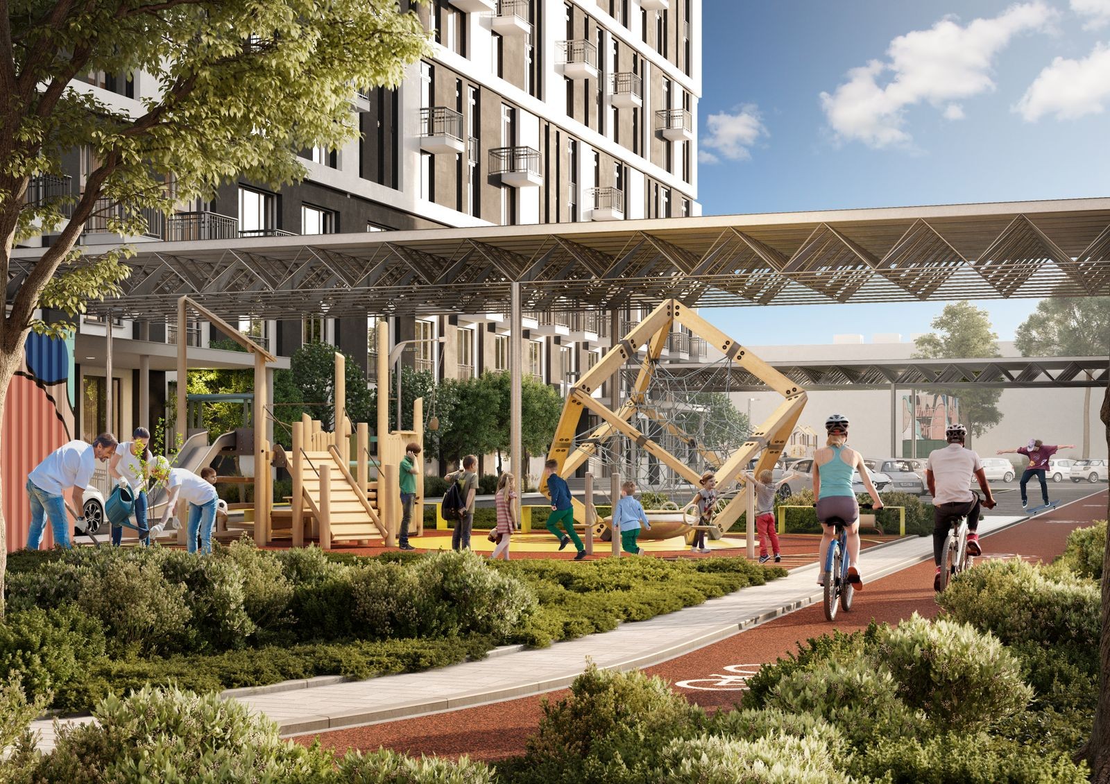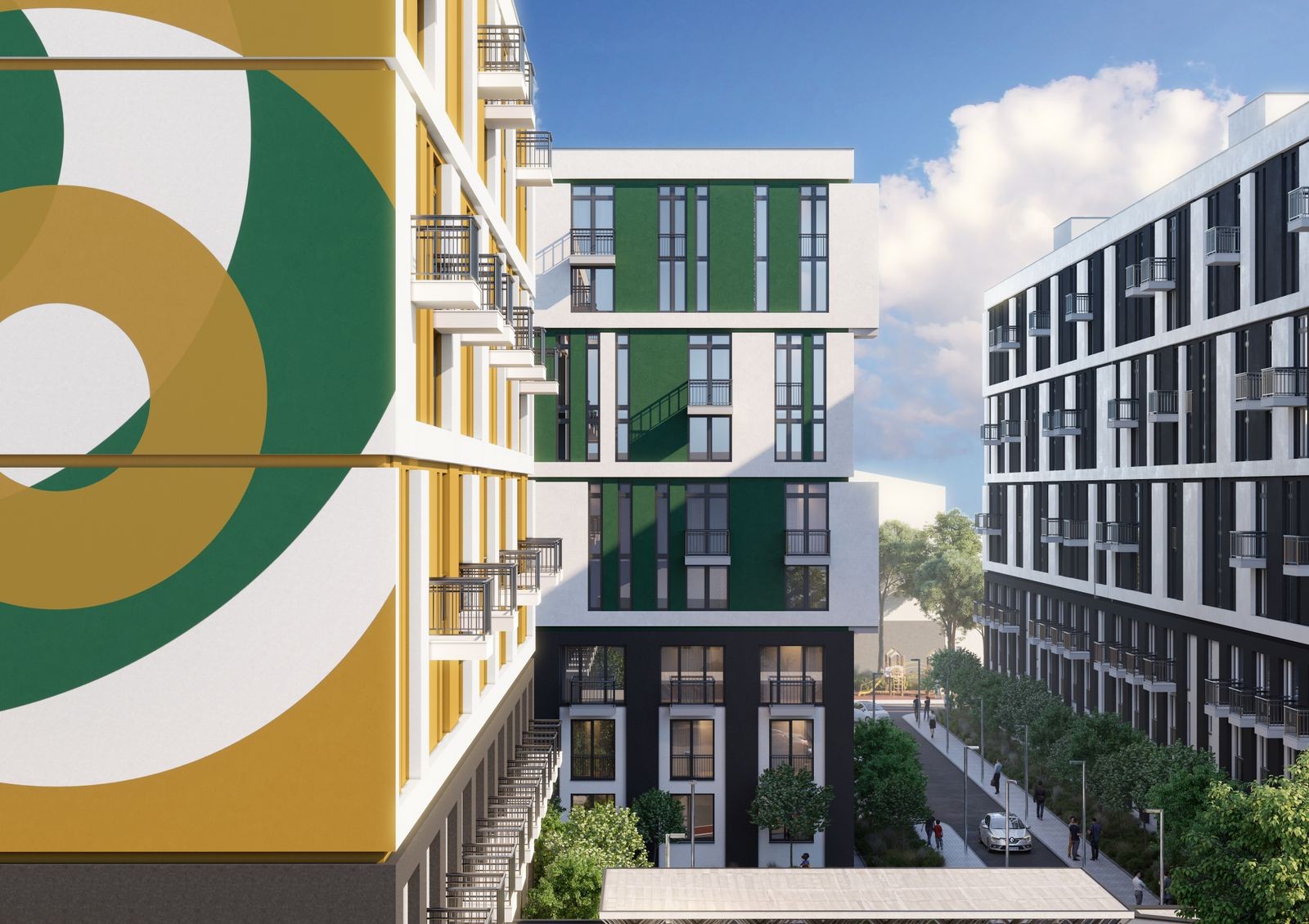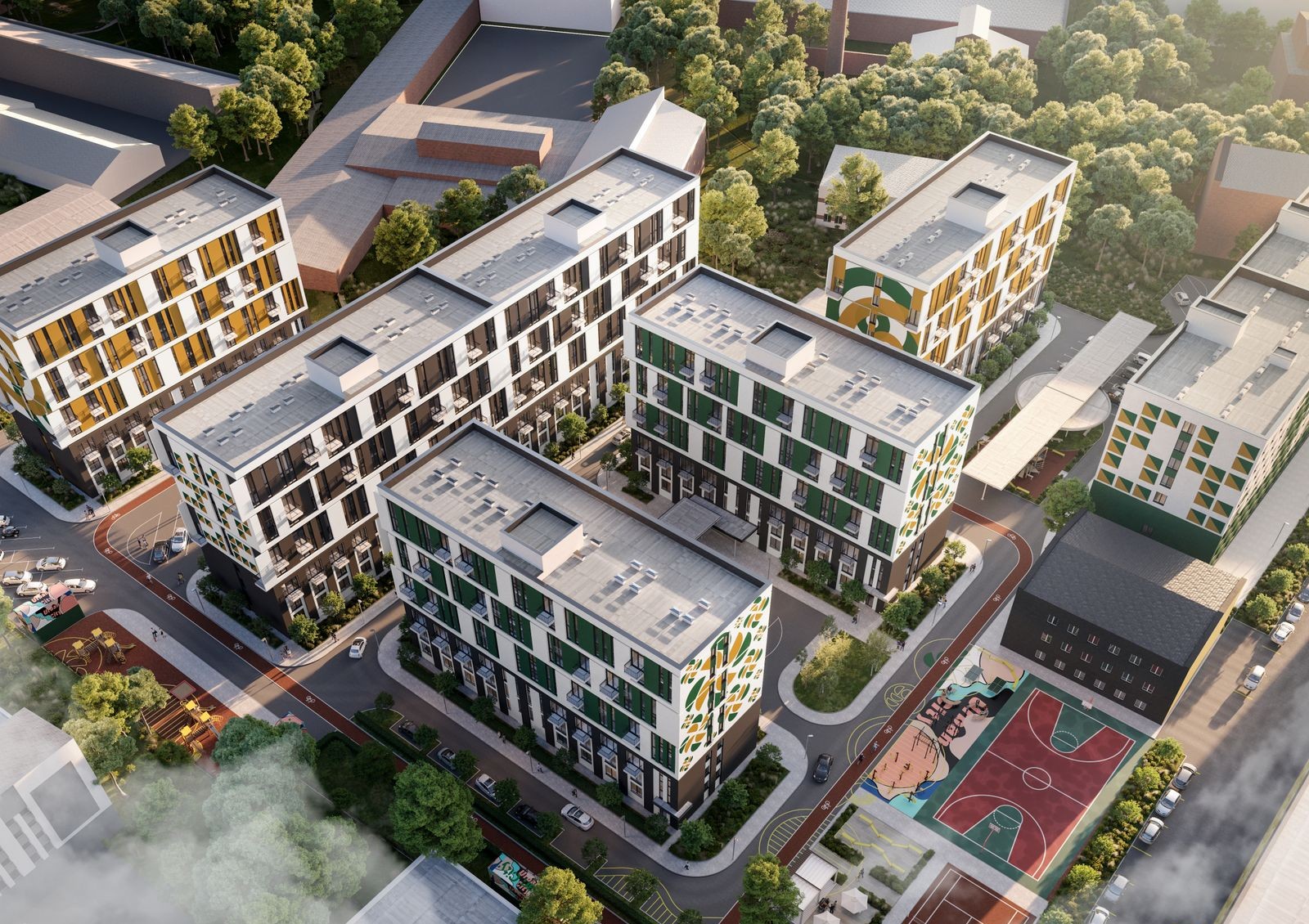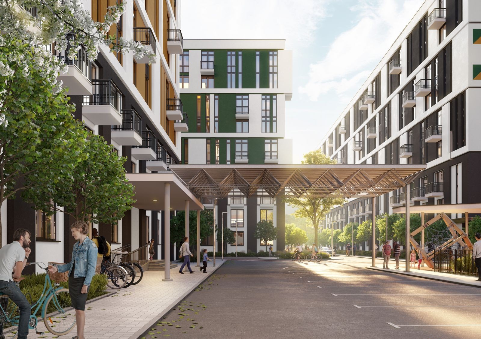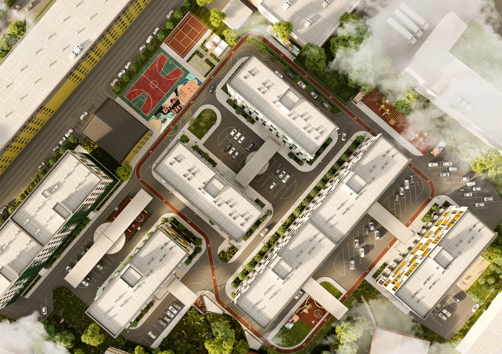Центральная идея проекта Urban City — перестройка промышленного района в современный и комфортный жилой комплекс. Вместо заброшенного велозавода здесь будет шесть домов в урбанистическом стиле, спортивные и детские площадки, барбекю-зоны, зеленые аллеи, беговые и велодорожки длиной 820 м. Комплекс ориентирован в основном на молодежь и небольшие семьи — выбор планировок включает в себя компактные смарт и однокомнатные квартиры. Также застройщик поддерживает идею pet-friendly: на территории подготовят удобства для уборки за животными и обустроят зоны выгула. Для автомобилей предусмотрено 2 стоянки на 25 машиномест в каждой.