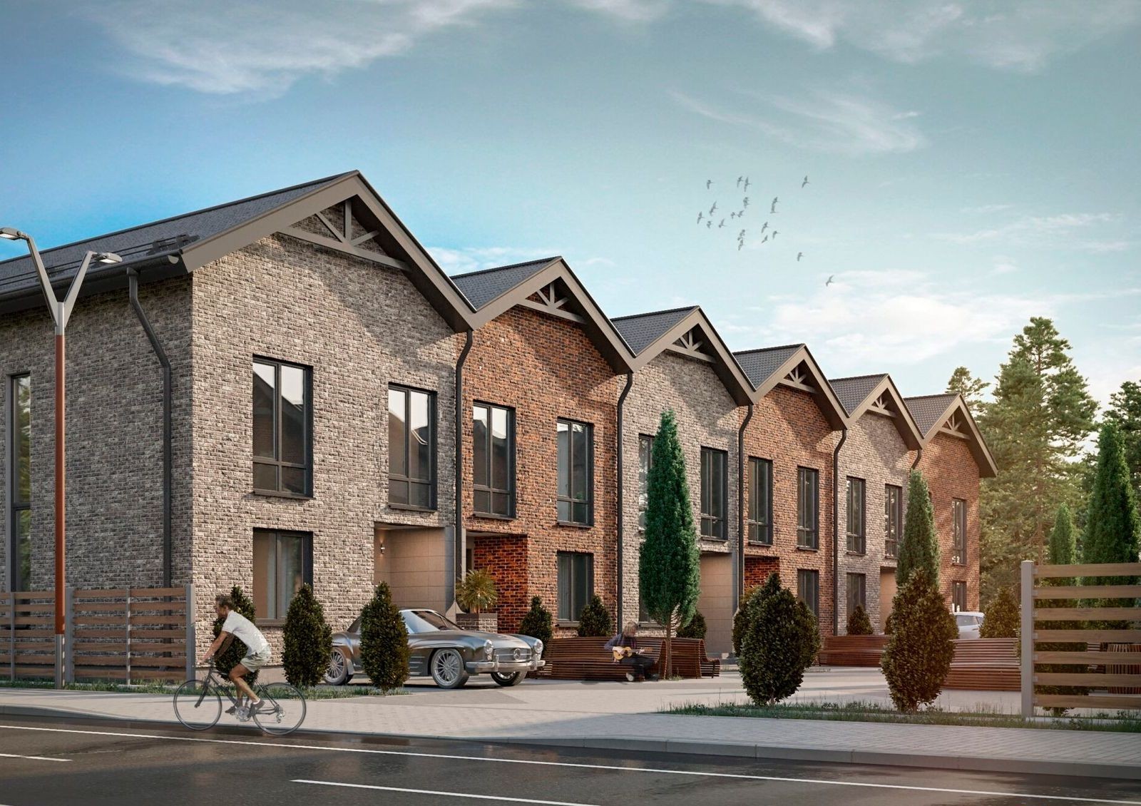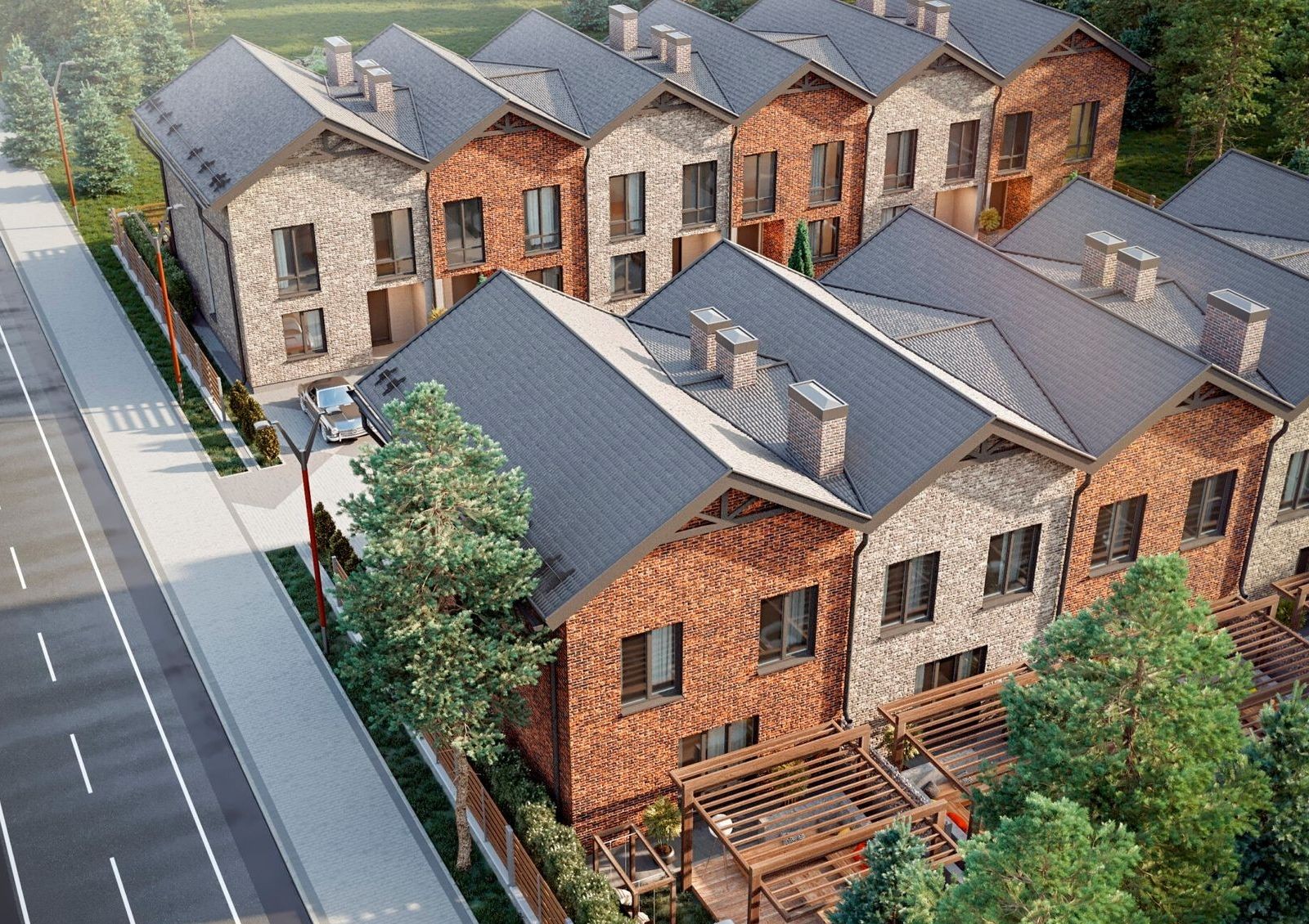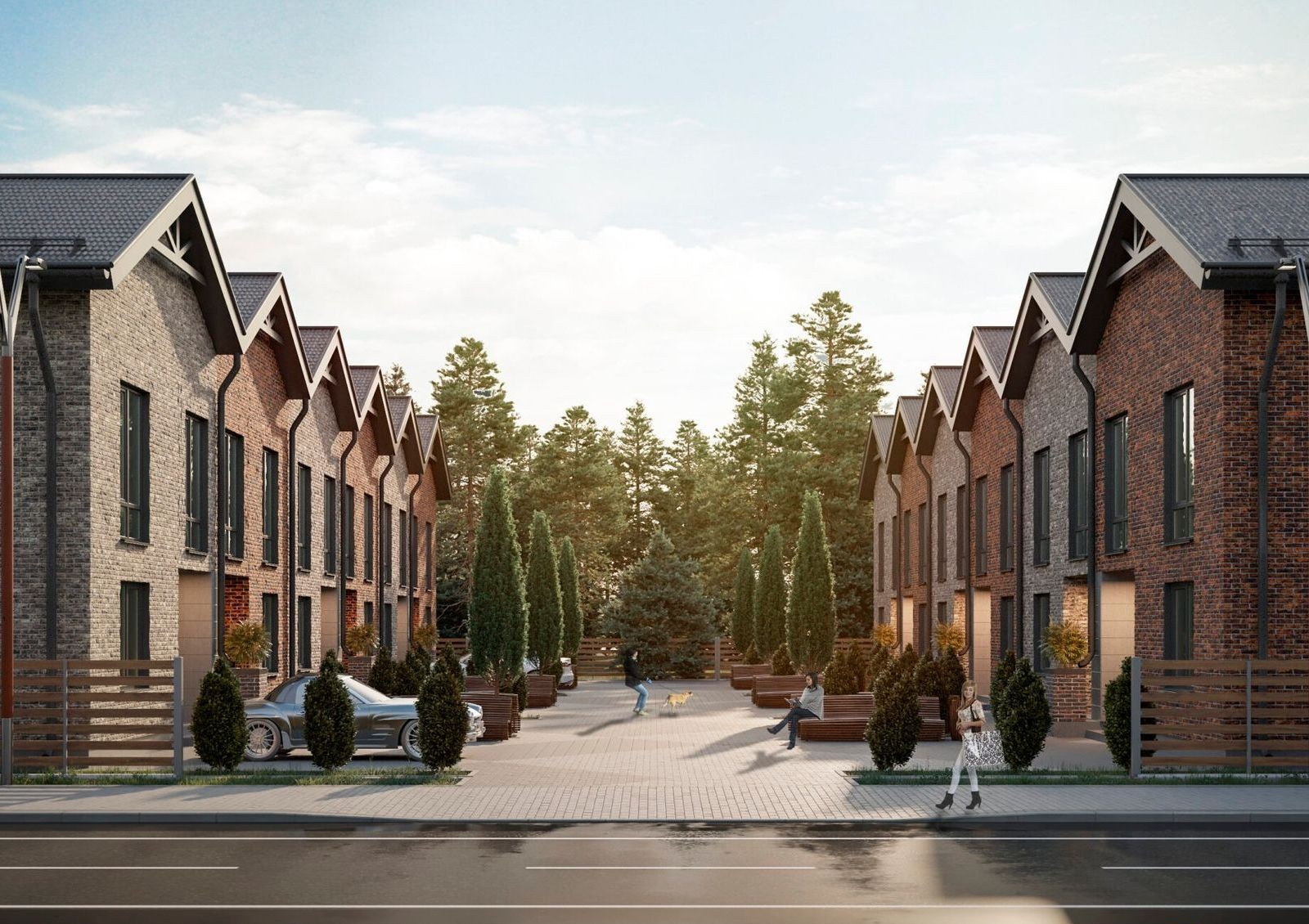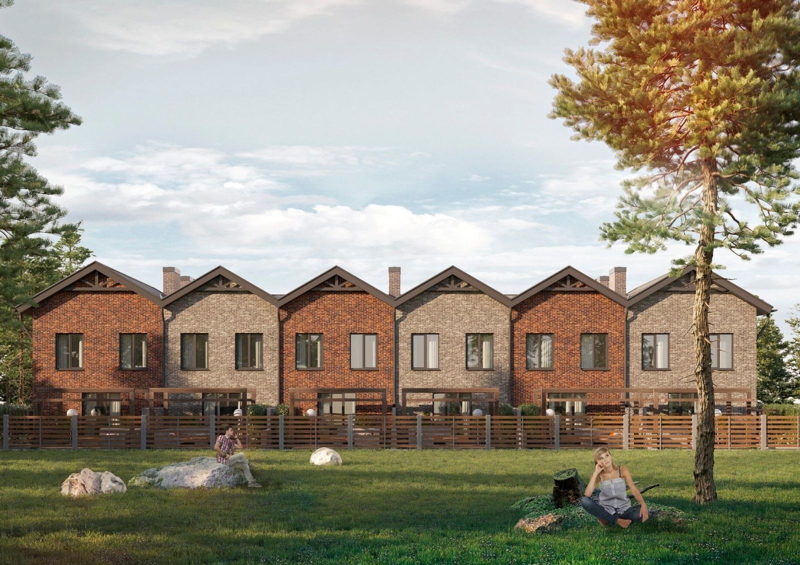 двухэтажные таунхаусы двух типов с придомовыми участками площадью 1.5 сотки