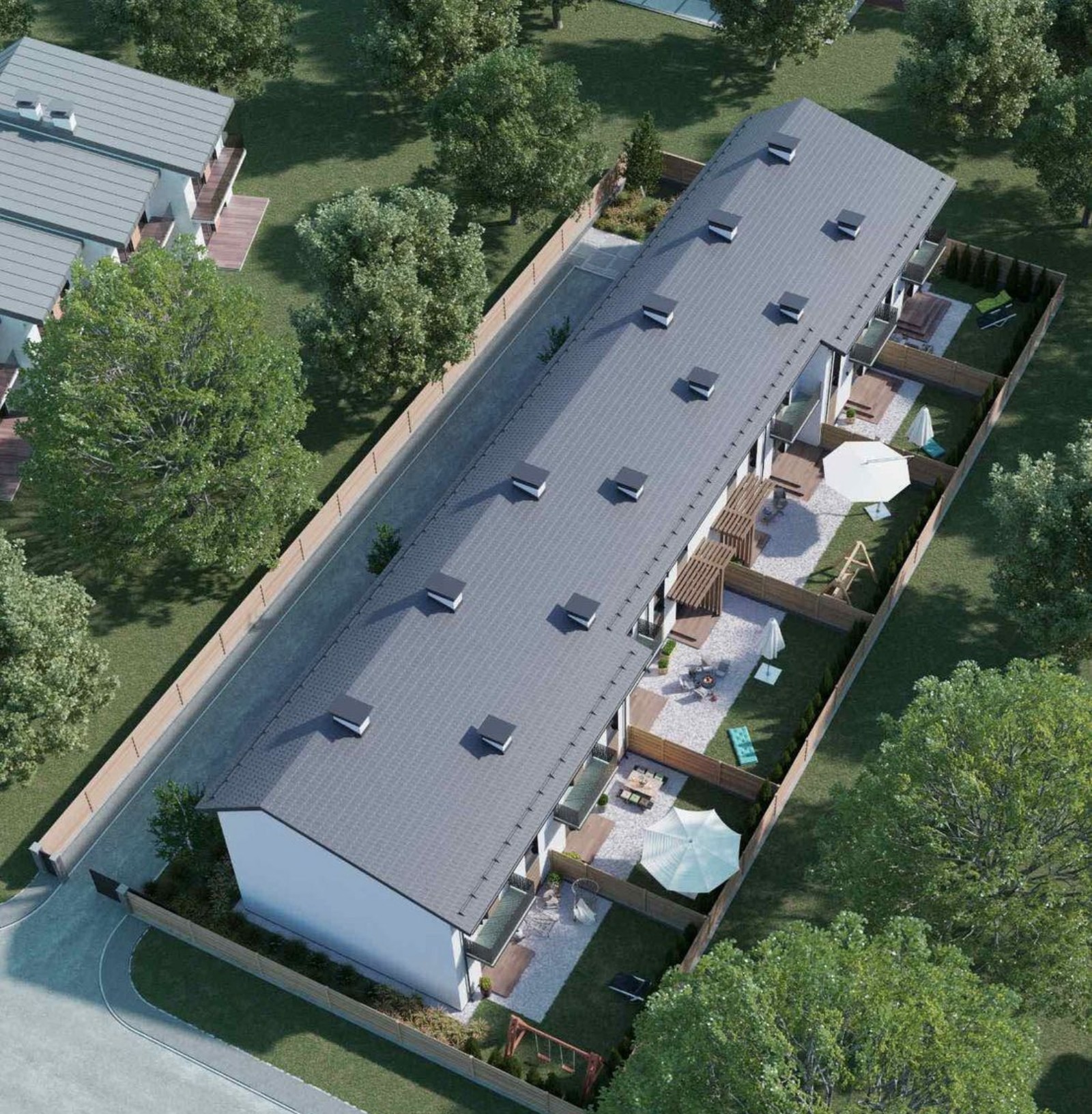 Главное преимущество таунхаусов состоит в наличии собственного земельного участка, который можно обустроить как лаунж-зону с бассейном, детской площадкой, барбекю и беседкой. С фасадной стороны каждого дома предусмотрены два паркоместа. Безопасность жильцов и их имущества обеспечит закрытая от посторонних территория и круглосуточная охрана.
