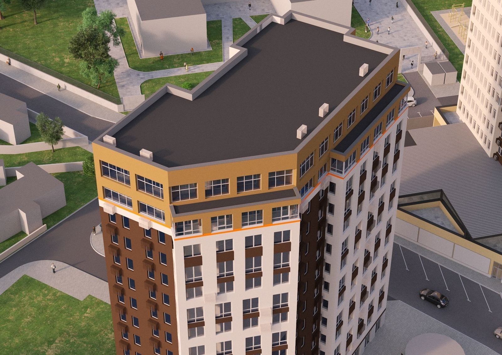 предусмотрены корзины для наружных блоков кондиционеров — это поможет не портить внешний вид фасадов неупорядоченной установкой кондиционеров