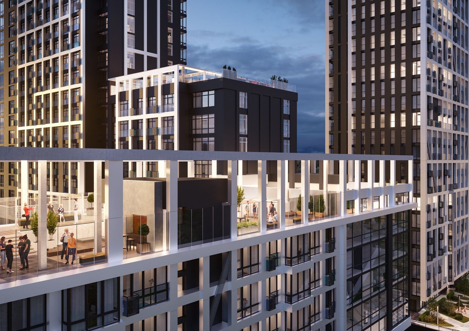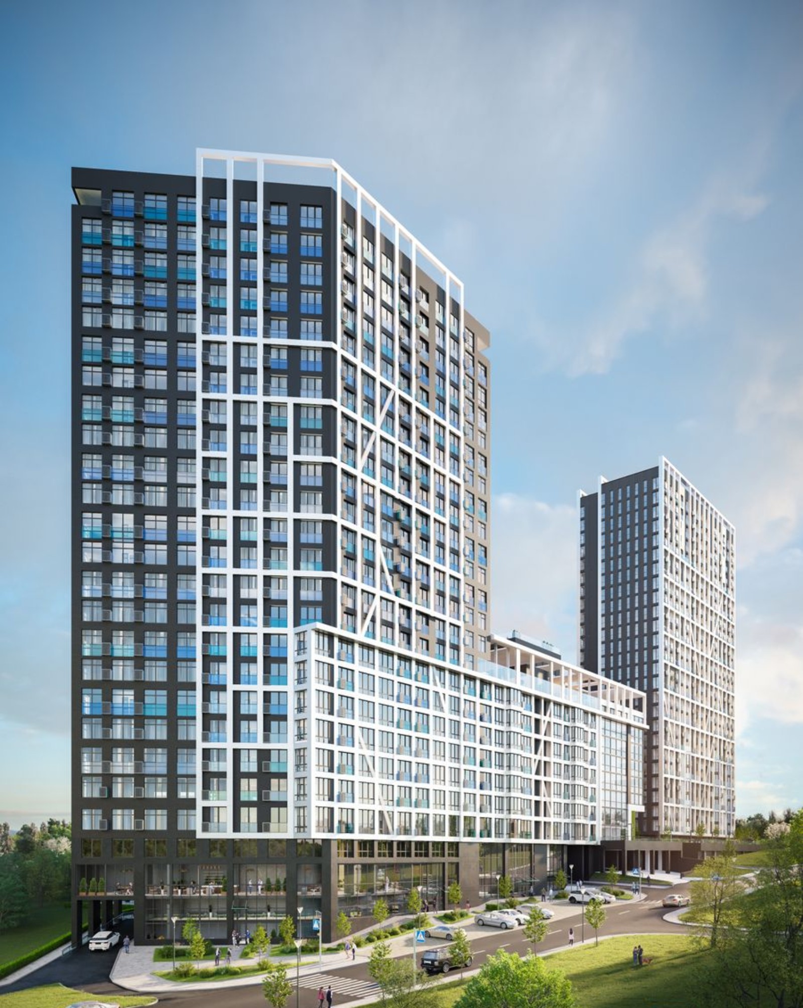 развитая внутренняя инфраструктура — для удобства жильцов застройщик предусмотрел коммерческие помещения под магазины, кофейни, аптеки и салоны красоты