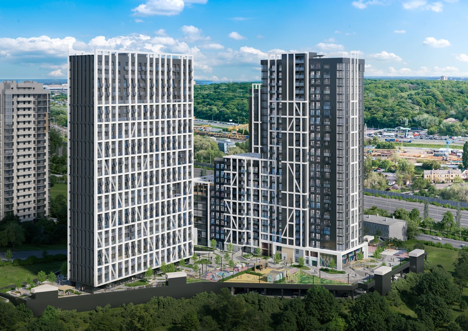 Особенностью комплекса будет лаунж-пространство на крыше одного из домов, откуда открывается красивая панорама на Печерск. Также застройщик предусмотрел закрытый внутренний двор без машин — это полностью пешеходная зона, где ваши дети будут играть на площадках, а вы спокойно отдыхать в тени деревьев. Для автомобилей построят вместительный подземный паркинг на 523 машиноместа с зарядными станциями для электрокаров, поэтому проблем с хранением авто не должно возникнуть.