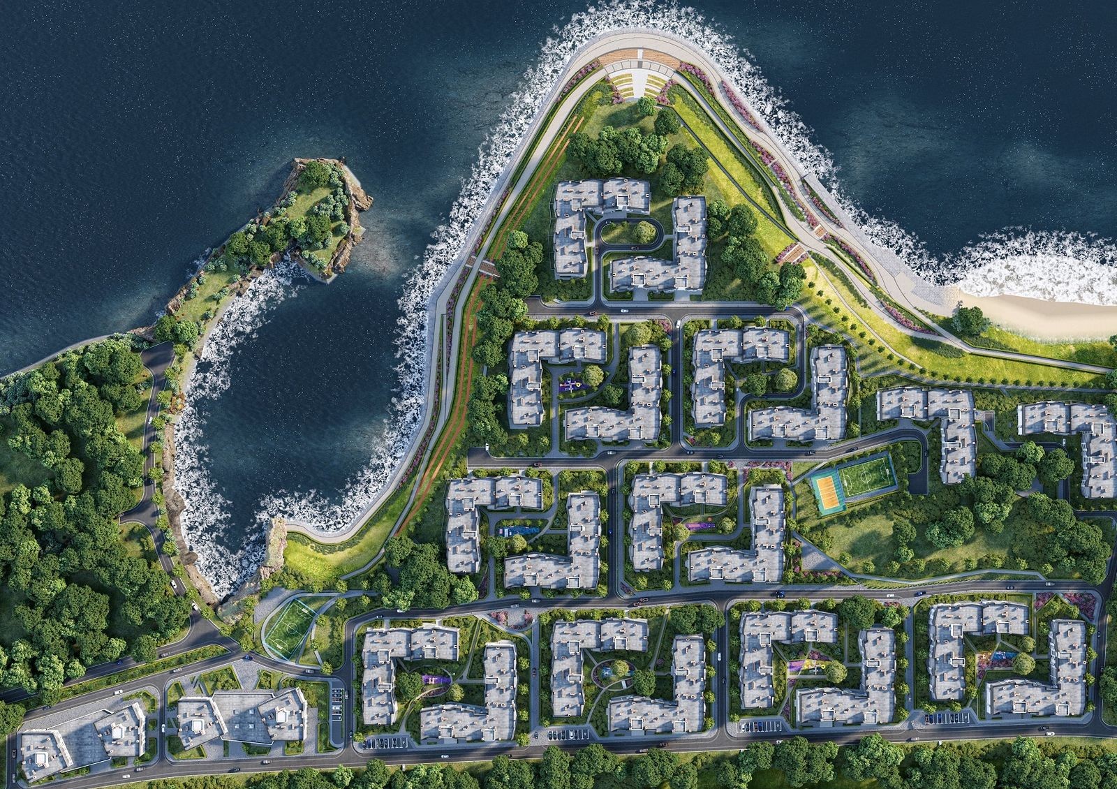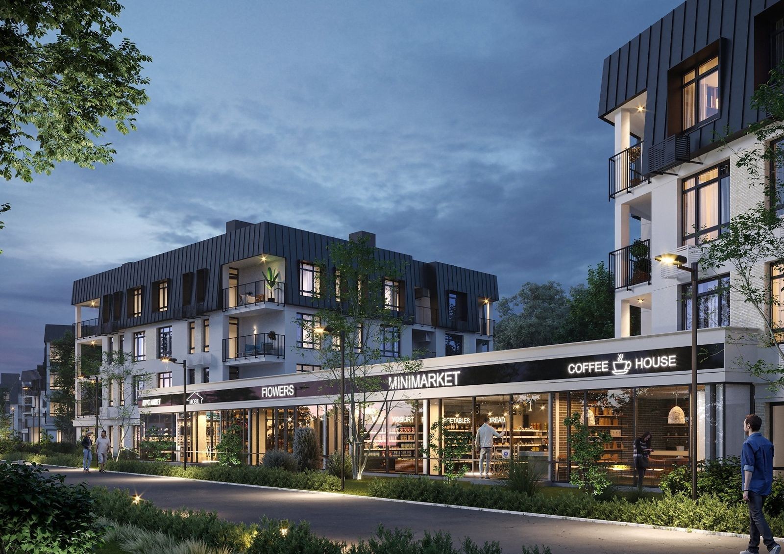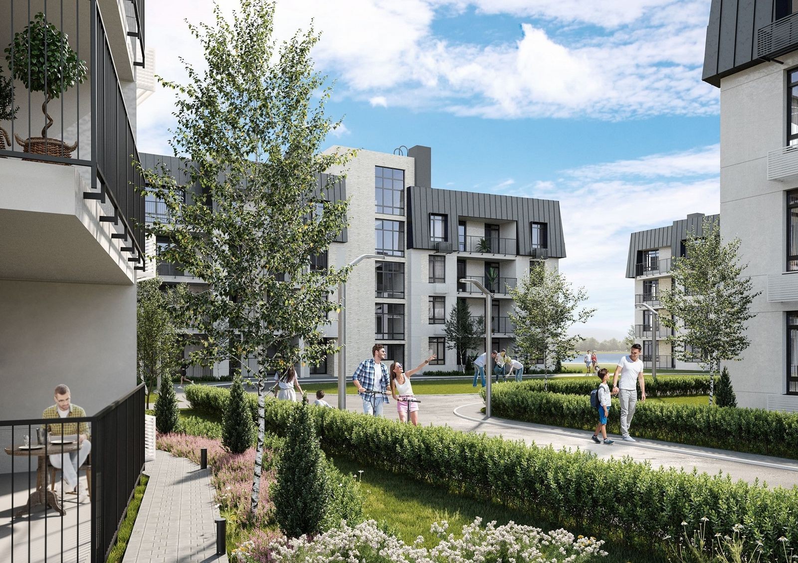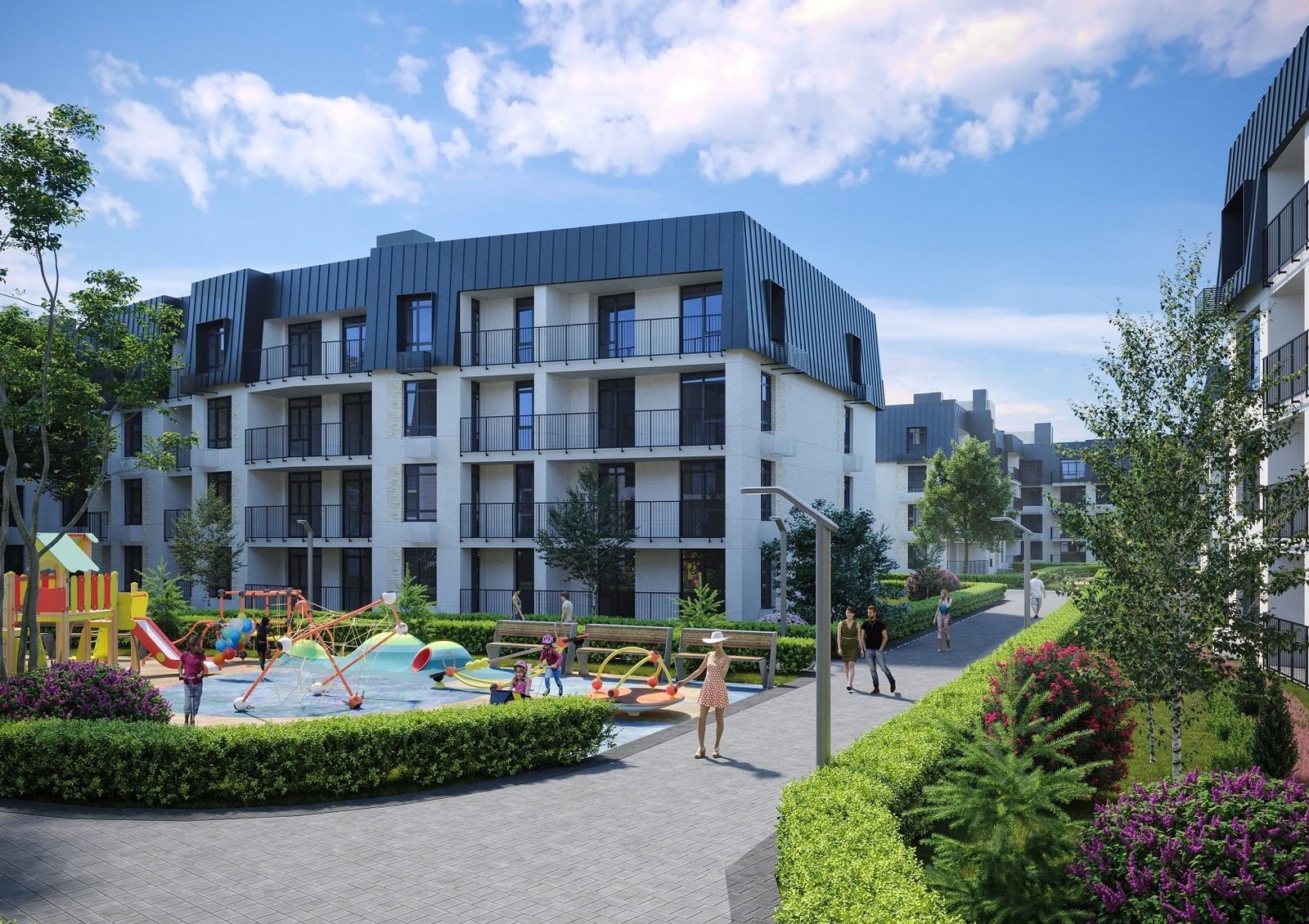 Отдельные полузакрытые дворы порадуют владельцев квартир зелеными зонами отдыха, современными детскими и спортивными площадками. Проектом новостройки предусмотрена собственная инфраструктура: на первых этажах нескольких домов разместят кафе, рестораны, салоны красоты, отделения банков, медицинские центры, спорткомплексы и минимаркеты.