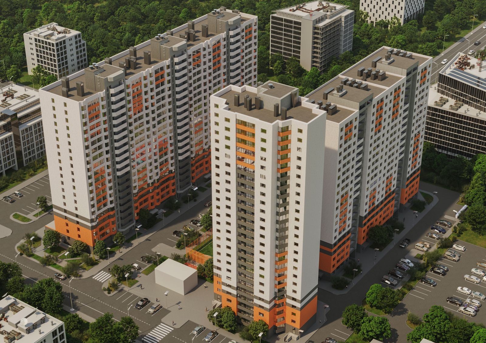 для автомобилей жильцов предусмотрен паркинг с внешней стороны комплекса