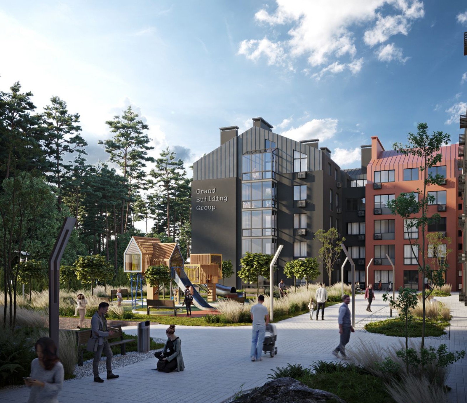 Grand Country Irpin — малоэтажный жилой комплекс в формате клубного дома в живописном пригороде столицы. Пять 5-этажных домов расположились в окружении хвойного леса, пейзажи на который открываются с открытых террас квартир верхних этажей. Недалеко от новостройки — озеро, на берегу которого обустроен городской пляж. На внутренней территории будут современные лаунж-зоны, детские и спортивные площадки. По периметру комплекса предусмотрены места для стоянки автомобилей.
