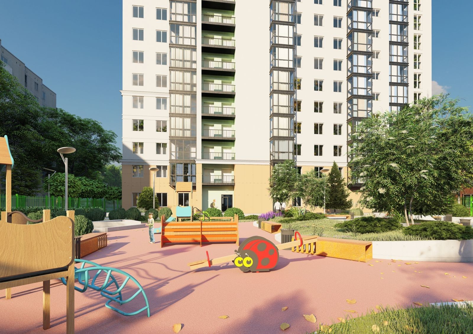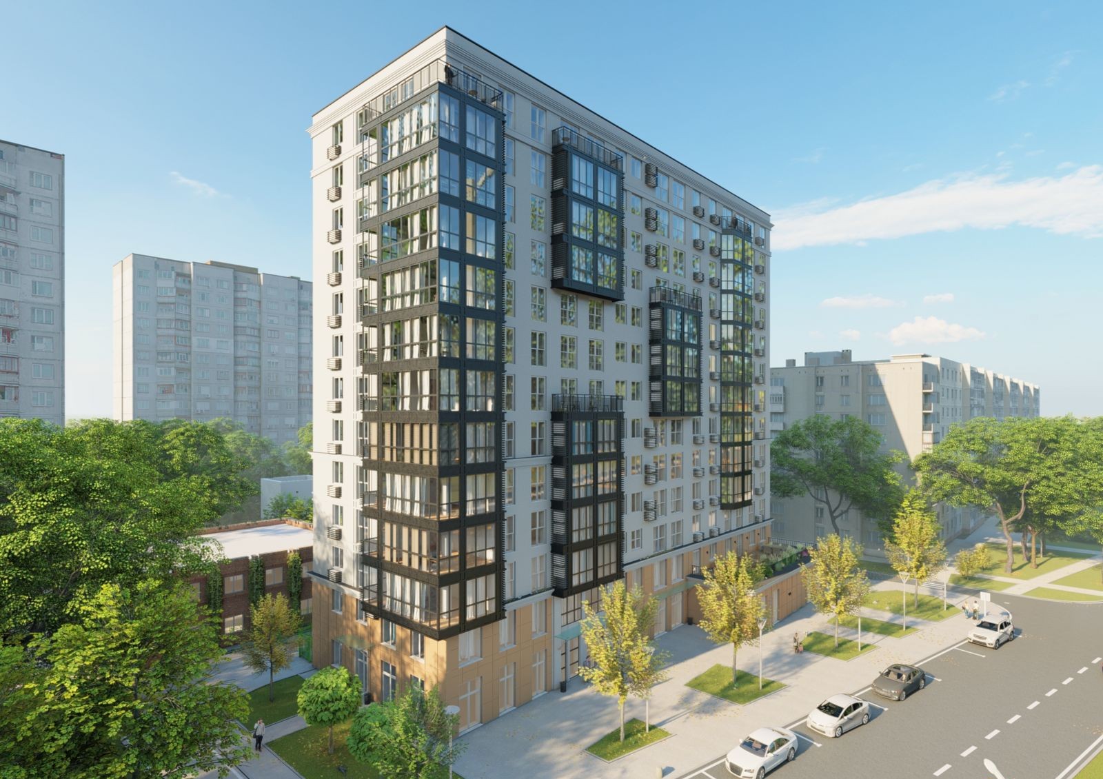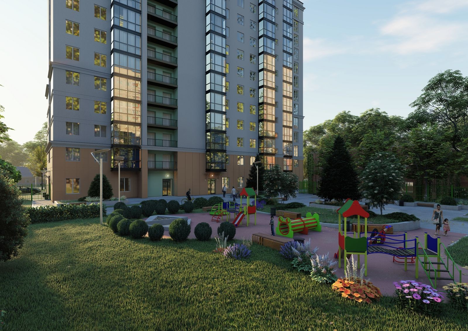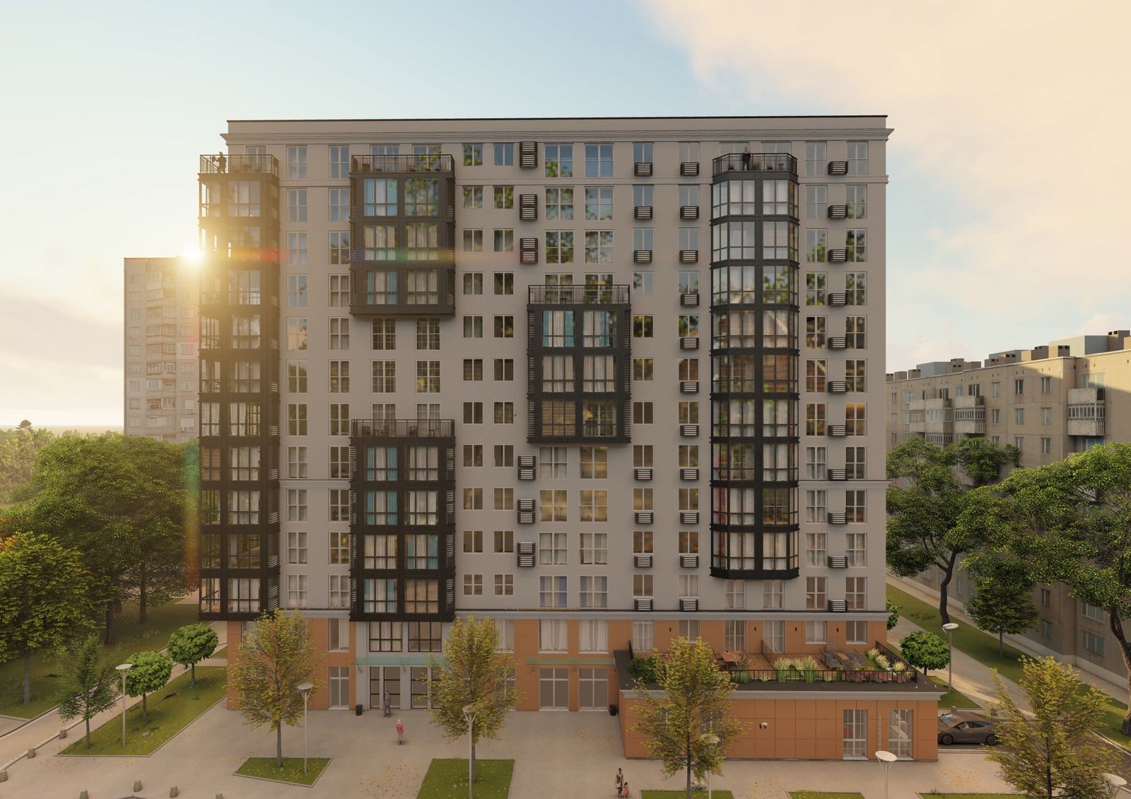 Новостройка состоит из 12 жилых и одного коммерческого этажа, на котором будут открыты продуктовый магазин, аптека, детский центр, салон красоты и другие сервисные компании. Вам не нужно будет тратить много времени на шоппинг, поскольку все самое необходимое будет под рукой.