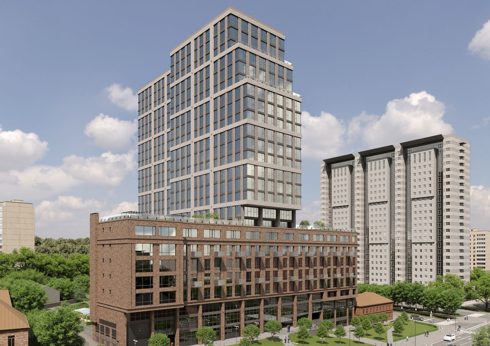 MANHATTAN — новый жилой комплекс бизнес-класса из четырех секций разной этажности, объединенных двухэтажным стилобатом, в котором размещен паркинг для автомобилей жильцов и гостей. На кровле стилобата и придомовой территории будут обустроены зоны отдыха для взрослых, прогулочные аллеи, детская и спортивная площадка. Из окон части квартир дома открывается прекрасный вид на Днепр, из остальных — панорама на город.