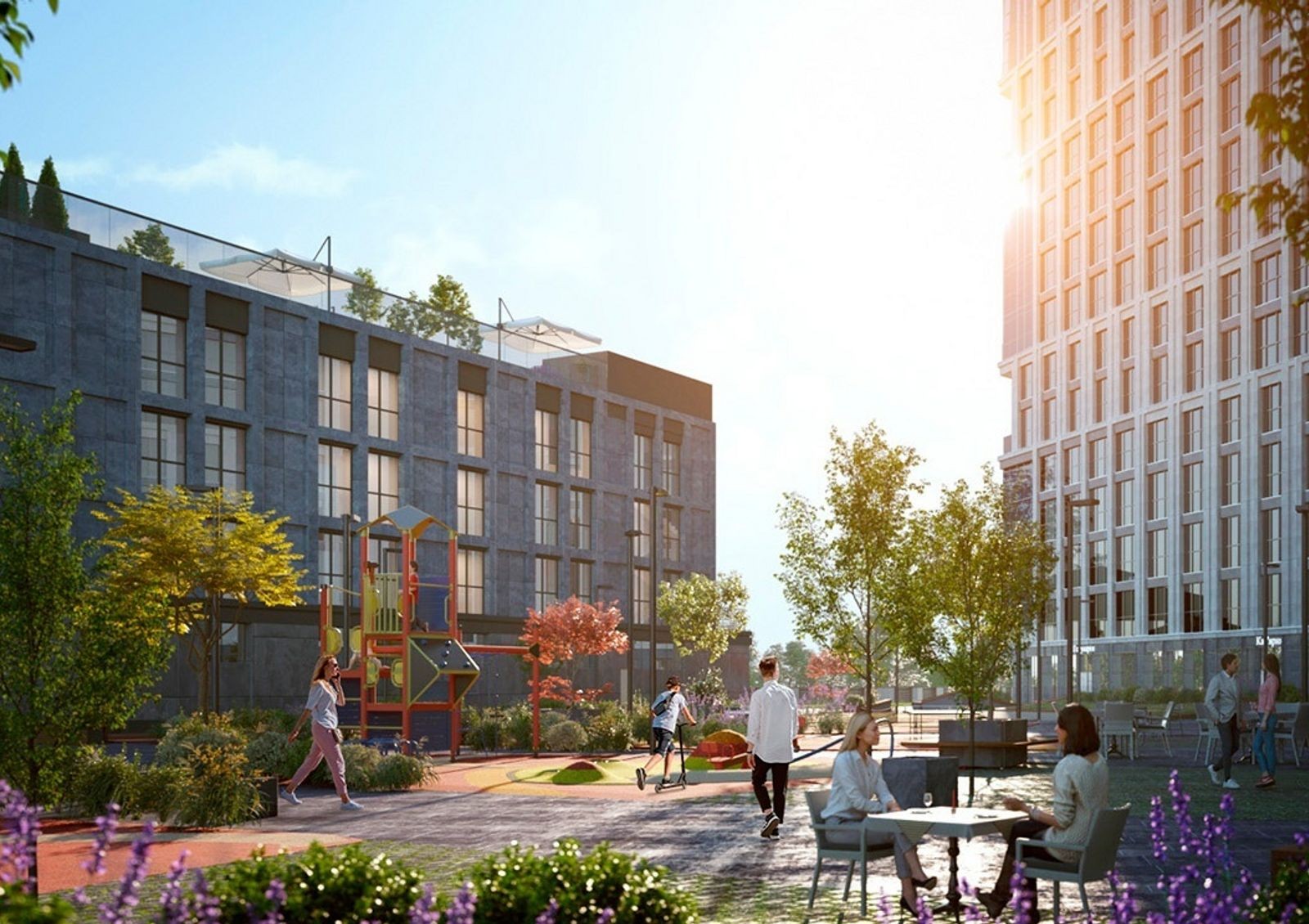 Собственная инфраструктура позволит совершать покупки, отдыхать с семьей, заниматься спортом и проводить деловые встречи, не покидая территории комплекса.