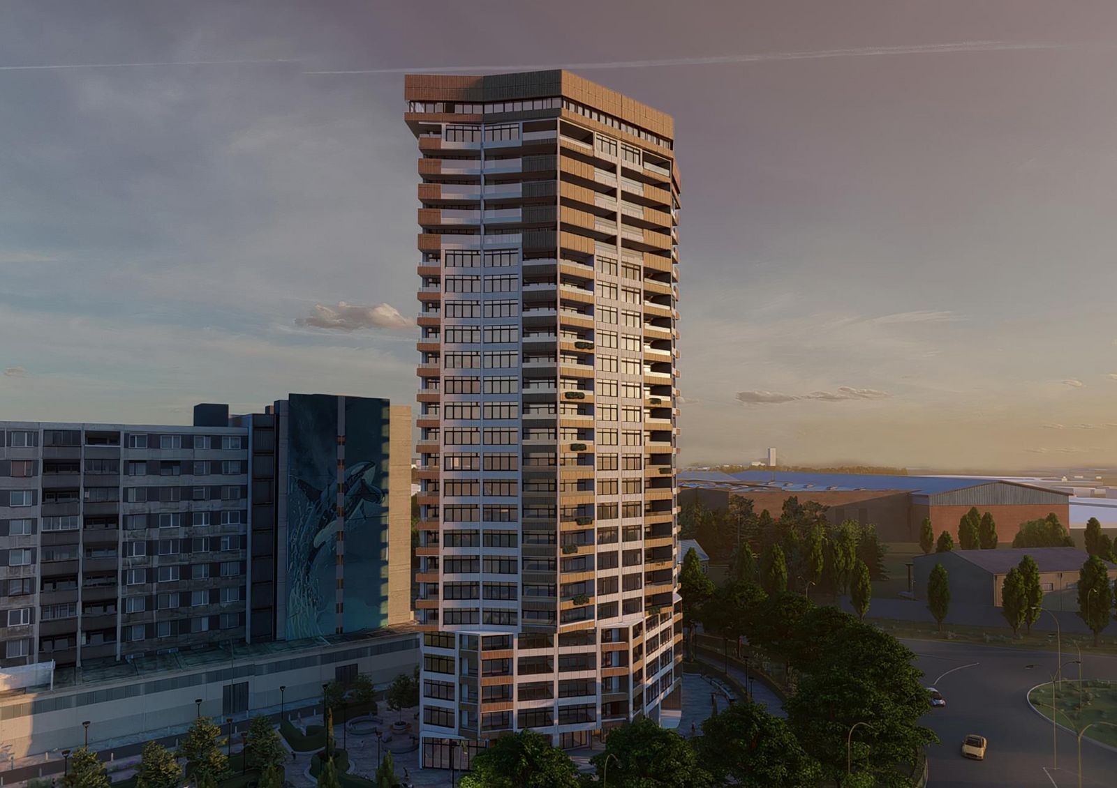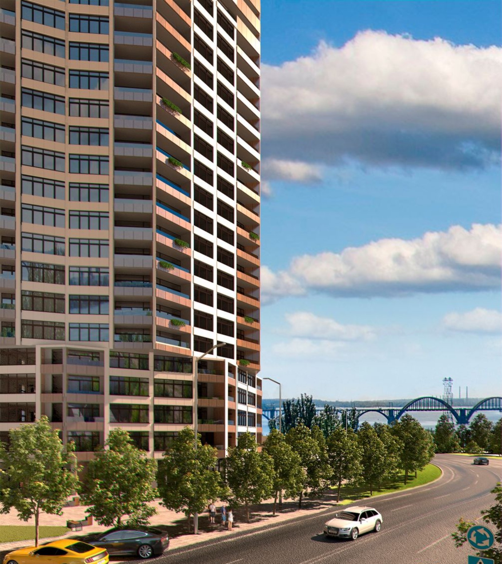 Новый жилой комплекс расположен в микрорайоне «Солнечный». До Европейской площади 10 минут на машине через Центральный мост. Если потребуется общественный транспорт — недалеко остановка автобусов №35, №201, №262, №10001, троллейбуса №14 и маршрутных такси №7, №21, №21Б, №54, №56, №70, №97, №137, №177.