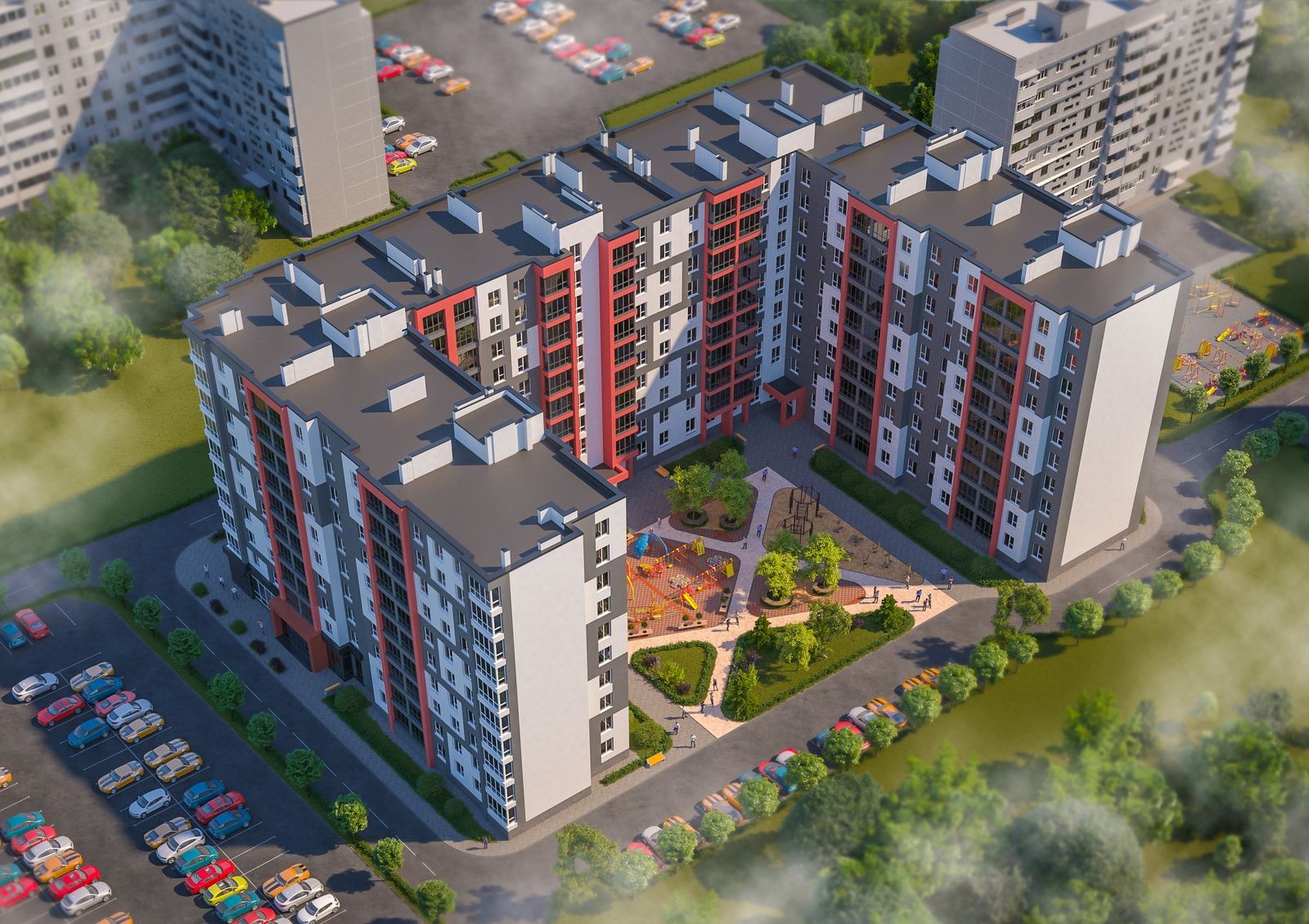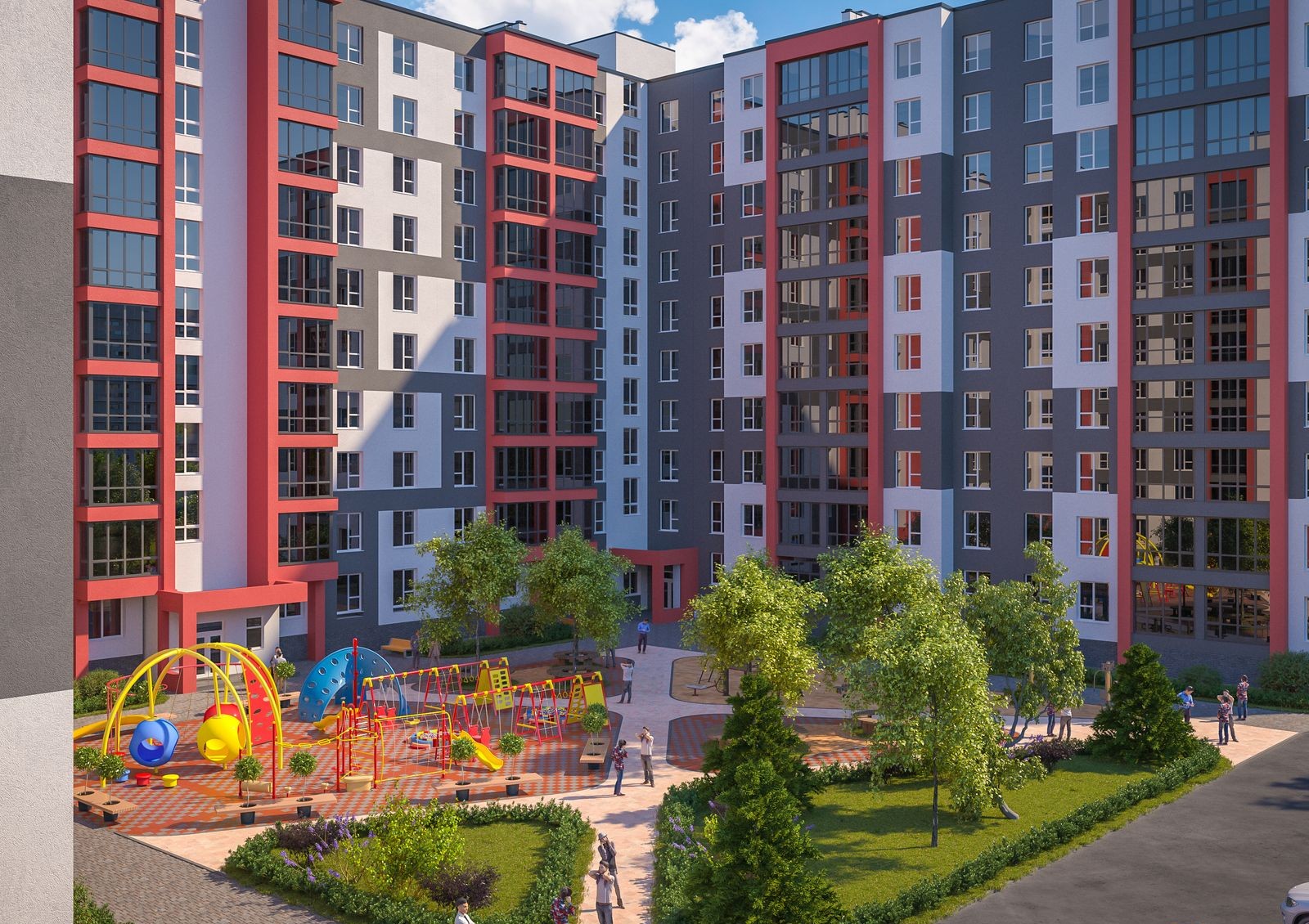 Gloria — продуманный до мелочей жилой комплекс family-класса в микрорайоне Хмельники, в 10 минутах на авто от центра города. Периметральная застройка образует закрытый от посторонних уютный двор с местами для отдыха, развлечений и занятий спортом. Для малышей у комплекса будет современная игровая площадка, на которой найдется занятие для детей разных возрастных категорий. Чтобы шум автомобилей не создавал дискомфорта жильцам, с внешней стороны новостройки будет достаточно мест для парковки.