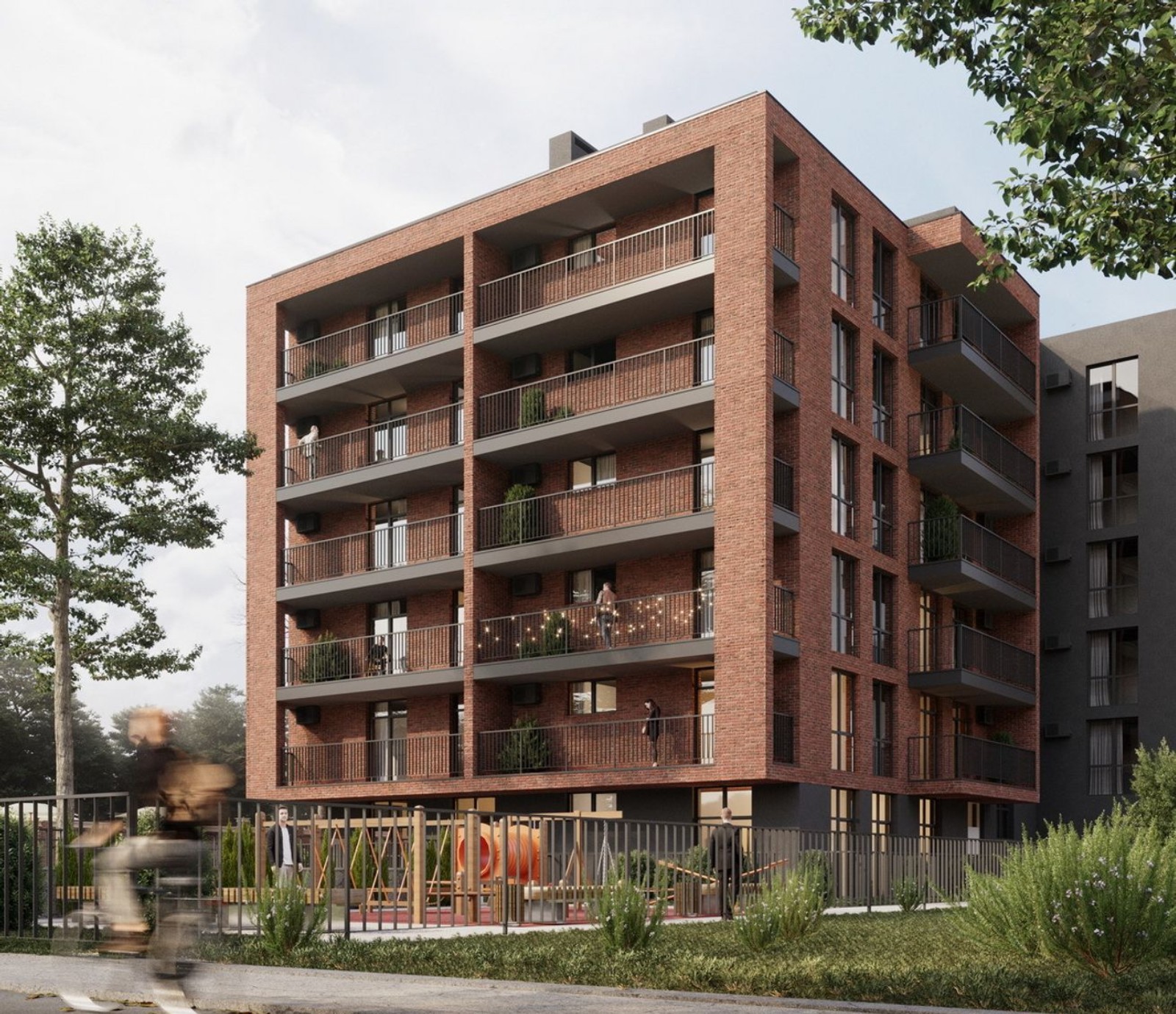 В распоряжении жильцов подземный авто- и велопаркинг с зарядками для электрокаров. Гости смогут оставлять автомобили на открытой стоянке. Для детей у комплекса будет безопасная игровая площадка, для взрослых — зона отдыха с BBQ.