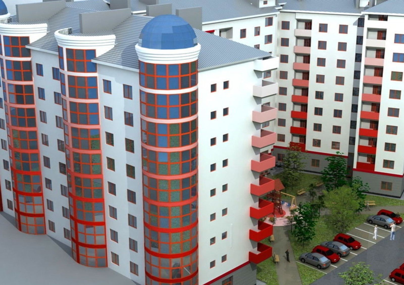 полукруглые балконы;