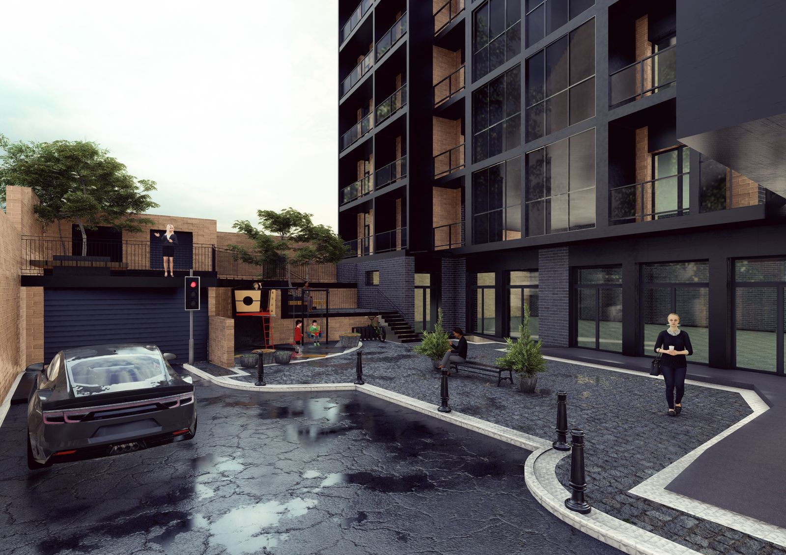 закрытая территория с концепцией «без авто и посторонних»