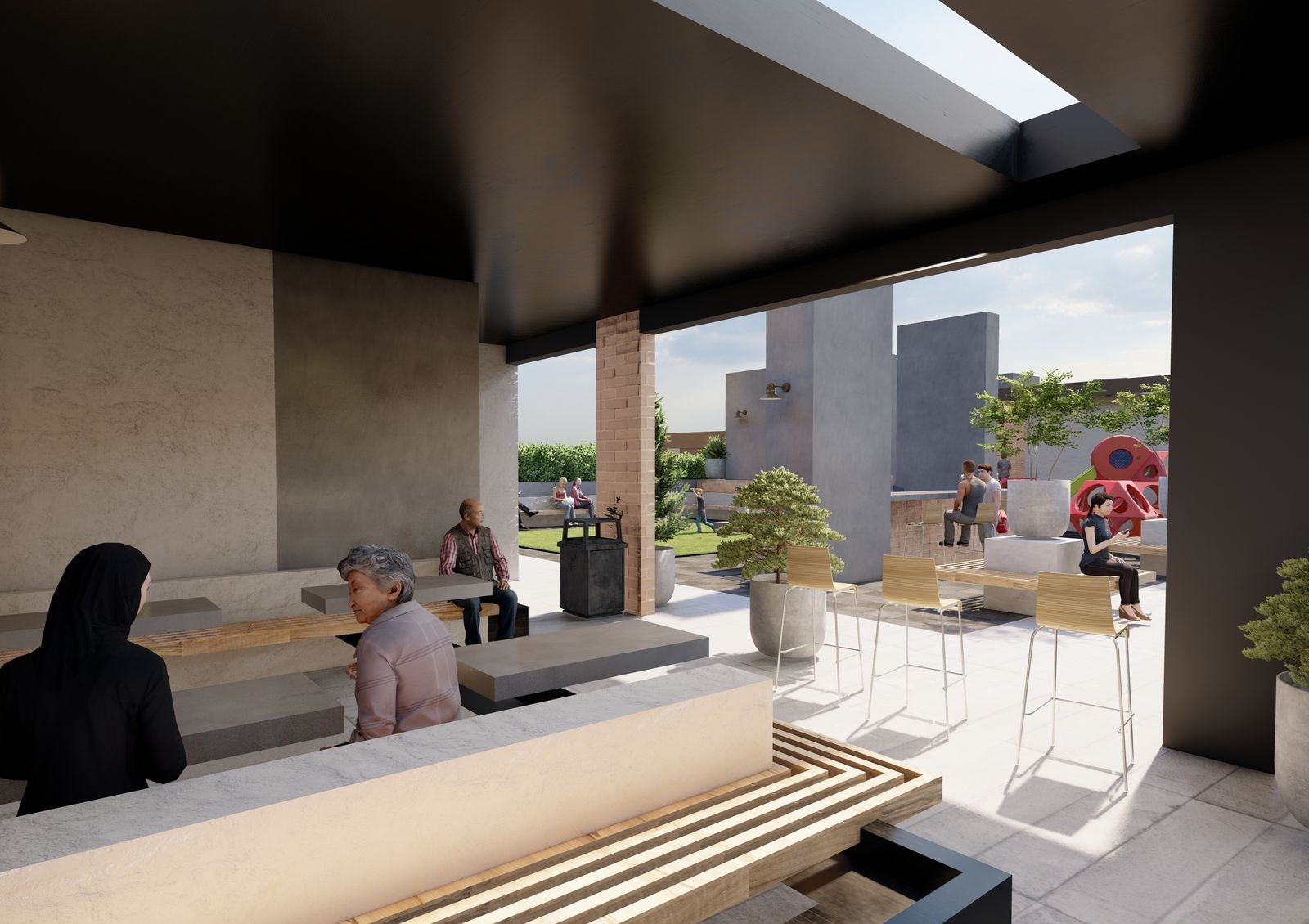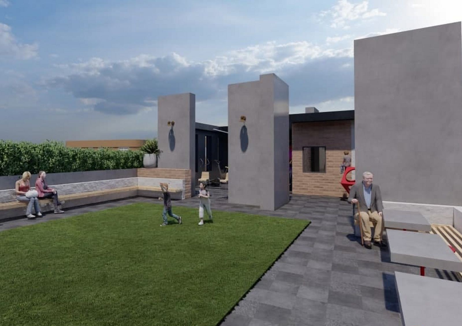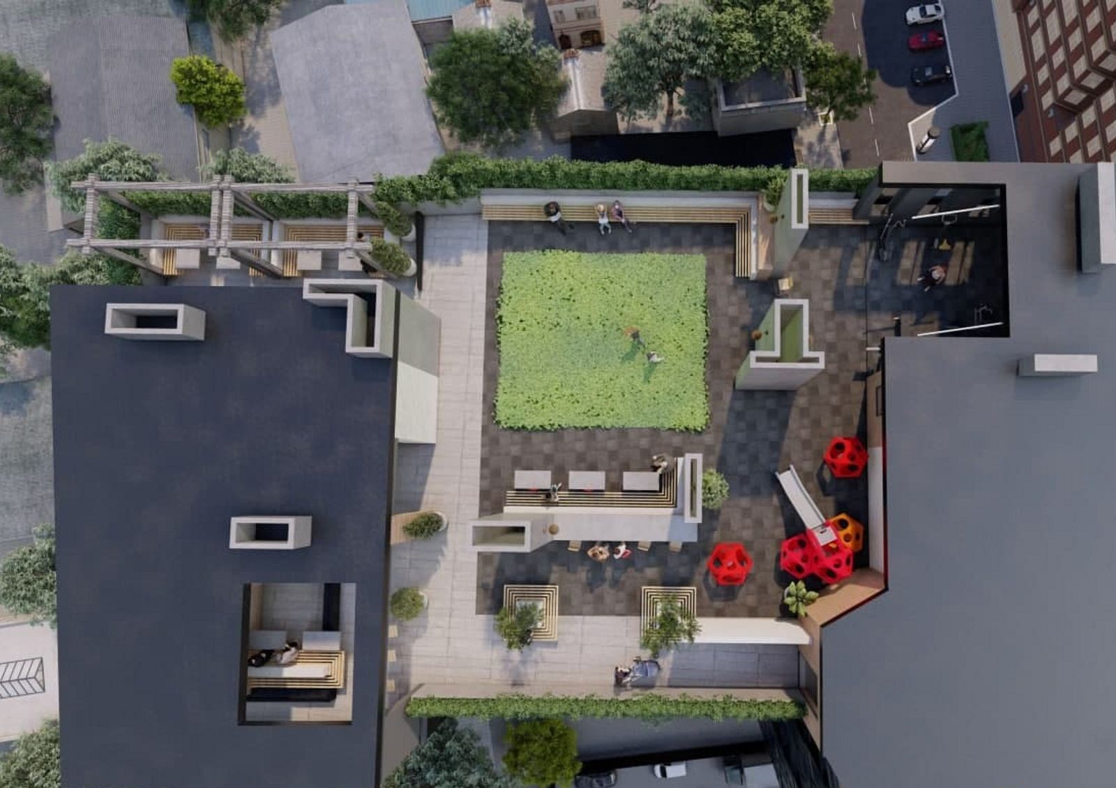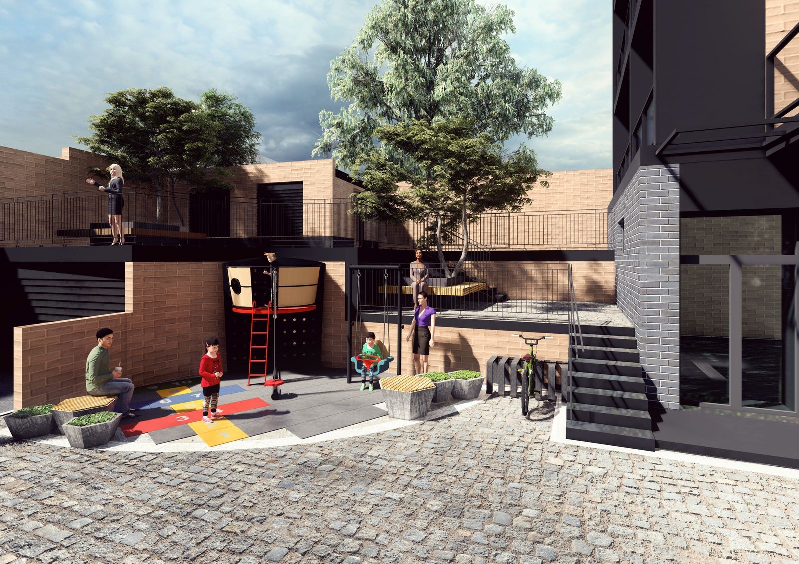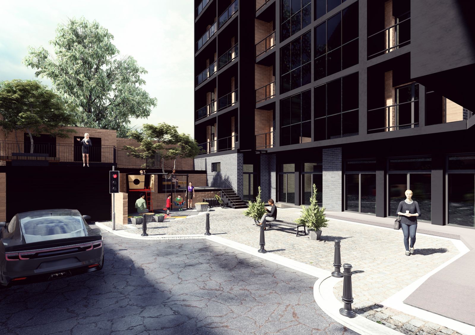 Во дворе жилого комплекса разместят удобные парковки, современные безопасные детские площадки и пешеходные дорожки со скамейками для отдыха.