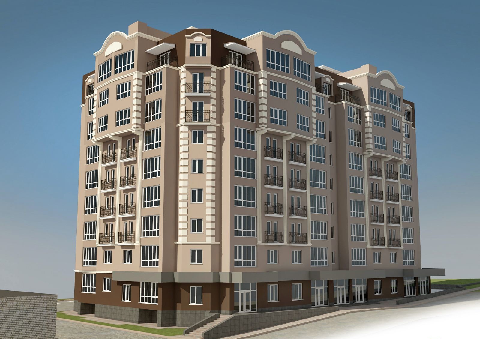 Жилой комплекс по улице Петра Калнышевского в Кременчуге представляет собой 9-этажное здание на две секции с собственной придомовой территорией, закрытой для посторонних. Двор благоустроят по ландшафтному дизайну, установят детскую площадку, места для отдыха и парковку для автомобилей жильцов. На первом этаже предусмотрены офисные и коммерческие помещения.