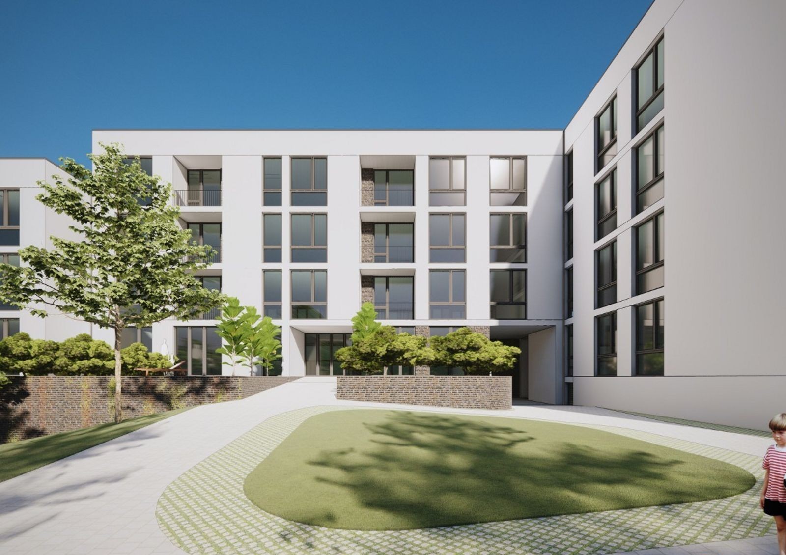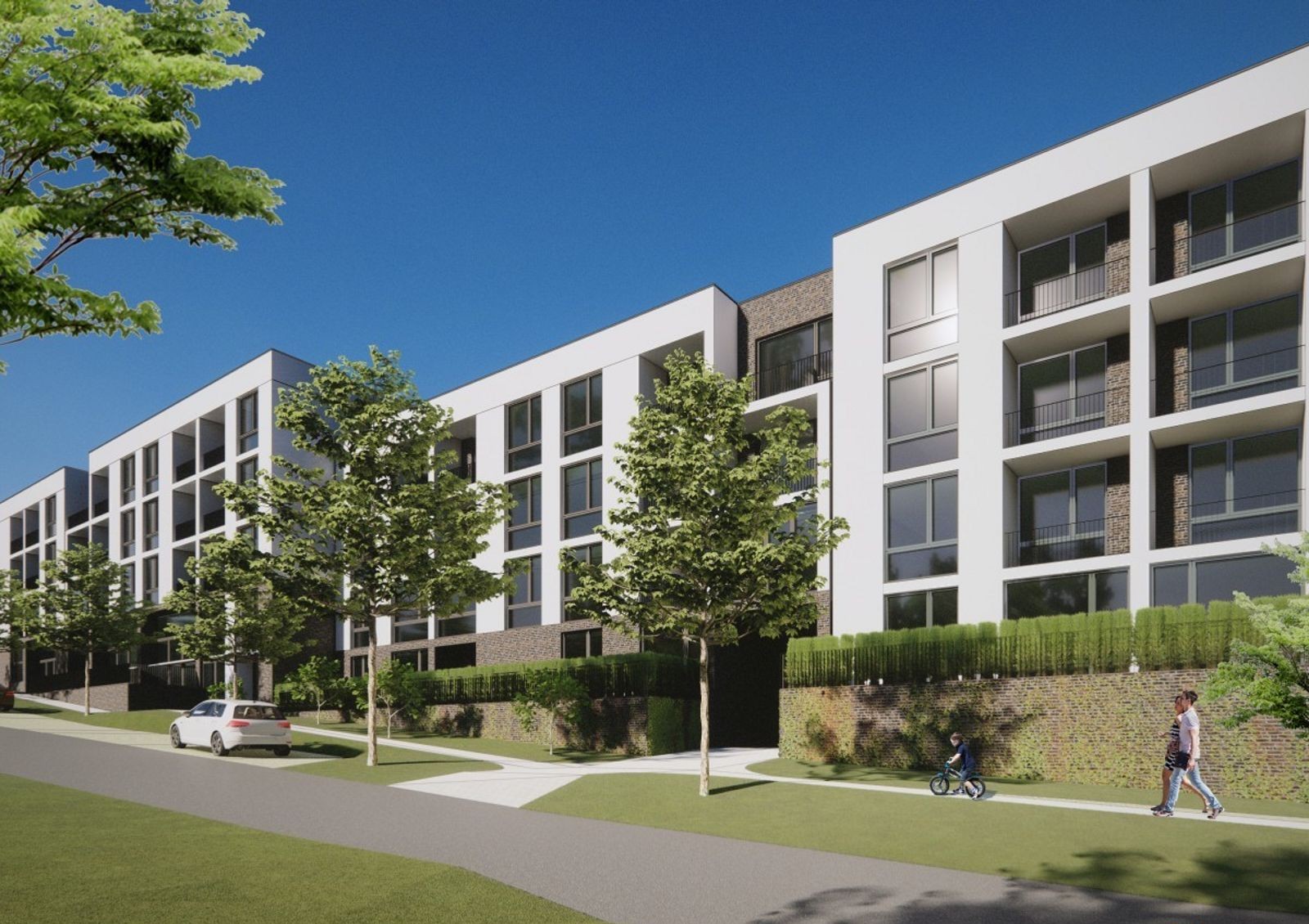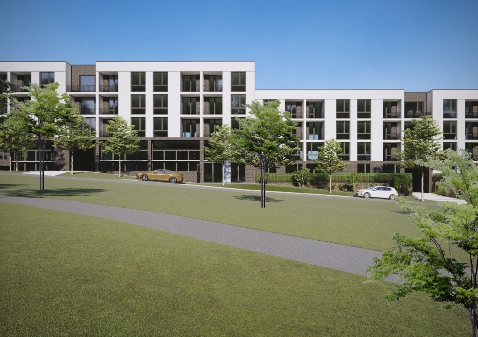 закрытая территория с концепцией «без авто и посторонних» оборудована автомобильными проездами и пешеходными аллеями