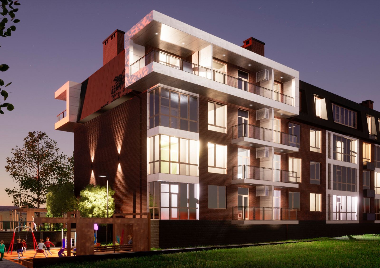 На территории комплекса будет собственный сквер, где можно прогуляться с ребенком, отдохнуть на свежем воздухе или пробежаться с утра. Также застройщик берет на себя оборудование детской и спортивной площадок. Для жильцов с автомобилями предусмотрен подземный паркинг на 13 мест.