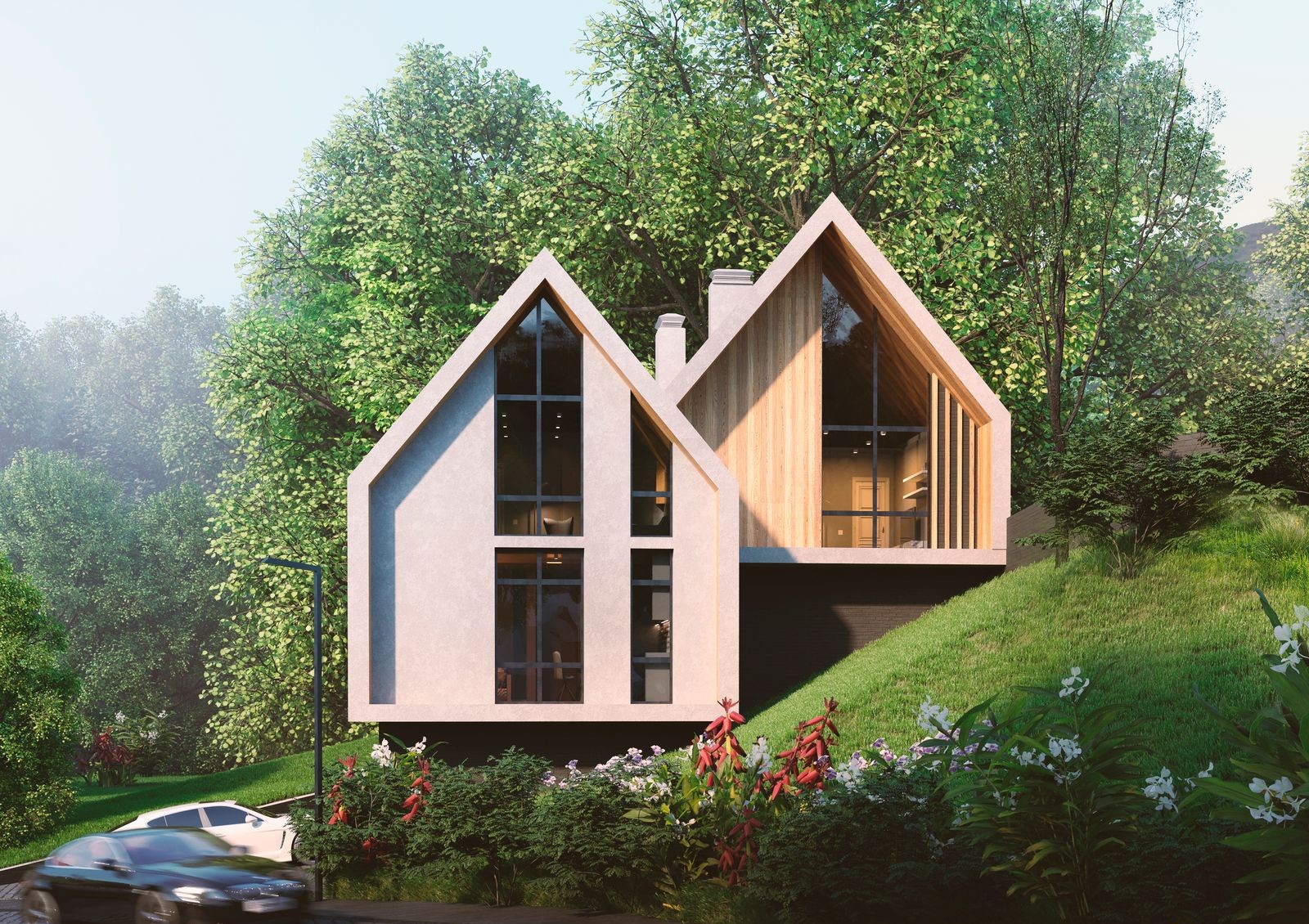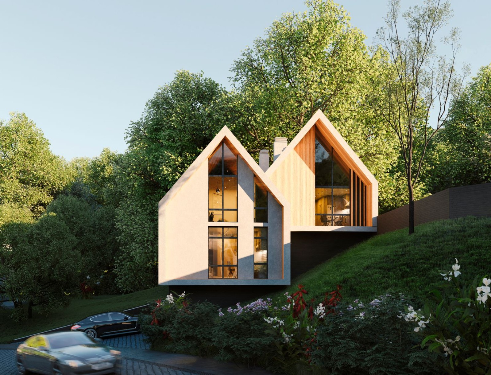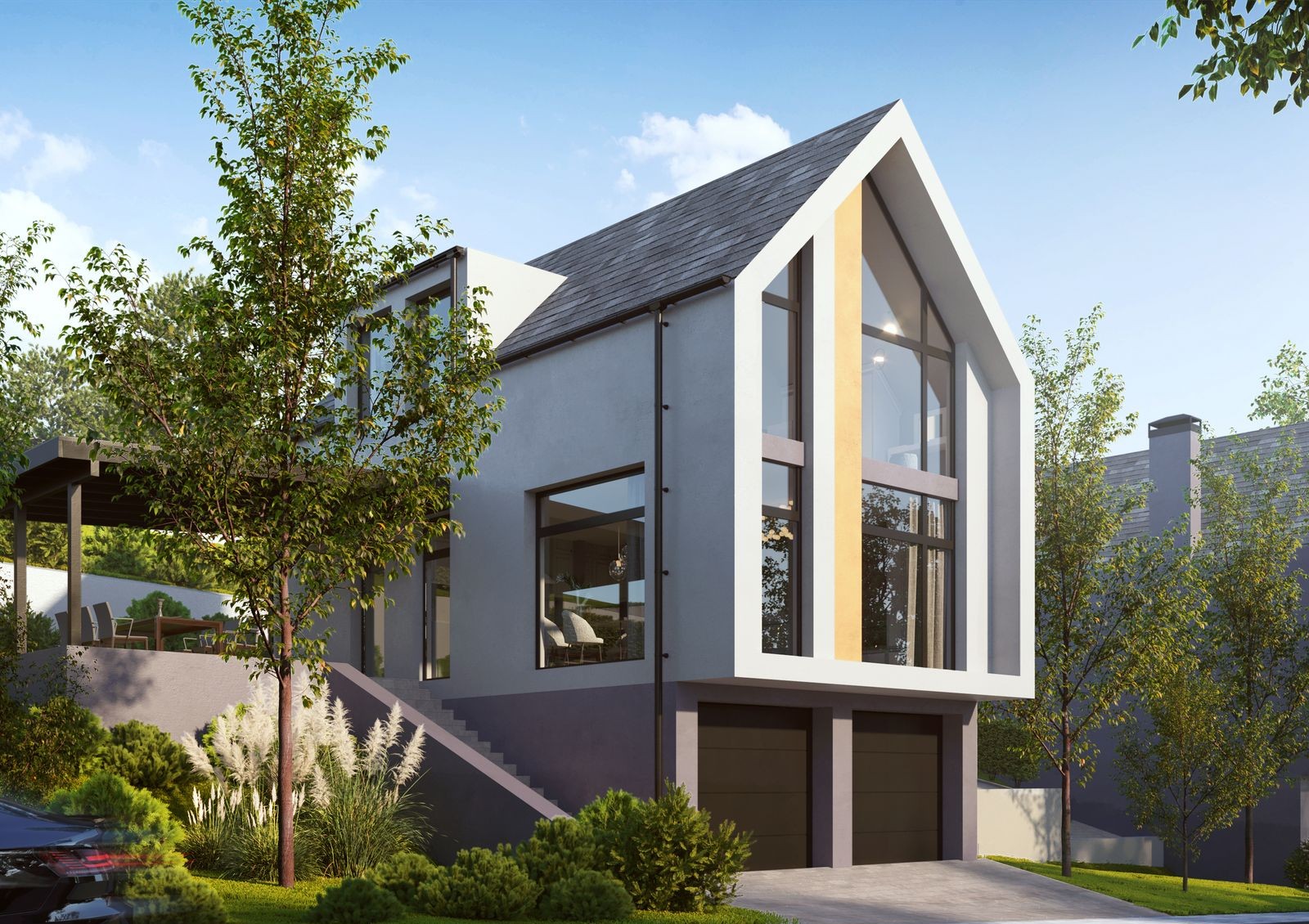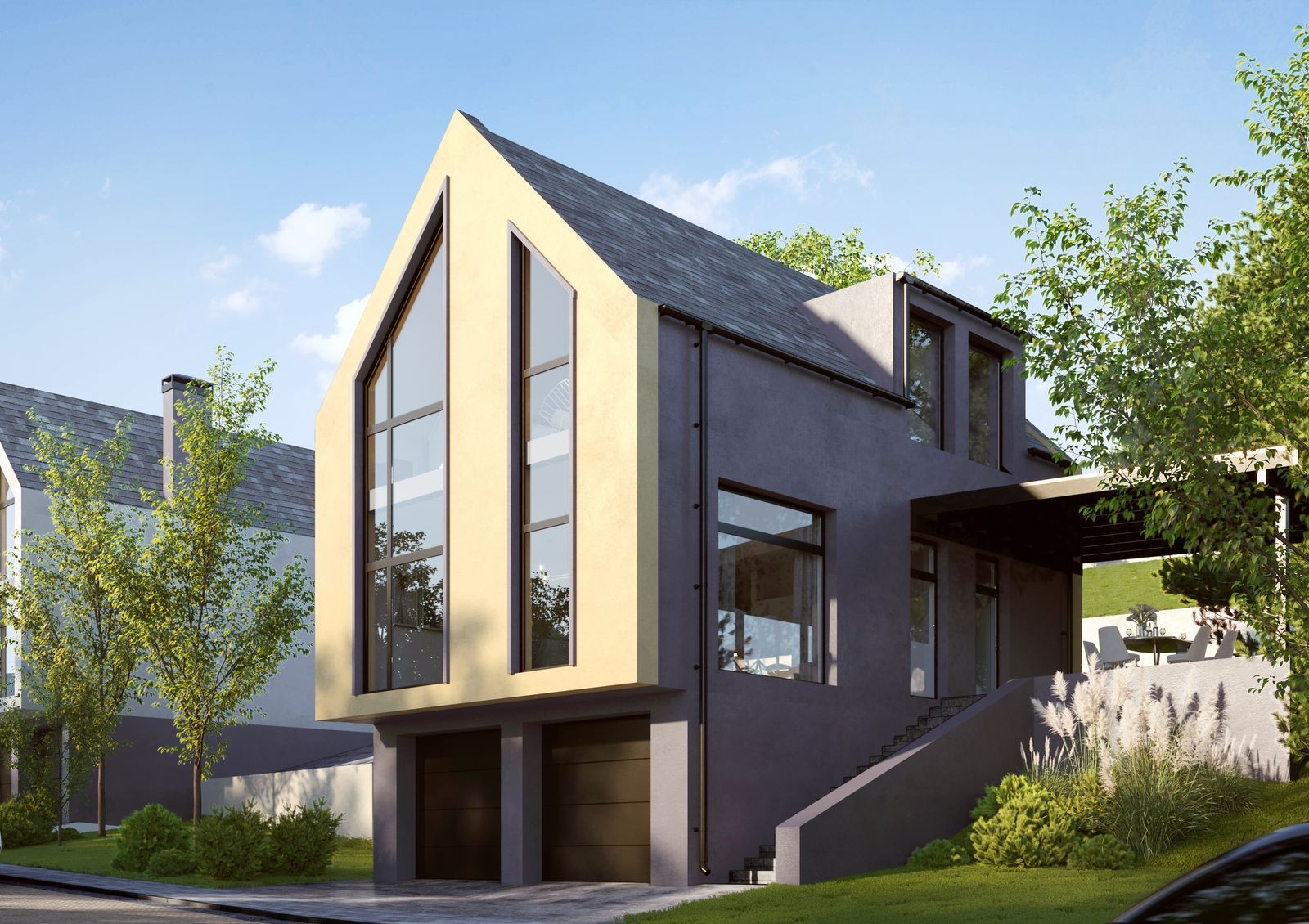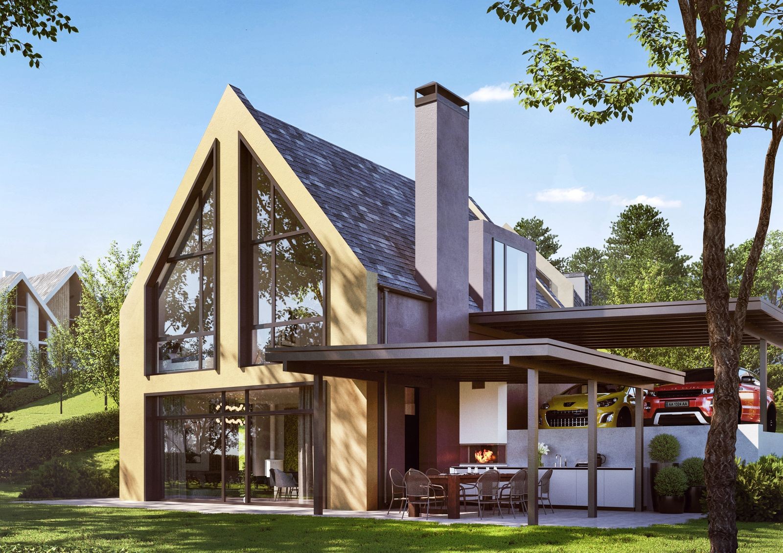 дизайнерская архитектура домов с панорамными окнами, минималистичной отделкой и лаконичными линиями фасада