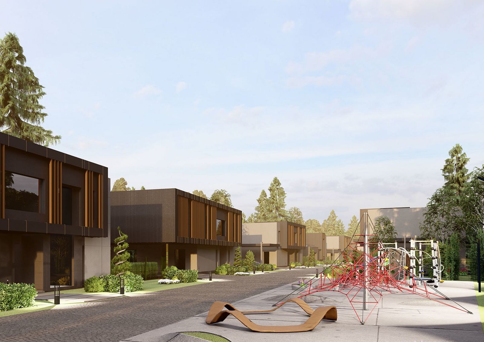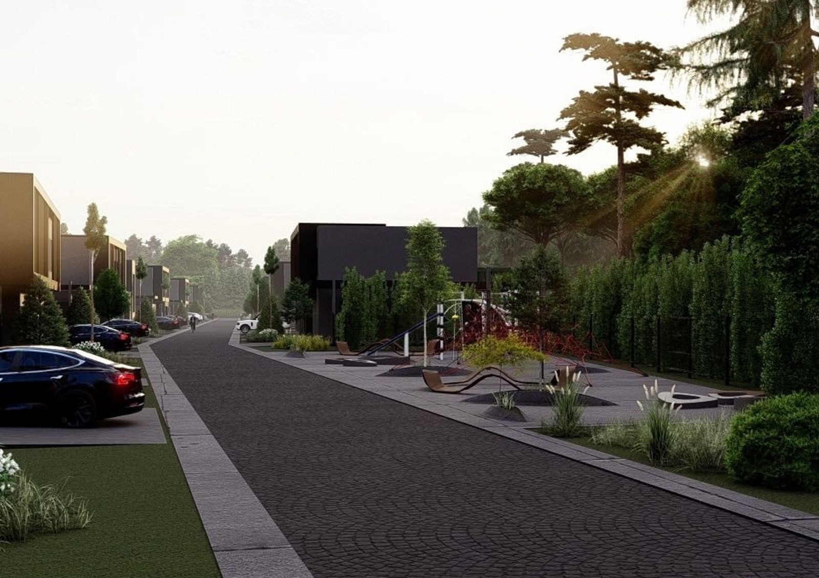 Для жильцов новой улицы доступны все объекты инфраструктуры одноименного городка. Для детей предусмотрены детский сад и начальная школа. Для игр и прогулок на свежем воздухе установлены детские площадки, футбольное и волейбольное поля, четыре теннисных корта. К вашим услугам также барбекю-зоны, а летом можно провести целый день на обустроенном пляже у озера.