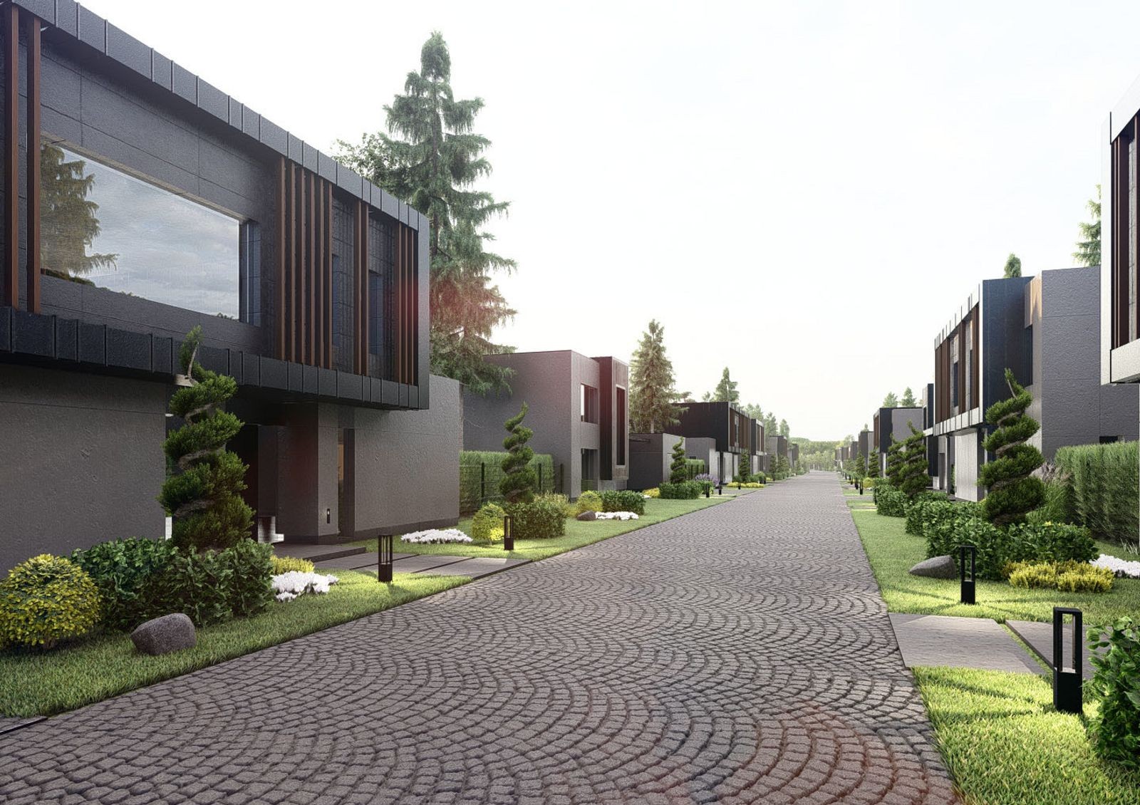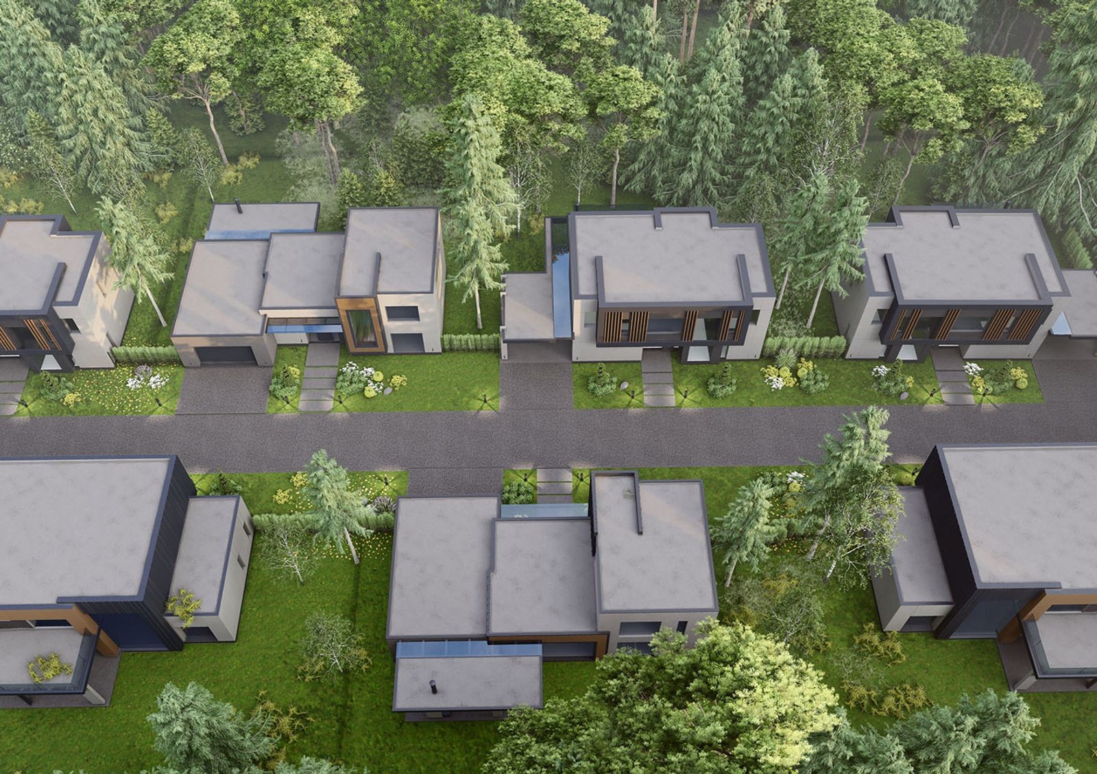 КГ «Севериновка Forest» — это новый проект, расположенный на территории уже построенного, заселенного и развивающегося городка. Комплекс строят вглубь леса, благодаря чему он и носит такое название. На закрытой территории возводят двадцать один коттедж с современной архитектурой, для которой характерны минимализм, прямые и четкие линии, кубические формы и классические цвета отделочных материалов. Придомовой участок у каждого коттеджа выполнен согласно с ландшафтным дизайном — газон, декоративные кустарники, вечернее освещение. Общая для всех территория включает в себя пешеходную и автомобильную дороги, а также игровую зону для детей со спортивными элементами.