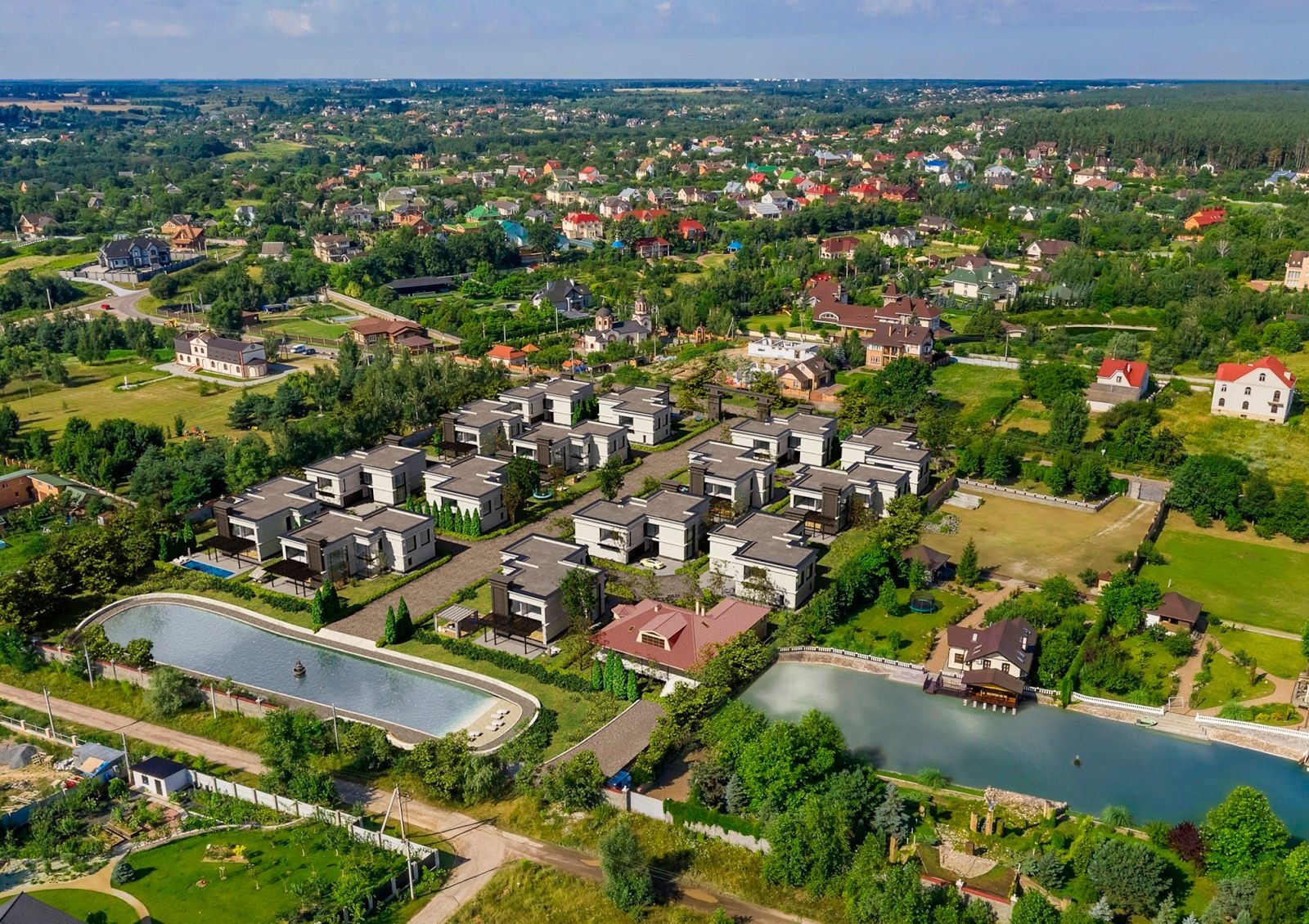 «Первый Андреевский» — коттеджный городок закрытого типа в одном из лучших пригородов Киева по показателям чистоты воздуха. Двухэтажные коттеджи с собственными земельными участками расположились в заповедной зоне в 20 минутах на авто от Киева по Одесской трассе. Здесь нет ни промышленных предприятий, ни транспортных потоков, только чистый воздух, тишина и пение птиц. Рядом с каждым домом открытая терраса для отдыха на свежем воздухе и гараж на два автомобиля. При желании рядом с домом можно обустроить бассейн, релакс-зону и уголок для занятий спортом. В распоряжении жильцов благоустроенная общая территория с зонами отдыха — прогулочной, прудом с фонтаном и тремя гектарами парковой зоны.