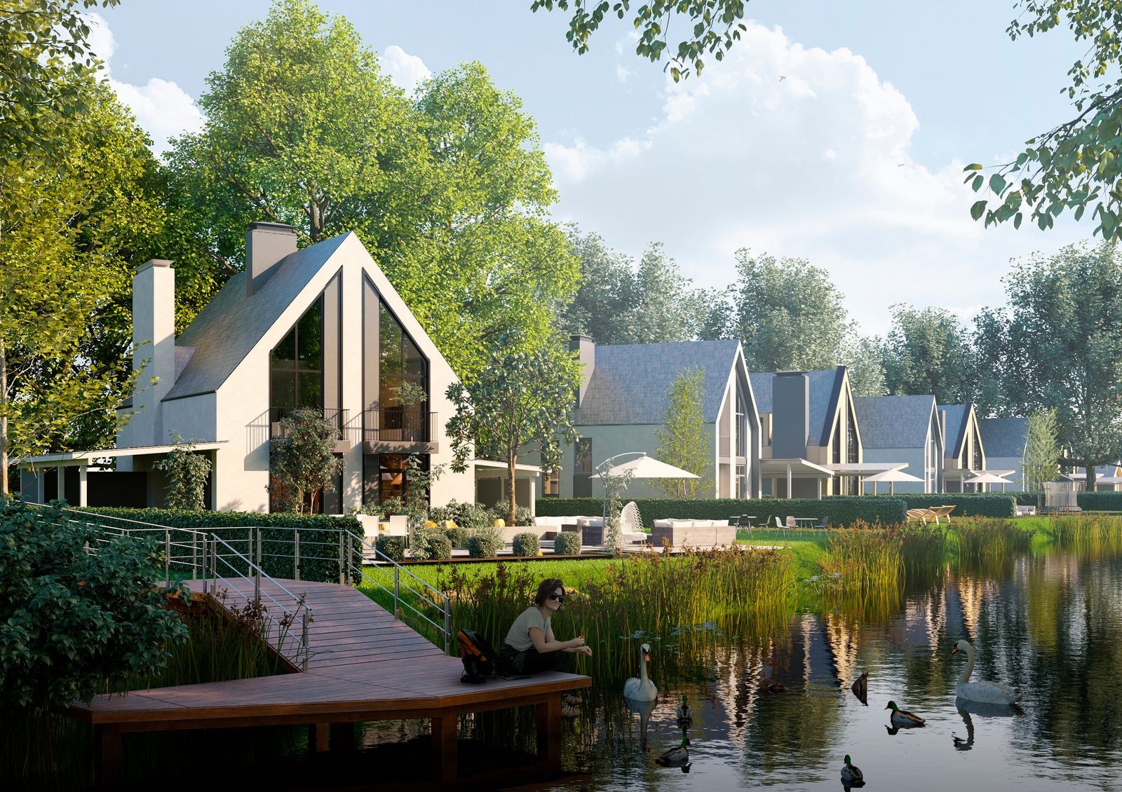 Инвесторам предлагаются коттеджи с 8 различными планировками, отличающихся площадью, формой, внешним видом и наличием террас и балконов. Для обустройства собственной лаунж-зоны с бассейном к каждому дому прилагается земельный участок от 5 до 11 соток.