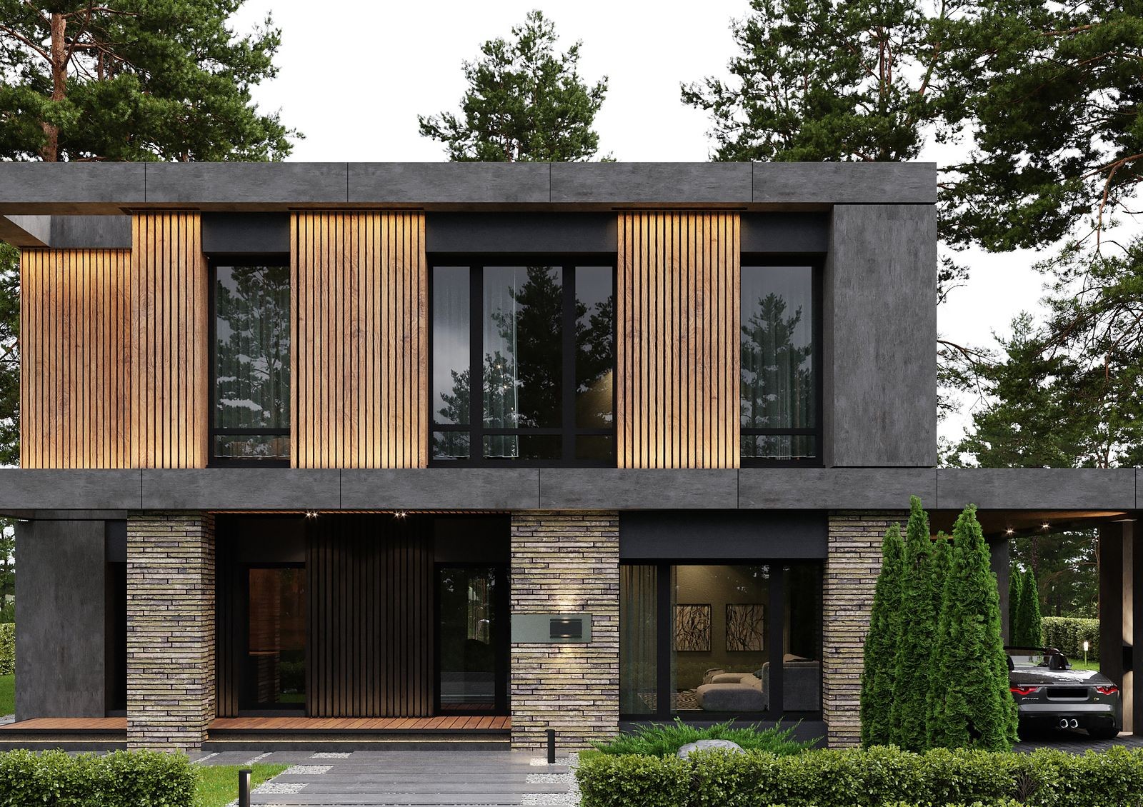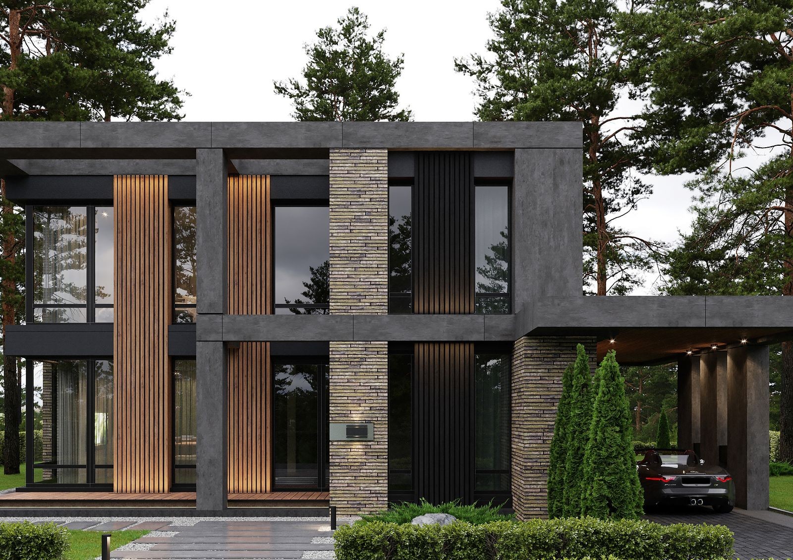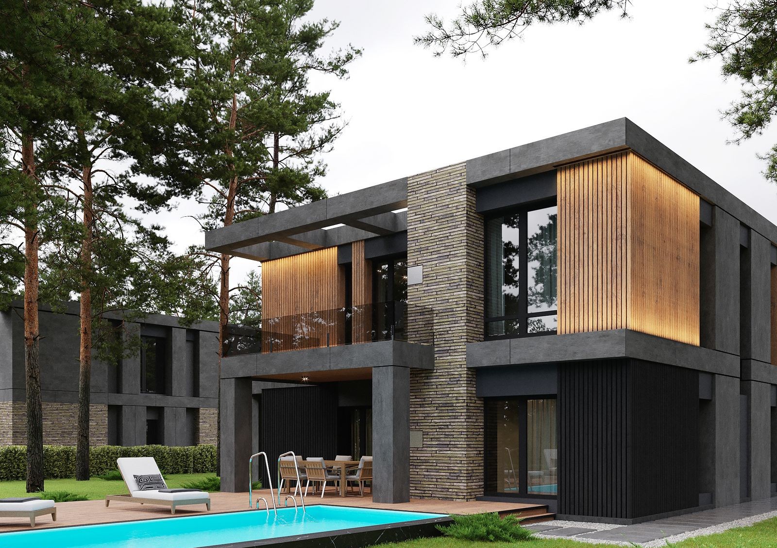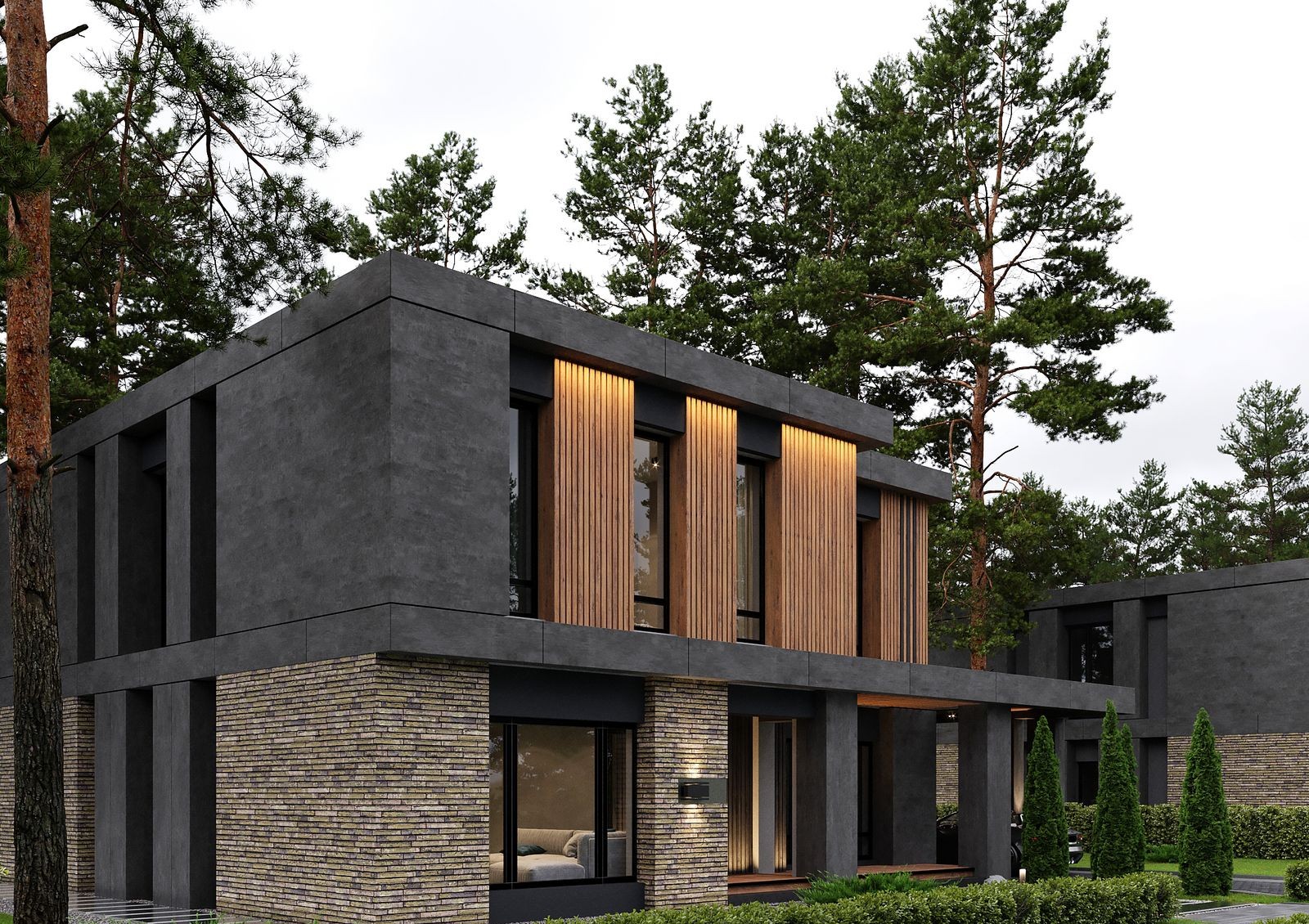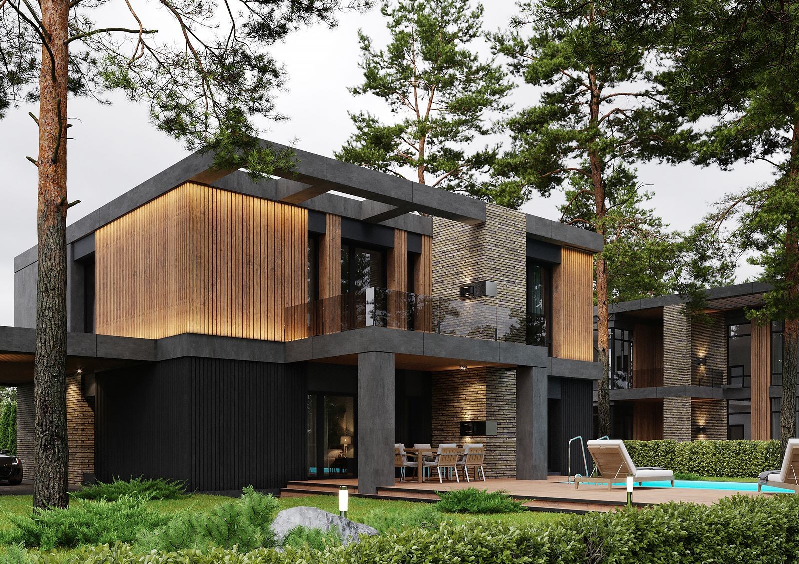Проект «9 ЭЛЕМЕНТОВ» представляет собой большой коттеджный городок на 98 участков с автономной инфраструктурой и закрытой охраняемой территорией. Застройщик предлагает на выбор 5 вариантов планировок разной площади и этажности. Современная архитектура домов представлена комбинированным фасадом в темных тонах, панорамными окнами с черным профилем и прямыми лаконичными линиями.