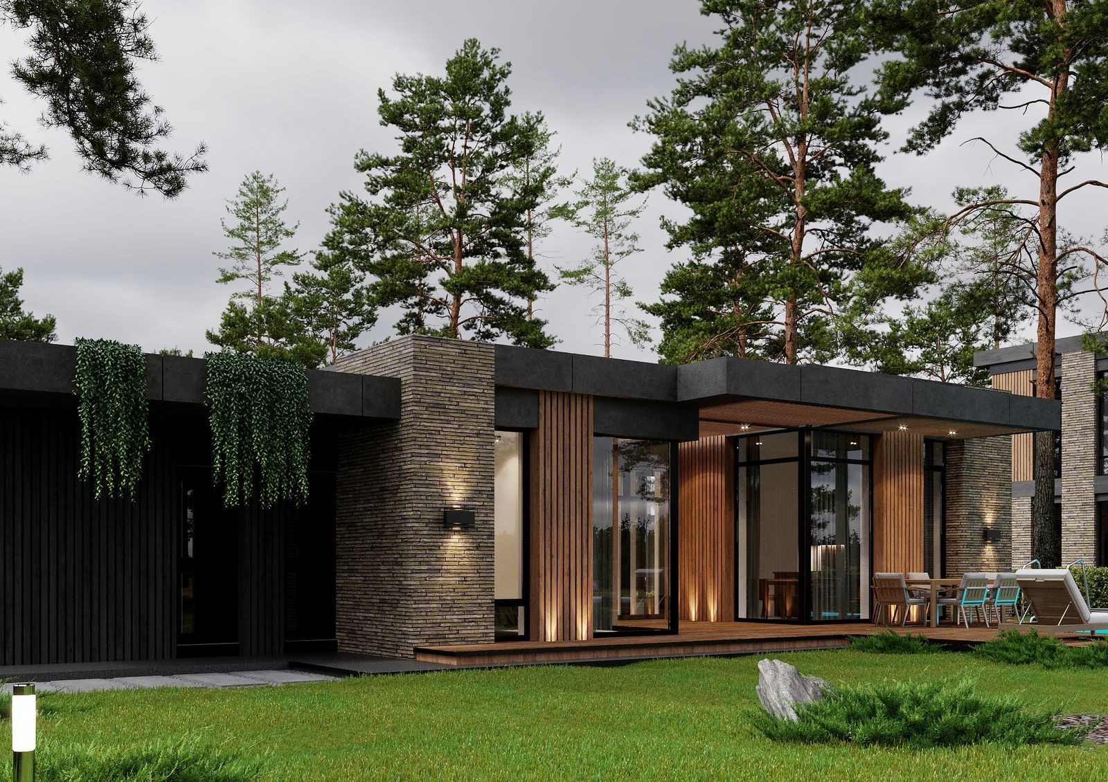 вечерняя подсветка домов и территории