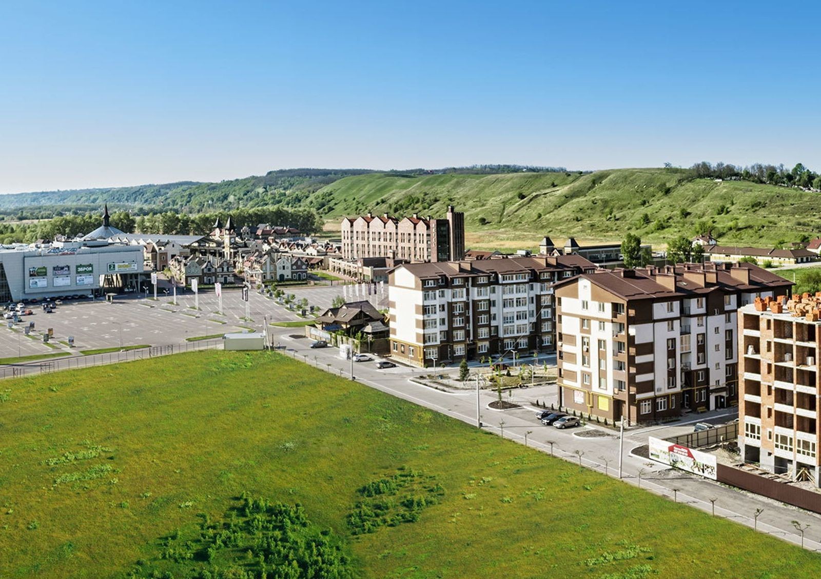Кроме качественного жилья и доступной стоимости домов, для современных покупателей большое значение имеют вопросы инфраструктуры. Стоит отметить, что Новая Конча-Заспа – коттеджный городок, который способен подарить комфорт во всех сферах. Комплекс имеет собственную закрытую территорию, доступ на которую осуществляется по специальным пропускам. Большое количество зелени, ландшафтный дизайн, детские и спортивные площадки, места для парковки авто – все эти преимущества получит каждый будущий житель коттеджного городка в с. Ходосовка. Развитие инфраструктуры также впечатляет. Рядом с комплексом работает ТЦ Мегамаркет, есть аутлет-городок Мануфактура, открыты кинотеатр, фитнес-центр, аптека, банк, кафе и ресторан японской кухни, салон красоты. В 4 км в сторону Обухова есть оборудованный пляж на берегу Голубого озера.