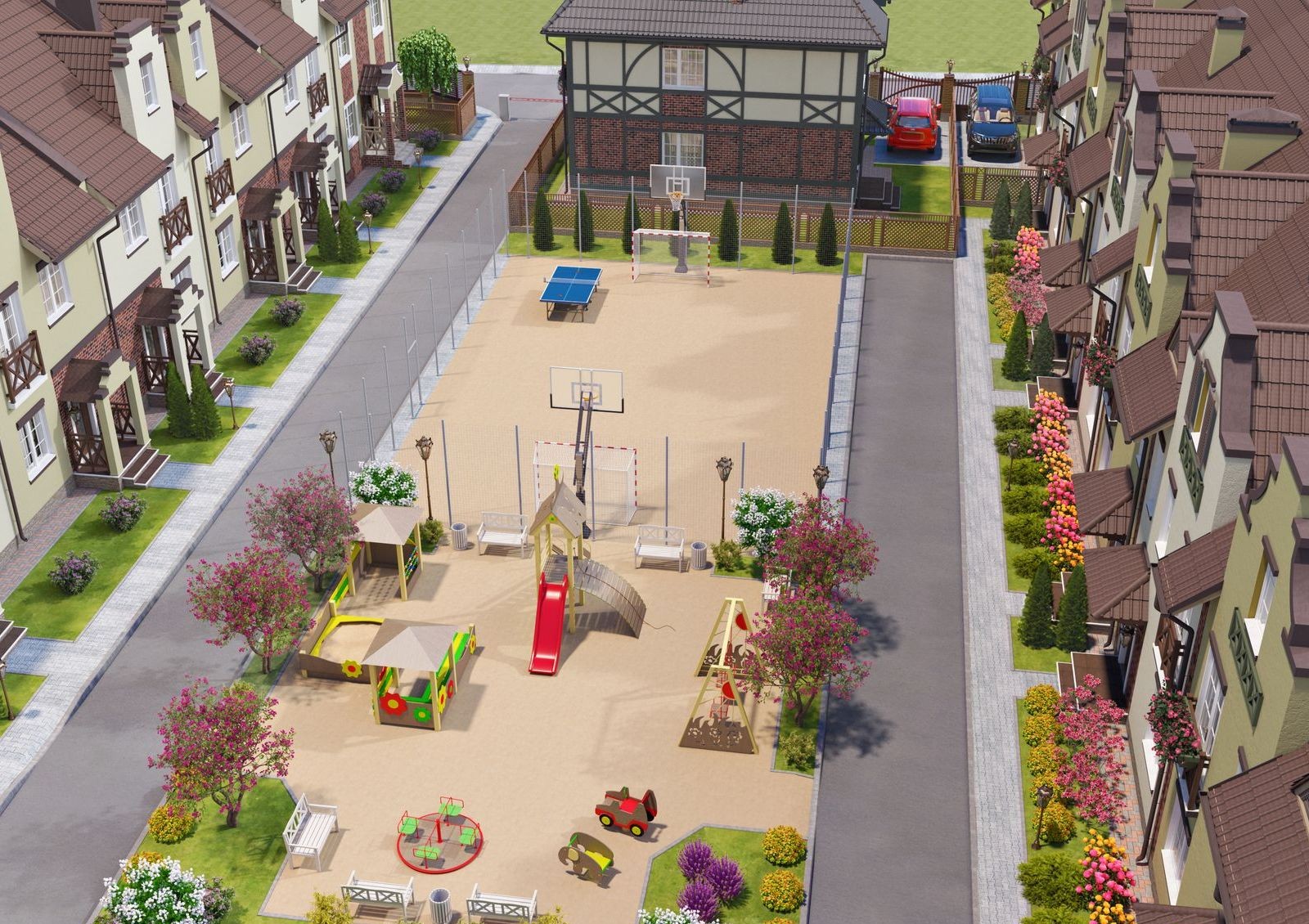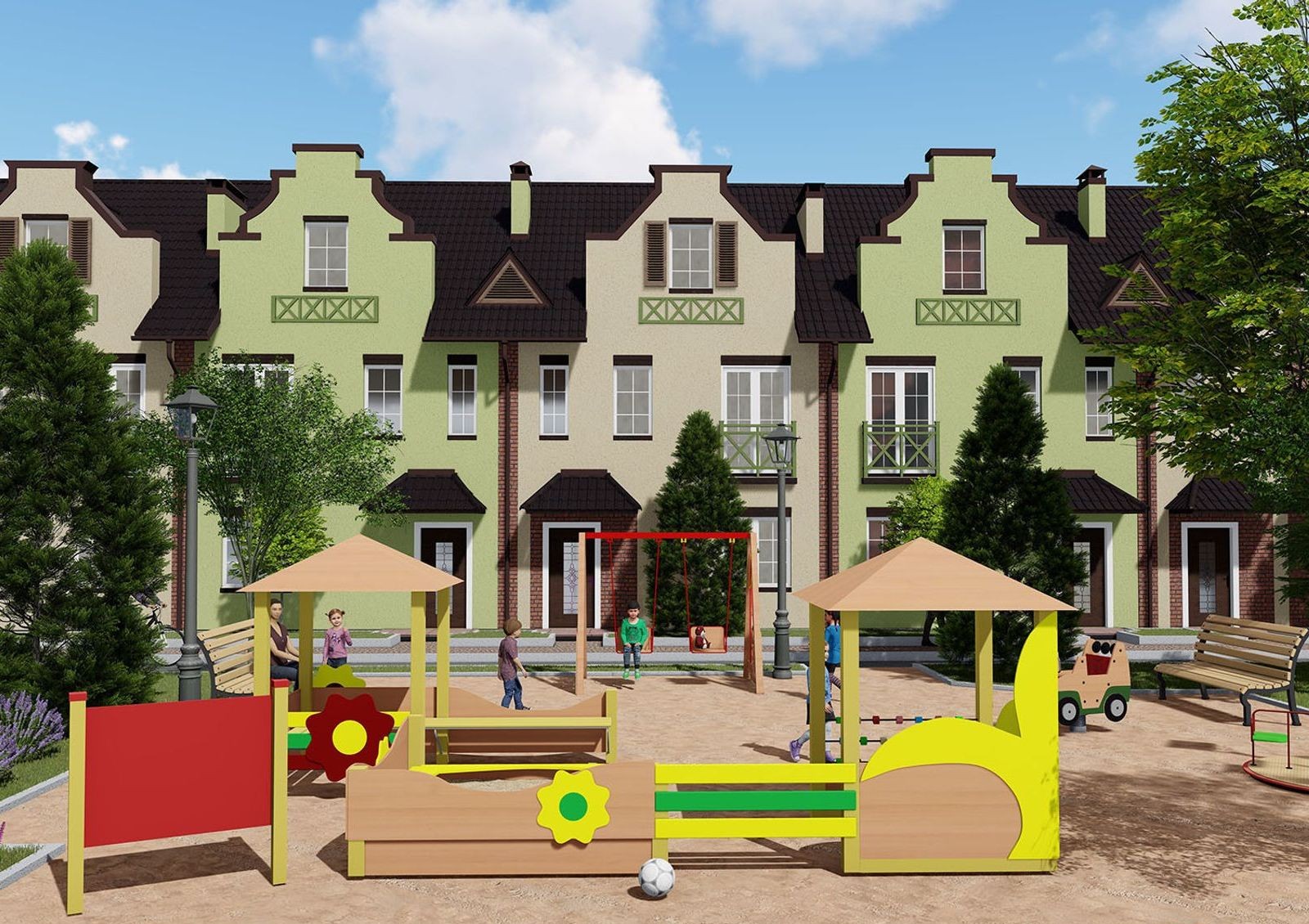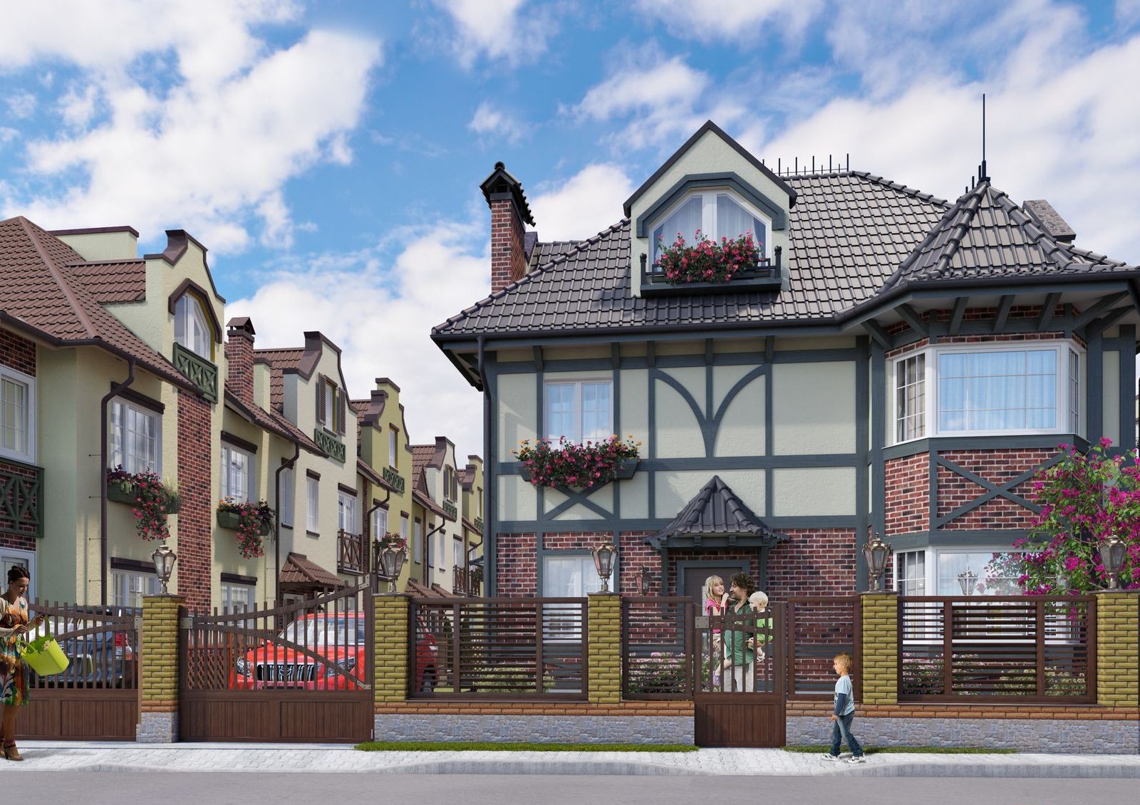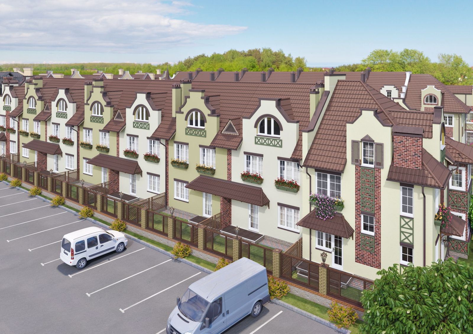 Коттеджный городок под Киевом объединят 77 современных коттеджей и таунхаусов, построенных из газобетона и красного кирпича с использованием новейших технологий. Каждый дом имеет два этажа и мансарду, которую можно использовать в качестве дополнительной площади.