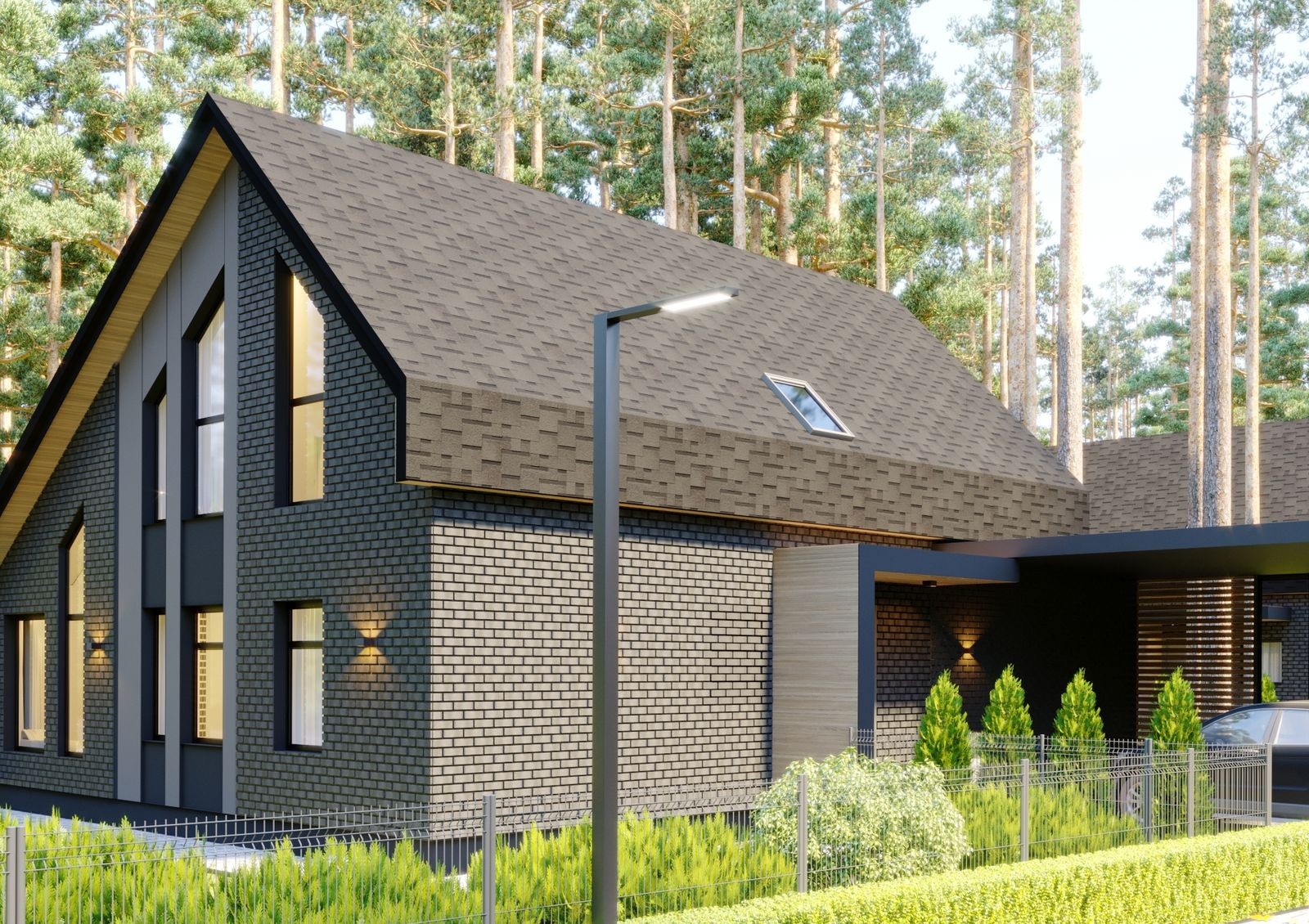 Архитектура и стиль домов разрабатывались так, чтобы максимально естественно вписать городок в картину природы и быть с ней в гармонии, при этом важно было спроектировать дома функциональными и практичными. Главной особенностью каждого коттеджа является гостиная со вторым светом — высота потолка в ней достигает 5 м, имитируя шале. Дополнительный уют по вечерам вам обеспечит камин — застройщик предусмотрел место под него в каждом доме.