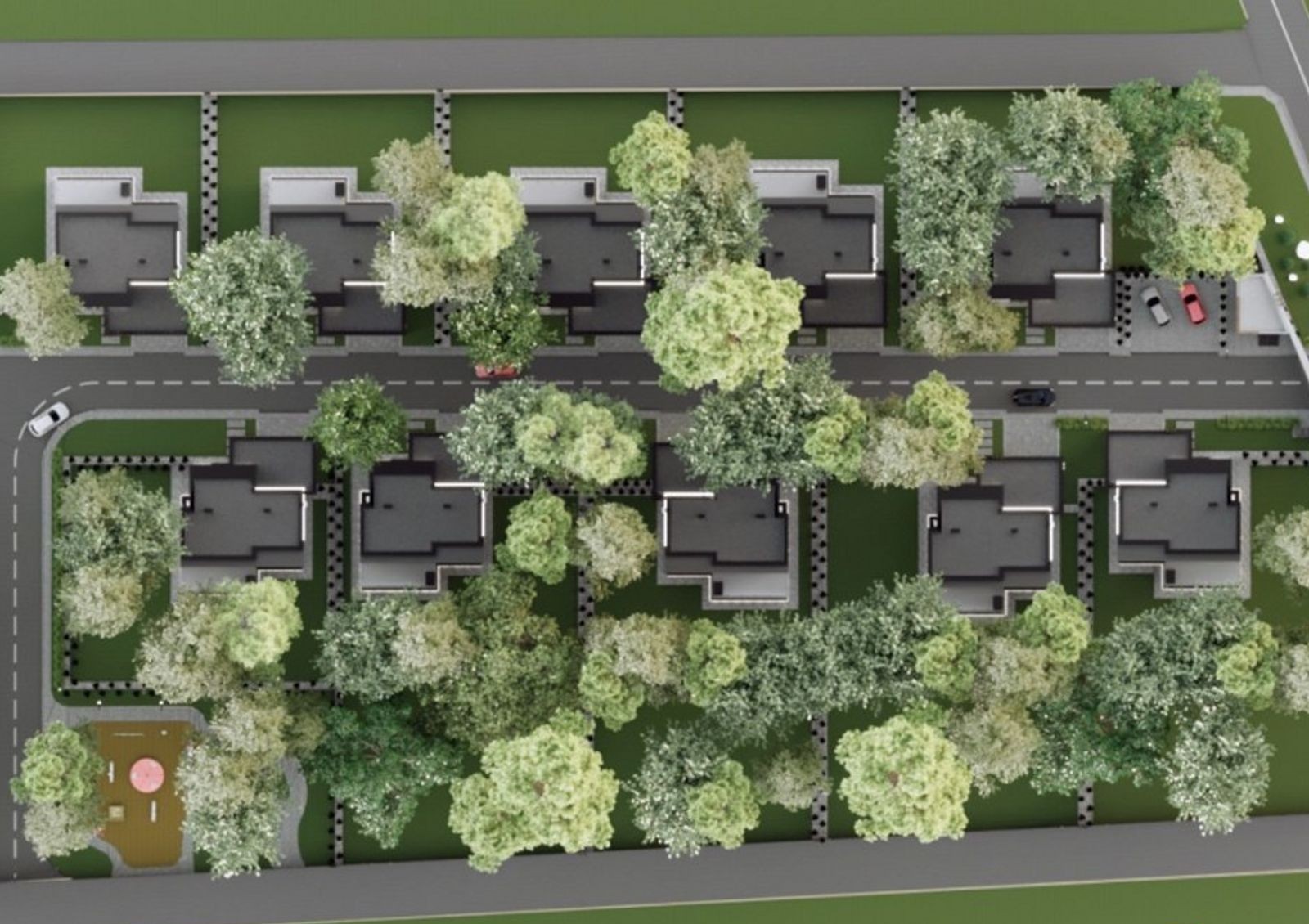 по периметру городка двухсторонний жалюзийный забор из словацкого профиля