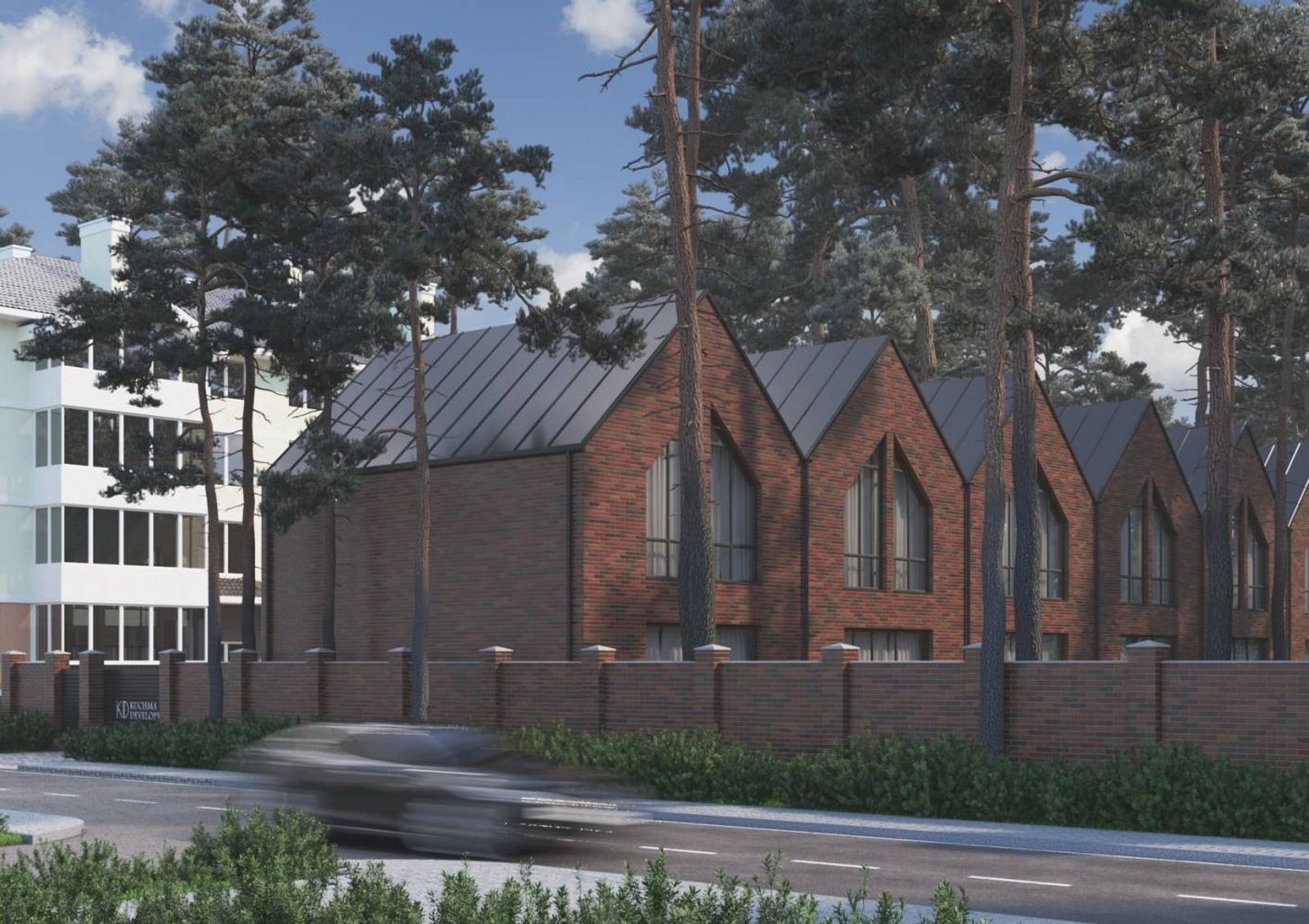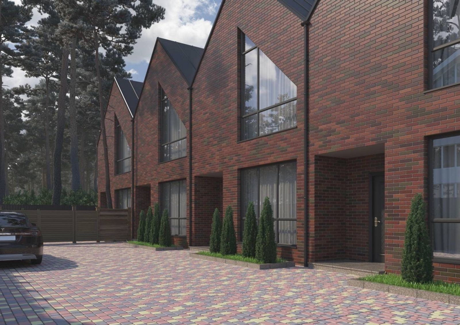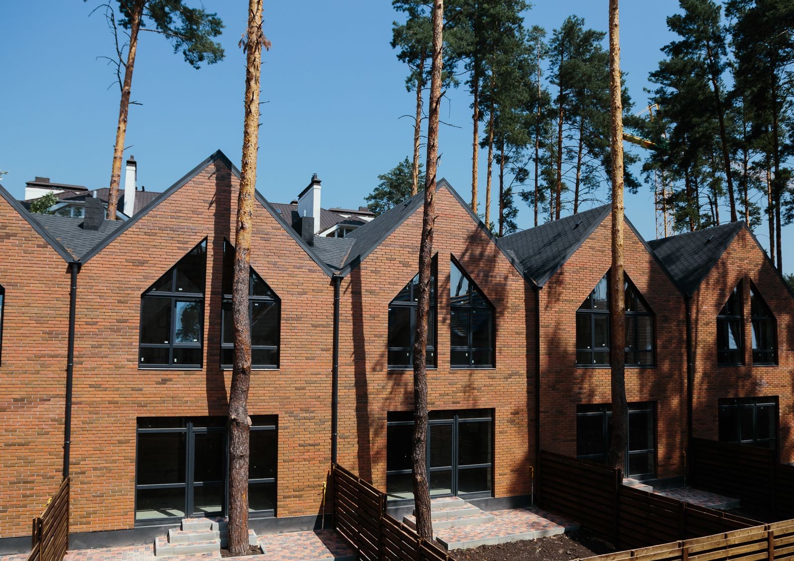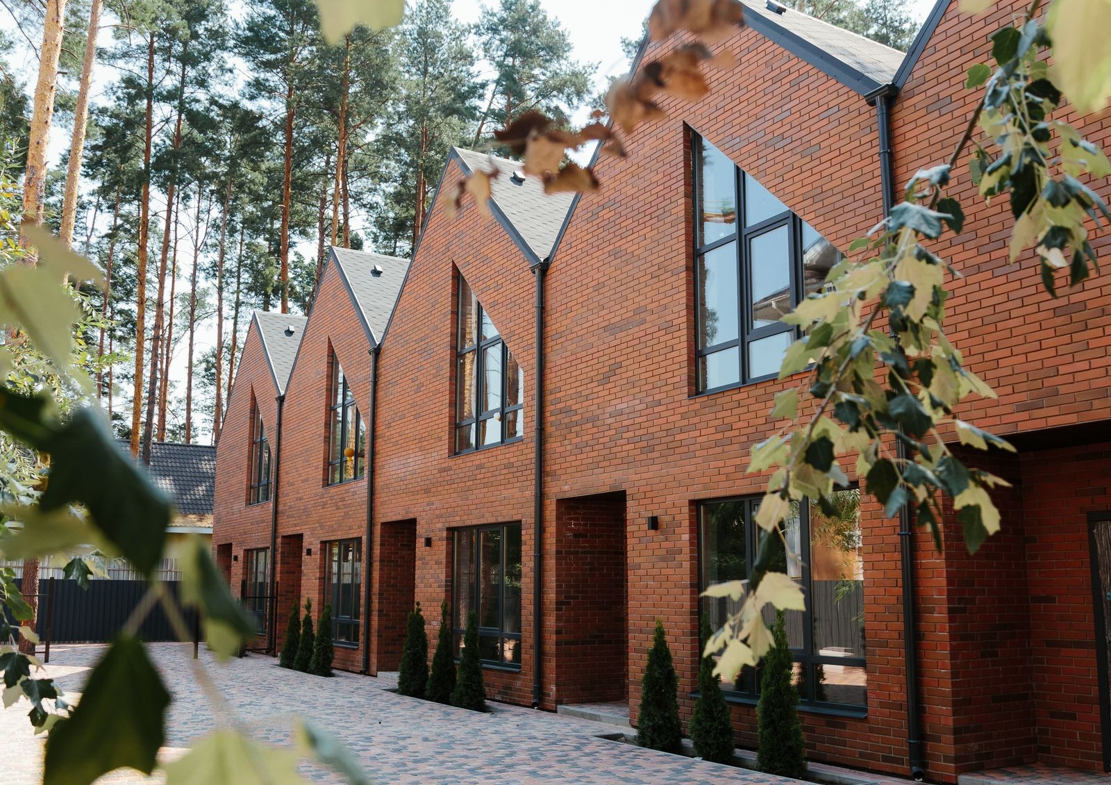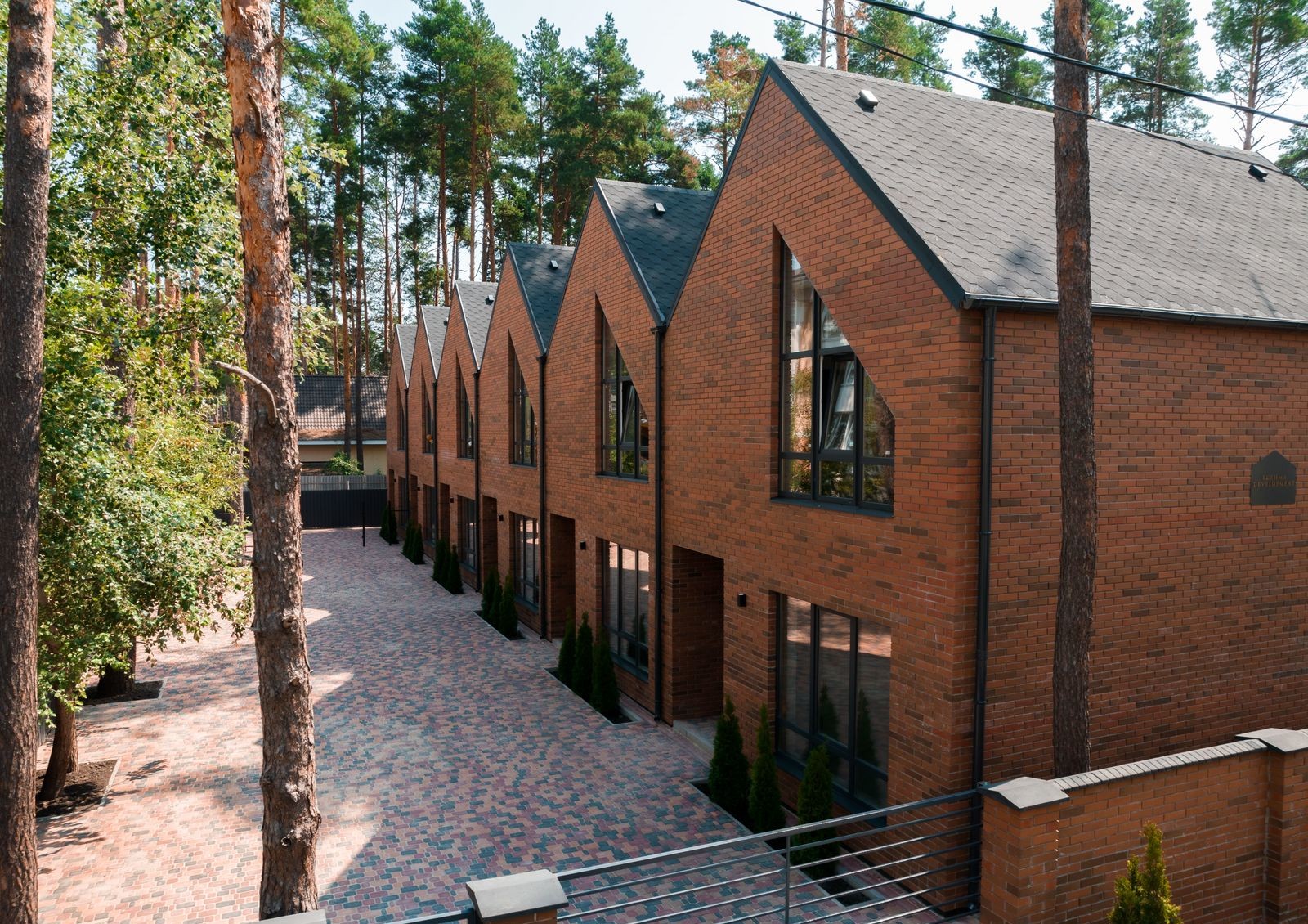 Positano Residence — это коттеджный городок закрытого типа в самом сердце Ирпеня, недалеко от нескольких зеленых зон города, среди которых и Центральный парк с его ухоженными аллеями, велодорожками и фонтанами среди сосен. На фоне соседних новостроек двухэтажные таунхаусы в английском стиле выделяются отделанными клинкерным кирпичом фасадами, угловатыми крышами и огромными окнами во всю высоту этажа. Перед каждым коттеджем — вымощенная брусчаткой площадка для парковки автомобиля, с обратной стороны дома — зеленая лужайка с террасой для семейных ужинов на свежем воздухе и игр детей.