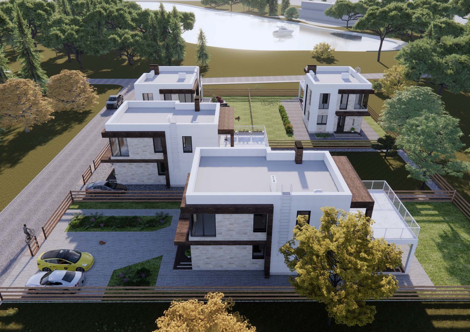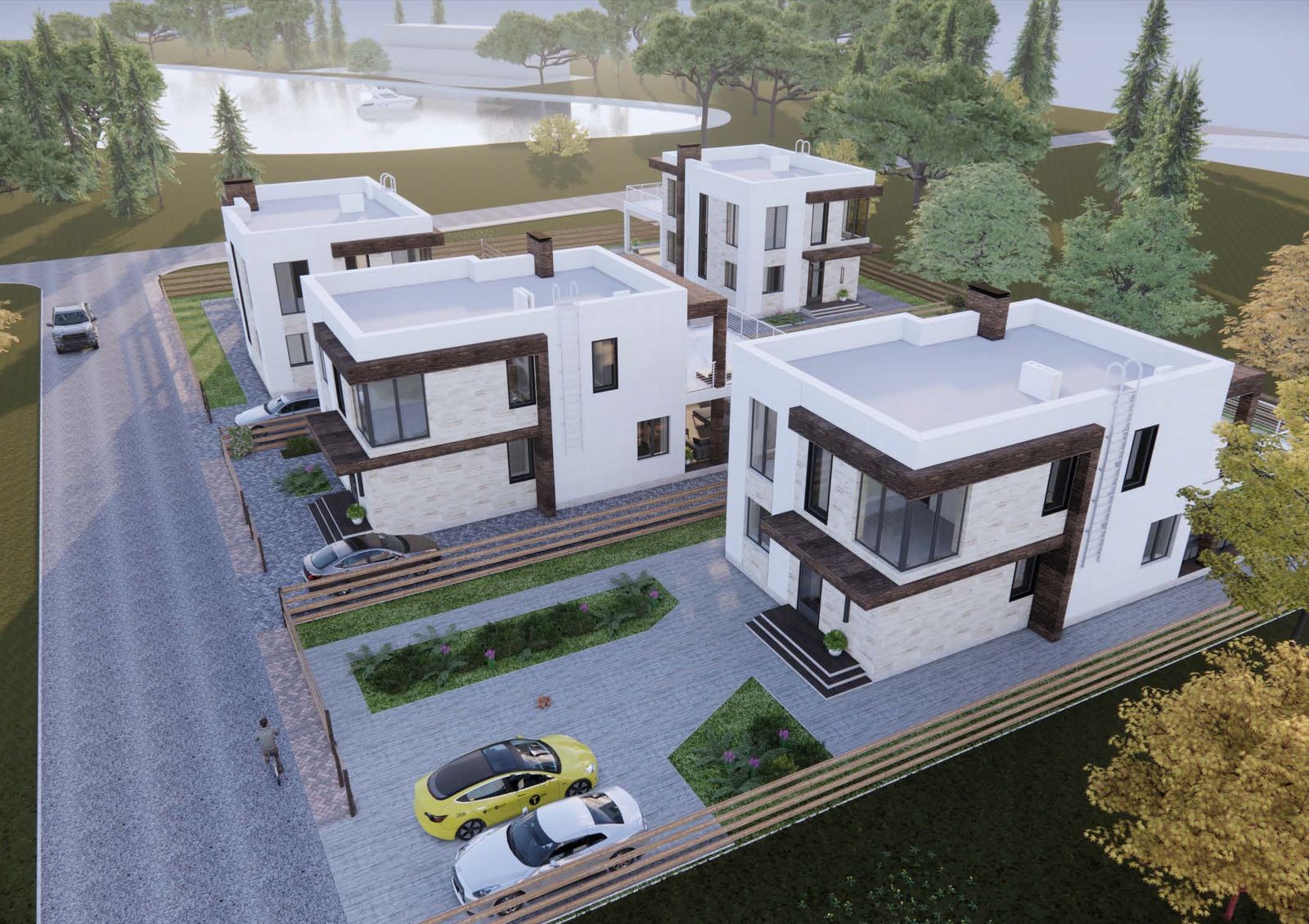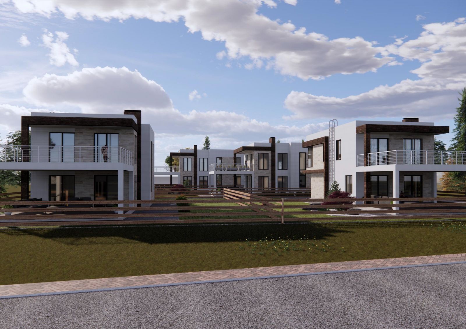по периметру городка и между участками заборы высотой 1,2 метра, что позволит без преград любоваться окружающими пейзажами