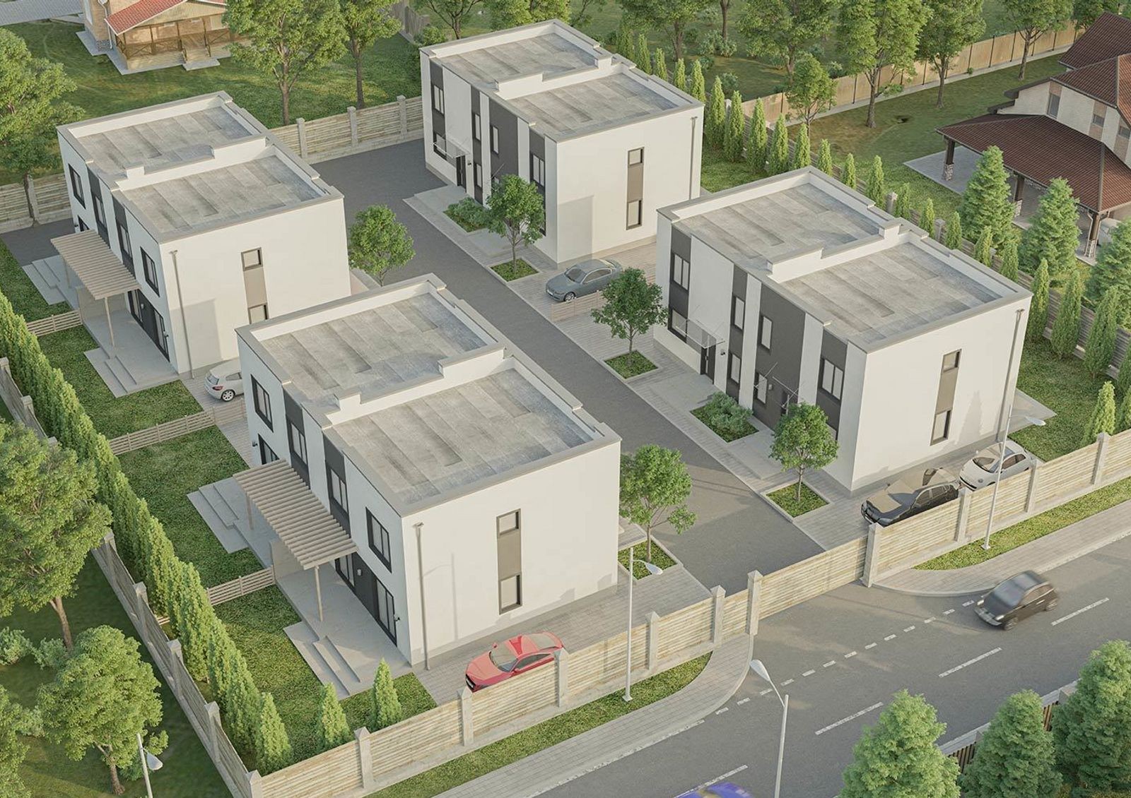 огороженная закрытая территория с автопроездами и подъездами к каждому дому, въезд на территорию оборудован воротами