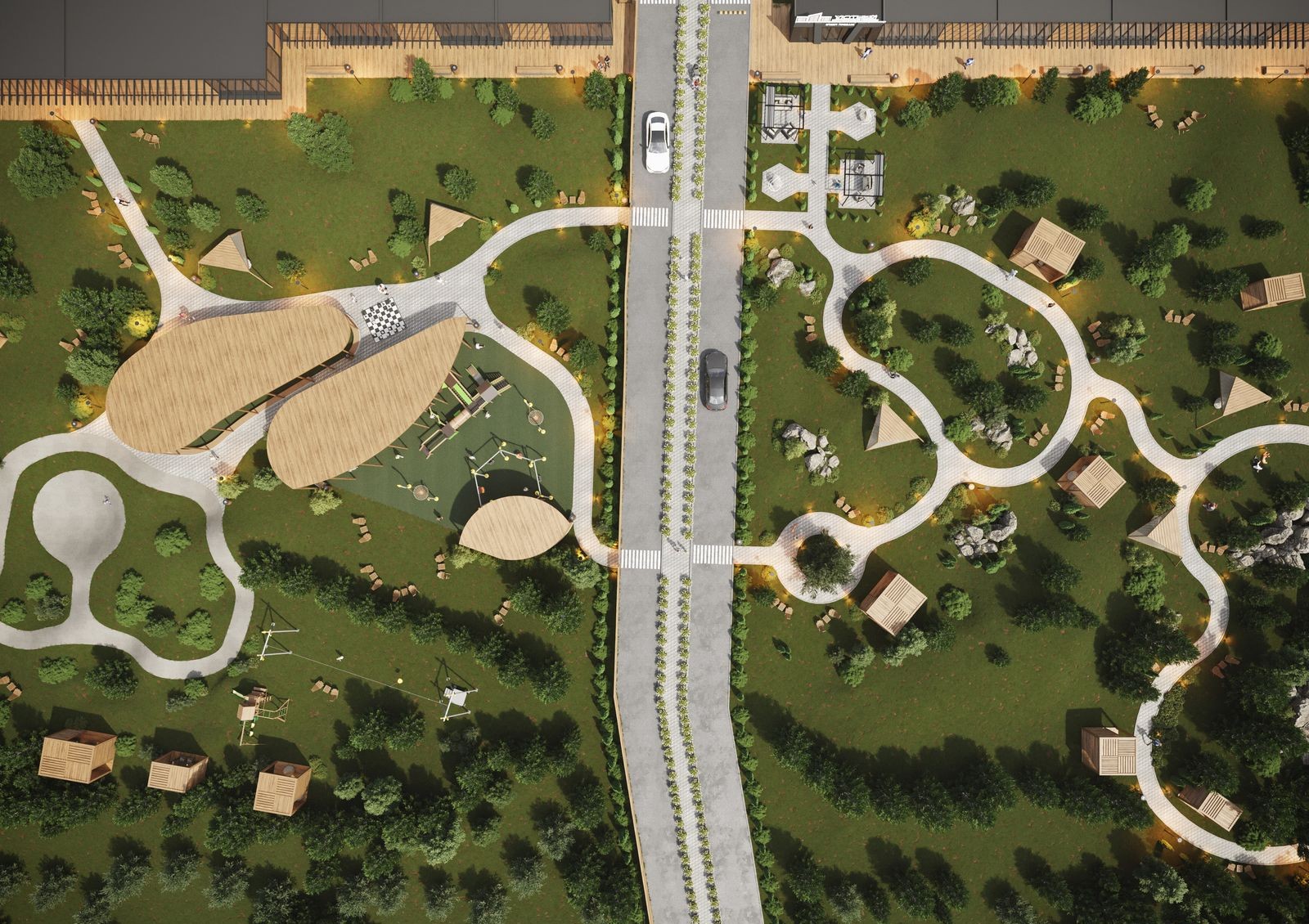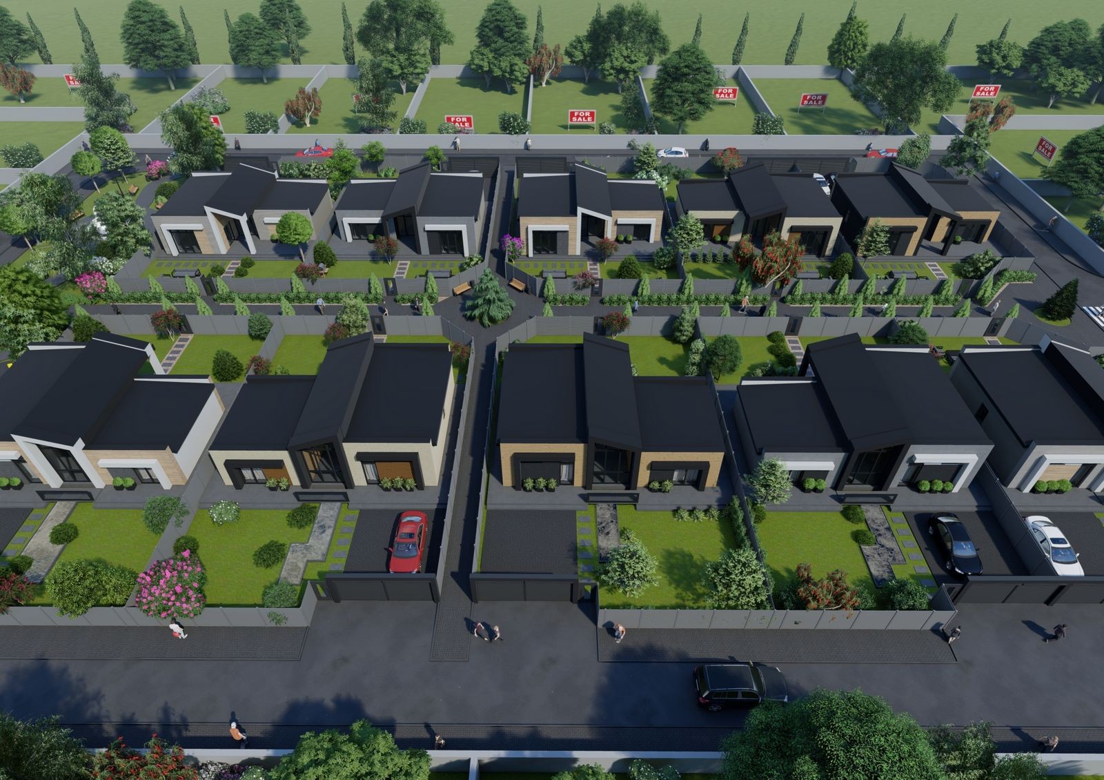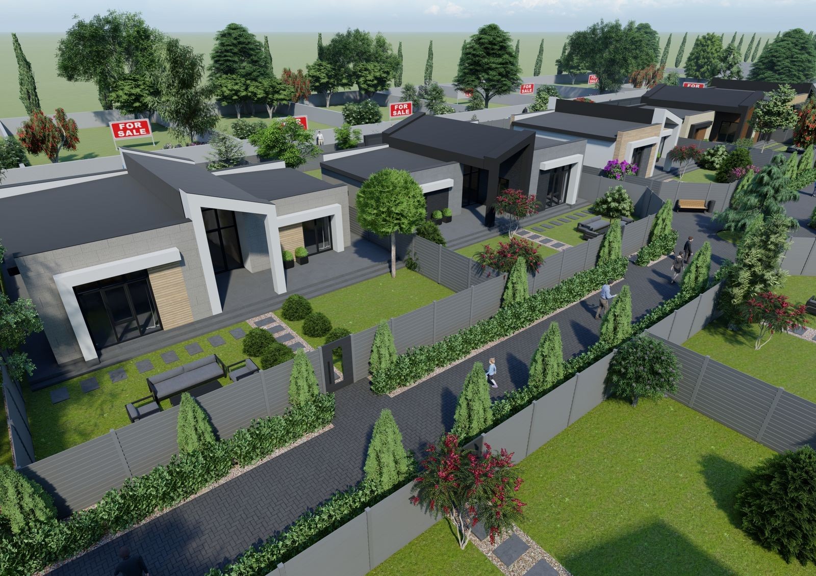 участки с индивидуальными подъездами, каждый участок огорожен и облагорожен с использованием ландшафтного дизайна