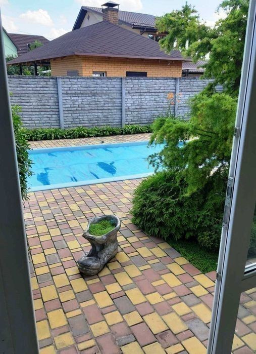 Сдам в долгосрочную аренду современный капитальный дом с бассейном в Киеве, Дарницкий район, Осокорки, ул. Садовая, 4км от метро Славутич. Дом двухэтажный, площадью 180м2. Первый этаж - кухня-гостиная, спальня, санузел, холл для настольного тенниса. На втором этаже - два спальни и выход на террасу 50м2. Беседка 15м2 для приема гостей, бассейн, гараж на 1 машину + 2 открытых паркоместа. Современная мебель и техника, полы с подогревом, отопление - газовый котел. Скважина, бойлер, септик. Подключена система "умный дом". Стоимость аренды 850$ + коммунальные расходы по счетчикам.