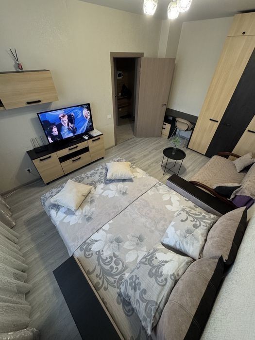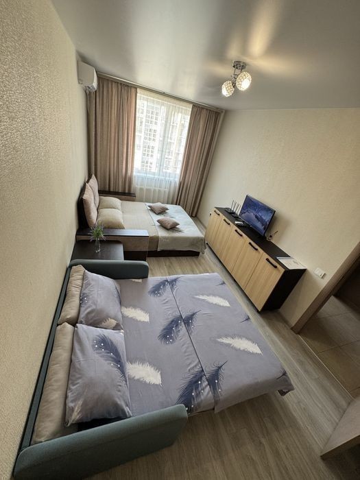 Сдам посуточно новую квартиру с современным ремонтом, полностью оборудована всей необходимой мебелью и бытовой техникой. Рядом Аквапарк Этаж 4/5 Квартира предназначена для комфортного проживания 2-х гостей 800 грн сутки (для пары) (количество дней и гостей, на выходные и праздники уточняйте) Возможно проживание 3- 4 взрослых - цена оговаривается Отопление и горячая вода от АГВ В квартире есть: ТВ (смарт ТВ), кондиционер, вытяжка, стиральная машина, фен, утюг, электрочайник. Интернет Wi-Fi. (работает при отключении света) + на время отключения света в квартире установлены аккумуляторные лампочки. Посуда, постельное белье, полотенца, тапочки, шампунь, жидкое мыло. Есть сахар, соль, черный перец. Заселение с 14.00 - до 22:00 (позже по согласованию) Выселение с 5:00 до 12:00. Если квартира свободна - заезд может быть по согласованному времени Бронь 300 грн (входит в стоимость проживания) При заселении наличие документов обязательно паспорт возраст 18+ Залог за квартиру составляет 1000 грн. (при выселении при условии, что ничего не испорчено залог возвращается. ) Вечеринки, празднования запрещены! Курение только на балконе. Возможна скидка при проживании от 10 дней и более!
