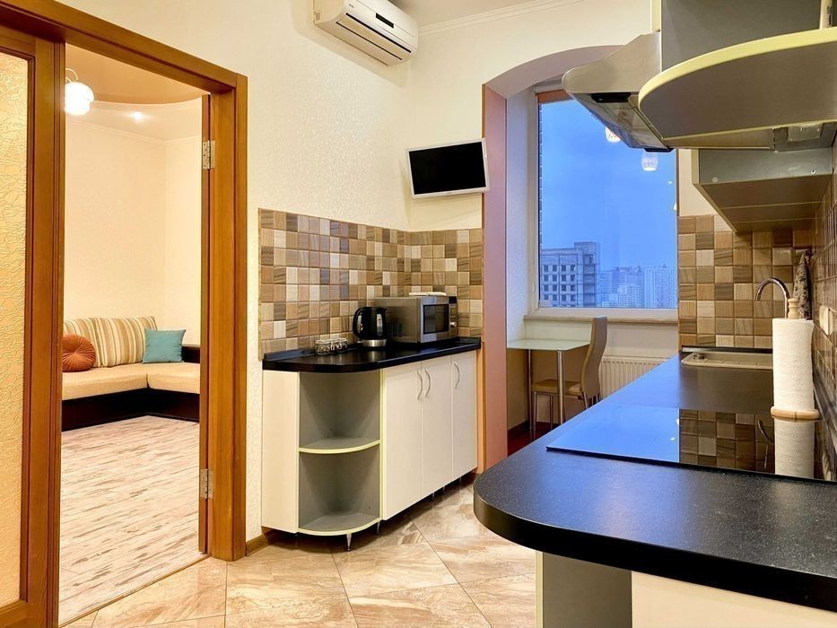 * Під час відключень електрики Є ВОДА та працює ЛІФТ завдяки генератору * WI-FI інтернет ПРАЦЮЄ навіть без світла від Вашого павербанку Затишна квартира з чудовим видом на обидва береги Дніпра, підготовлена з великою увагою та турботою для Вашого комфортного відпочинку, облаштована та оснащена усім необхідним, що потрібно для проживання: + Велика спальня зі зручним ліжком та зоною вітальні, телевізором та кондиціонером + Простора кухня в якій можна приготувати найсмачніші сніданки та насолоджуватися ними за столиком на балконі, споглядаючи як просинається Київ + Сучасний будинок бізнес-класу розташований в 5 хв від метро Лівобережна, в 2 хв від Міжнародного виставкового Центру (МВЦ) та супермаркету NOVUS, 15-20 хв до центру Для Вашого комфортного перебування в квартирі є: ️ Повністю обладнана кухня: посуд та прибори для приготування та приймання їжі, чайник, мікрохвильовка, холодильник варильна поверхня та мобільна духовка, спеції ️ Завжди смачний чай і запашна кава : -) Зручне двоспальне ліжко з ортопедичним матрацом та двоспальний розкладний диван Свіжа постільна білизна та рушники, потужний фен та гель+шампунь Пральна машина, праска, легка та велика прасувальна дошка 2 Телевізори: в кімнаті - зі Smart-TV приставкою та великою кількістю ТВ програм, фільмів, серіалів на кухні - Смарт-телевізор на кронштейні ️ 2 Кондиціонери: в кімнаті та на кухні ️ Прямо в будинку - ресторани Flagman, True Price та фітнес-центр Спорт Ленд, поряд кафе і аптека ️ У пішій доступності бізнес і торговий центр Комод, Нова і метро Лівобережна. ️ Приємні місця для відпочинку - Театр драми та комедії, кінотеатр Мультіплекс, Океанаріум Морська казка ️ А щоб відпочити на свіжому повітрі Ви можете піти на облаштований Пляж на Микільсько-Слобідській та споглядати Дніпро. Ціна вказана в об'яві - від 2х діб проживання. Надаємо документи для тих, хто у відрядженні. = Відчуйте себе як вдома. можливо краще : -) = З радістю чекаємо на Вас! -)