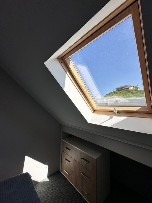 здаю нову квартиру в історичному куточку міста з видом на замок по добово, або на довготривалий термін. З гарним сучасним ремонтом, в приватному секторі. Комфортні умови для проживання. зручне двоспальне ліжко, комод для зберігання речей, панорамне вікно з видом на замок Пральна машина, сушильна машина Кухня повністю оснащенна для приготування їжі, електро плита, холодильник, мікрохвильовка, газова плита, повноціний набір посуди, фен, в нас завжди тепло, wi-fi, балкон-тераса, паркінг з відео наглядом та комфортна локація не далеко від центра міста, з прекрасним краєвидом на замок «Паланок» В номері не можна палити, для цього в нас є тераса. для бронювання відразу звертайтесь за вказаним номером