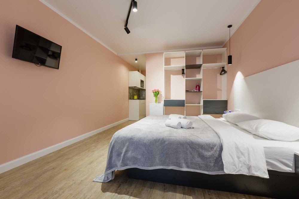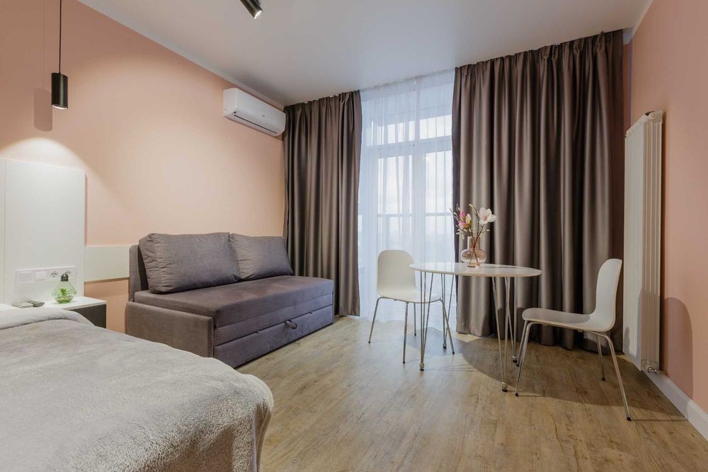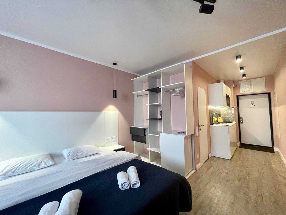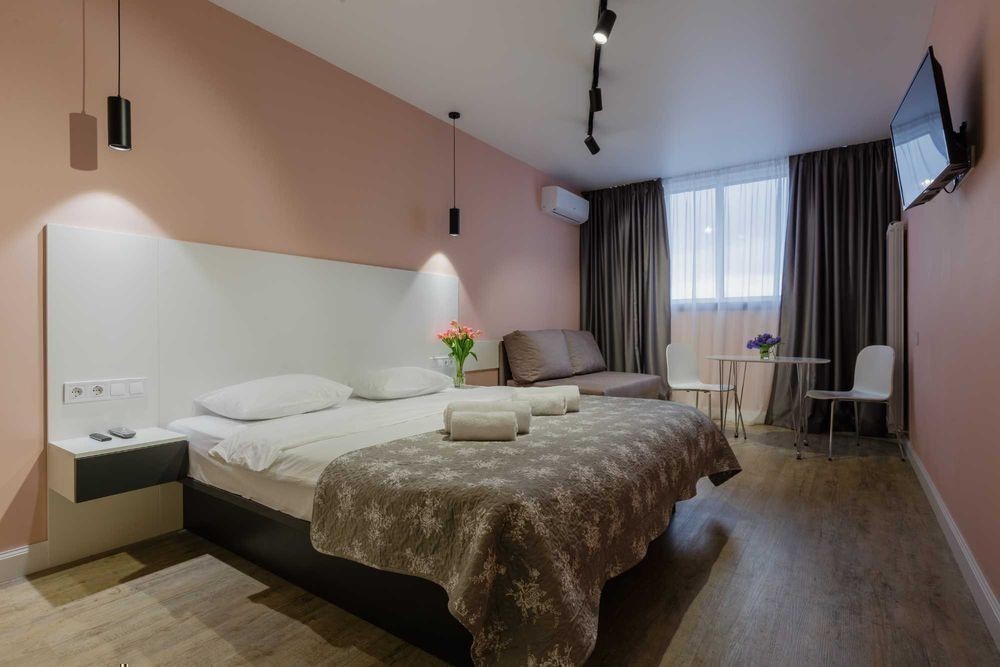 Апартаменты расположены в Киева по пр. Победы 5В в ЖК Viktory, всего в 15ми минутах ходьбы от м. Вокзальная. В пешей доступности находятся: супермаркет, кафе, рестораны, пекарни, разнообразные магазины, а также отделение «Нова Пошта». Вблизи апартаментов, есть интересные места для посещения: ТЦ Универмаг Украина, Владимирский Кафедральный Собор, Парк имени Тараса Шевченко, Золотые Ворота. Квартира светлая со свежим ремонтом, оформлена в персикових и белых тонах. Пространство удачно распределено на зоны кухни и отдыха. В зоне отдыха расположена необходимая мебель для комфортного отдыха: двуспальная кровать с ортопедическим матрасом, прикроватные тумбочки, диван, стол со стульями. Для приятного отдыха установлены телевизор и кондиционер. В зоне кухни размещена кухонная стенка со всем необходимым для приготовления и приема пищи. Кухонный гарнитур, выполнен в белом цвете Кухня оборудована всей нужной бытовой техникой, а именно: холодильник, плита, микроволновая печь и чайник. Санузел совмещен с душевой, внутри расположены умывальник, с зеркалом и тумбочкой, стиральная машина. Внутри всегда подготовлено чистое постельное белье, свежее полотенца и средства гигиены. Стоимость аренды квартиры в выходные дни уточняйте по номеру телефона. Бронируйте по телефону в любое время суток!