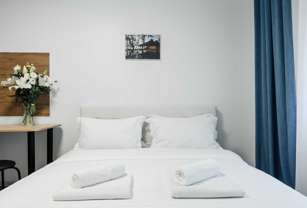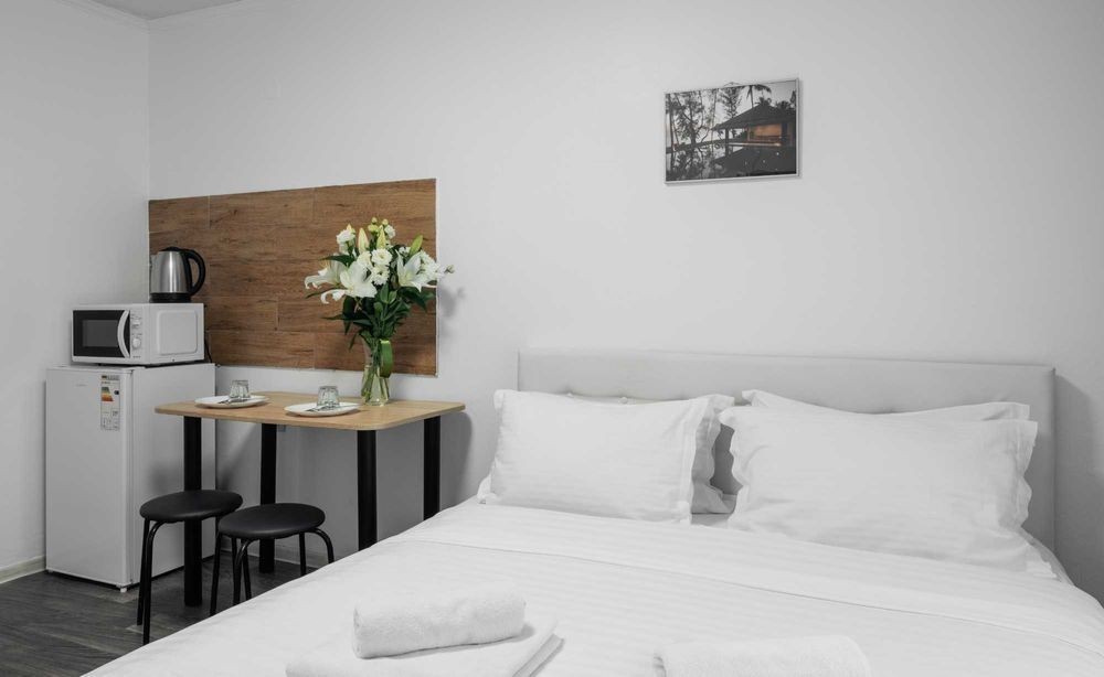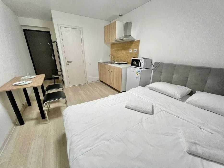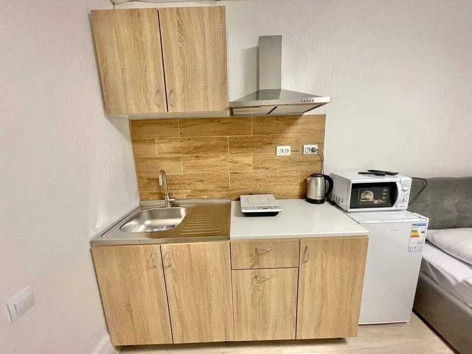 Поруч знаходяться аптеки, кав'ярні, супермаркет АТБ та відділення Нової пошти. Усередині світло і затишно, є всі необхідні меблі для Вашого комфорту, а саме: двоспальне ліжко з ортопедичним матрацом та подушками, тумба, шафа та стіл зі стільцями. Обладнана зона кухні з вбудованою раковиною та робочою поверхнею, є вся потрібна техніка: настільна індукційна плитка, чайник, мікрохвильова піч, холодильник і посуд зі столовими приладами. Є WI-FI і вся необхідна побутова техніка: кондиціонер, телевізор, встановлений бойлер із цілодобовою подачею води. Санвузол поєднаний з душем, свіжі рушники та засоби гігієни передбачені. Чиста постільна білизна надається. Вартість оренди у вихідні уточнюйте за номером телефону. Телефонуйте для швидкого бронювання!