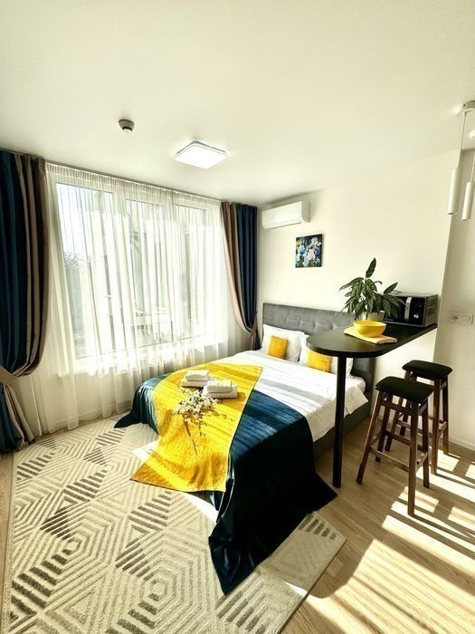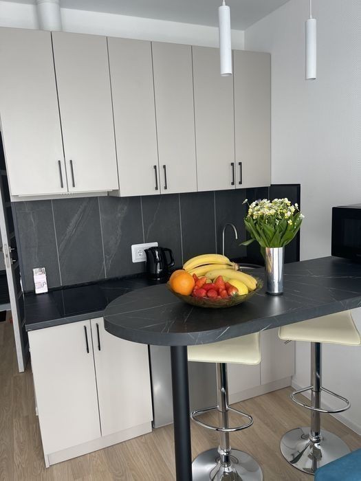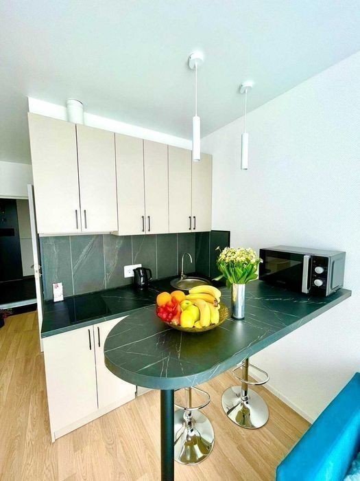 Апартаменти із видом на місто в ЖК бізнес класу Be the One за 5 хвилин пішки від метро Академмістечко та Житомирська. Зроблений новий дизайнерський ремонт у сучасному стилі повністю оснащена комфортними меблями які виготовленні під індивідуальне замовлення та технікою; - зручна кухня; -електрочайник; - мікрохвильова піч; -холодильник; -варочна поверхня; -телевізор; -праска; -фен Також є необхідний посуд. Зручне ліжко з ортопедичним матрасом та нішею для зберігання постілі, просторий санвузол з душовою кабіною, пральна машина, бойлер. В коридорі вмістка зручна шафа-купе. У дворі знаходиться ТЦ Академсіті де є все необхідне: аптеки, супермаркет VARUS, кафе : Molino і Сушия; хімчистка, магазини з сухофруктами, одяг та взуття, приват банк поруч. Зручна транспортна розв'язка. За 10км від Михайлівського Золотоверхого монастиря та 12 км від Володимирського собору. Квартира-Студія 20кв. м в сучасному будинку в якому поєднані комфорт і сучасні технології. При вході в під'їзд вас зустрічає консьєрж з охороною, а також просторе лобі для загального користування де ви зможете попрацювати зі смачною кавою, кавомашини розташовані поряд, підземний паркінг, швидкісні ліфти. Можлива оренда почасово. Час заселення 15.00 час виселення до 11.00 Вартість оренди квартири залежить від кількості днів проживання та від дня тижня, ціну уточняйте у менеджера, за номером телефону, який вказаний в оголошенні. Дана ціна вказана за оренду від 7 днів В квартирі заборонено курити та організовувати вечірки. Будемо раді зустрічі з Вами)