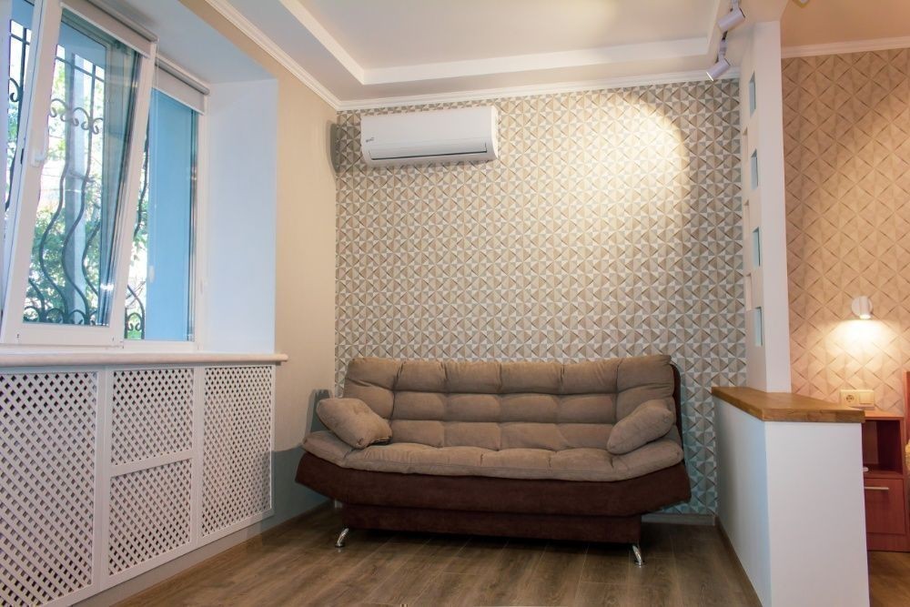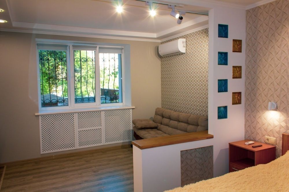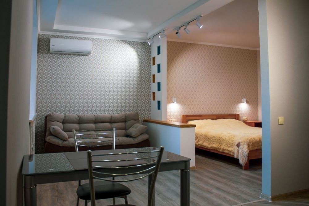 Уютная квартира-студия с изысканным интерьером в самом центре Винницы (200м до Майдана Незалежности) с рядом расположенными парками, ресторанами, ТРЦ "Sky-Park", фонтаном "Рошен", рекой Южный Буг, историческими достопримечательностями (Винницкие муры), ближайшим местом расположения остановки общественного транспорта и охраняемой автостоянки (возможна стоянка автомобиля во дворе). Квартира после капитального ремонта с качественной шумо- и теплоизоляцией, интегрированным балконом-лоджией. Оснащена автономной системой отопления и подачи горячей воды, кондиционером. Окна с видом на тихий внутренний дворик. Для максимально-приятного времяпровождения имеется скоростной Wi-Fi и LED-телевизор с функцией Smart TV. При бронировании на срок от 7 дней - скидка до 10%.